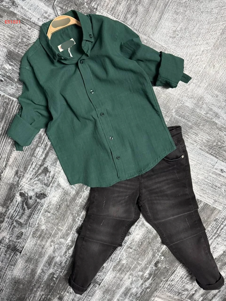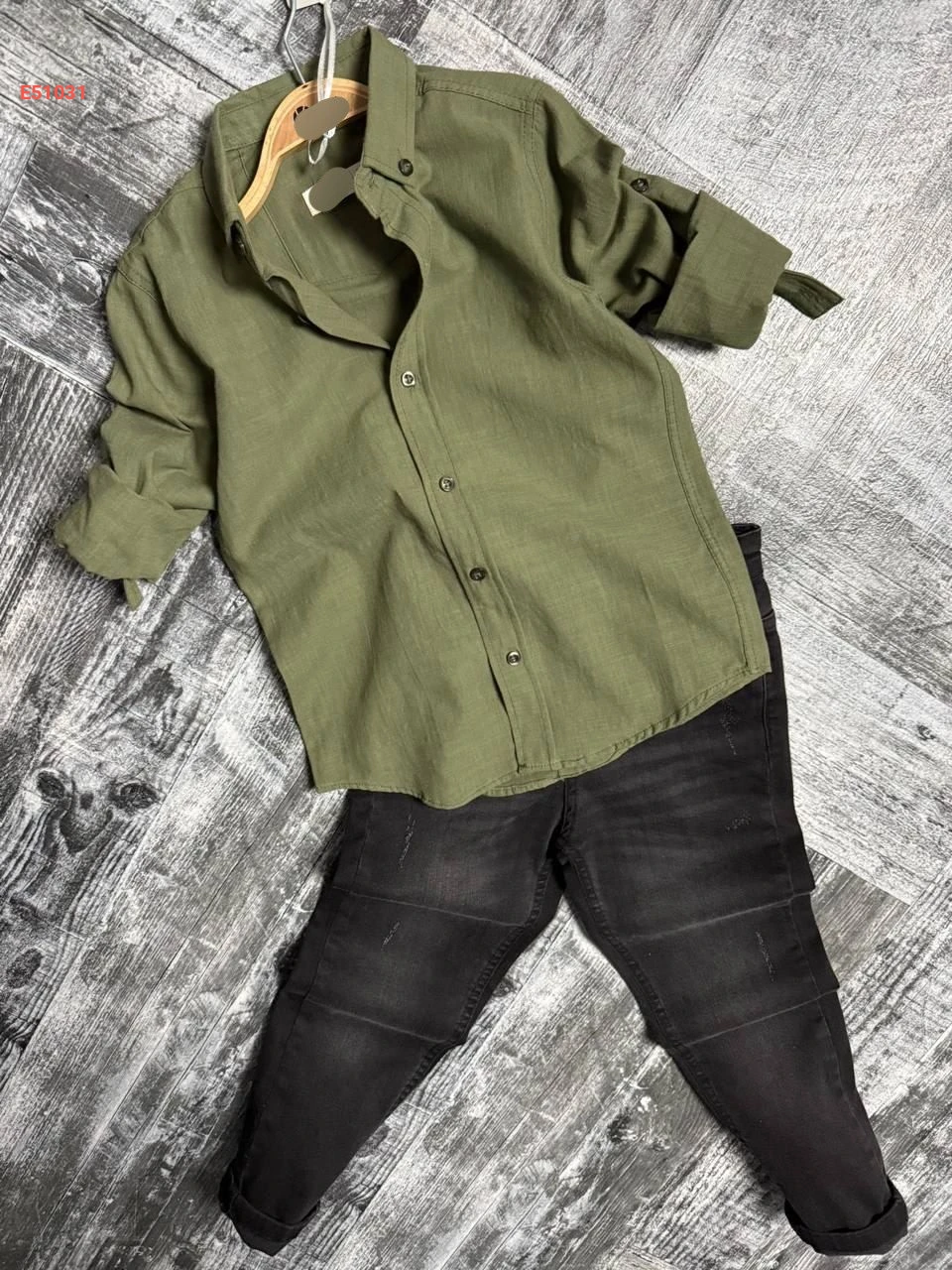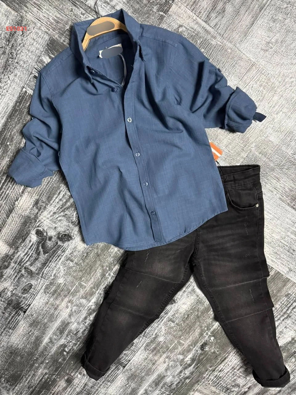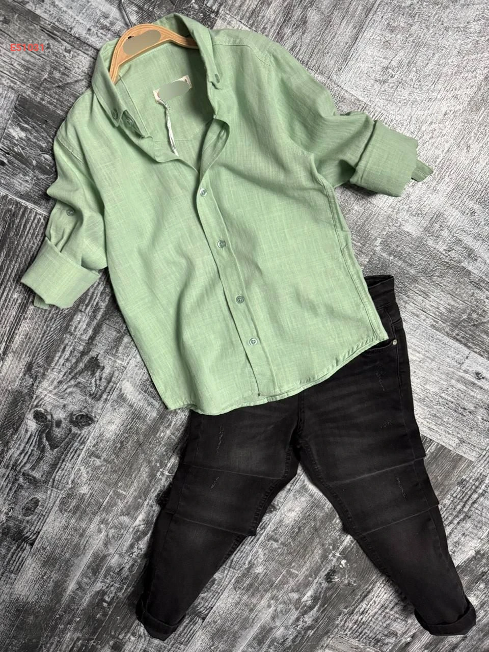 طقم قميص مع بنطال جينز صبياني