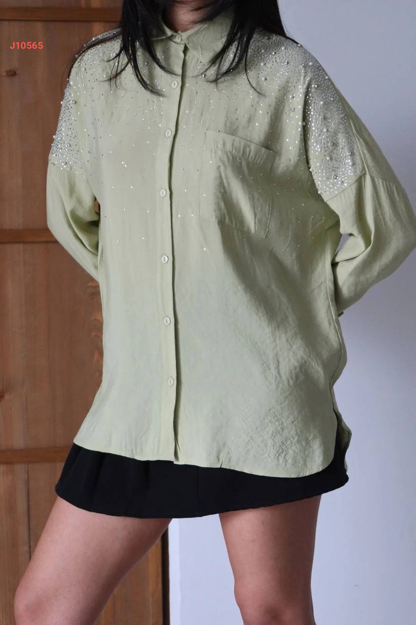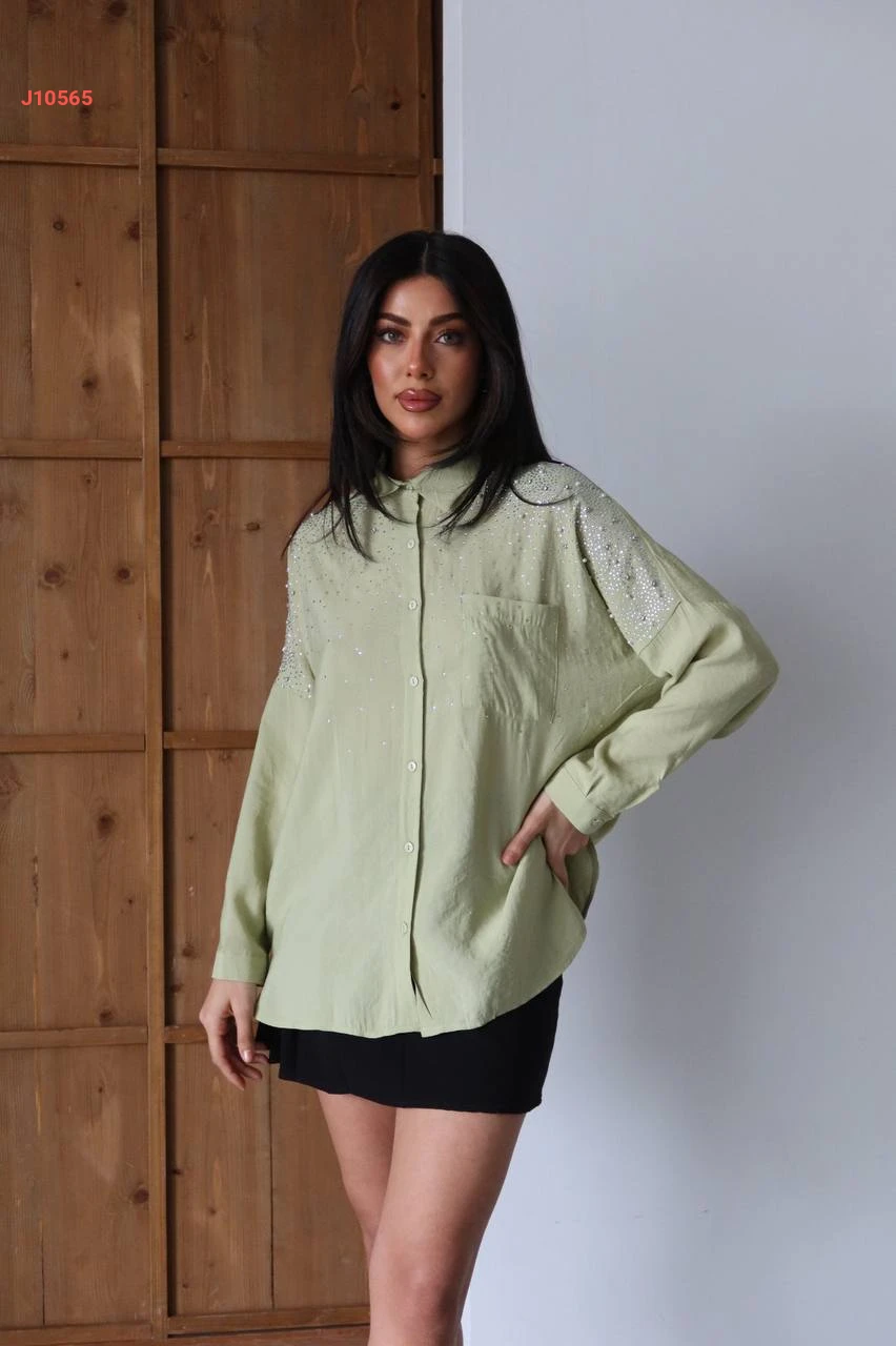 قميص بتفاصبل حجرية مرصعة