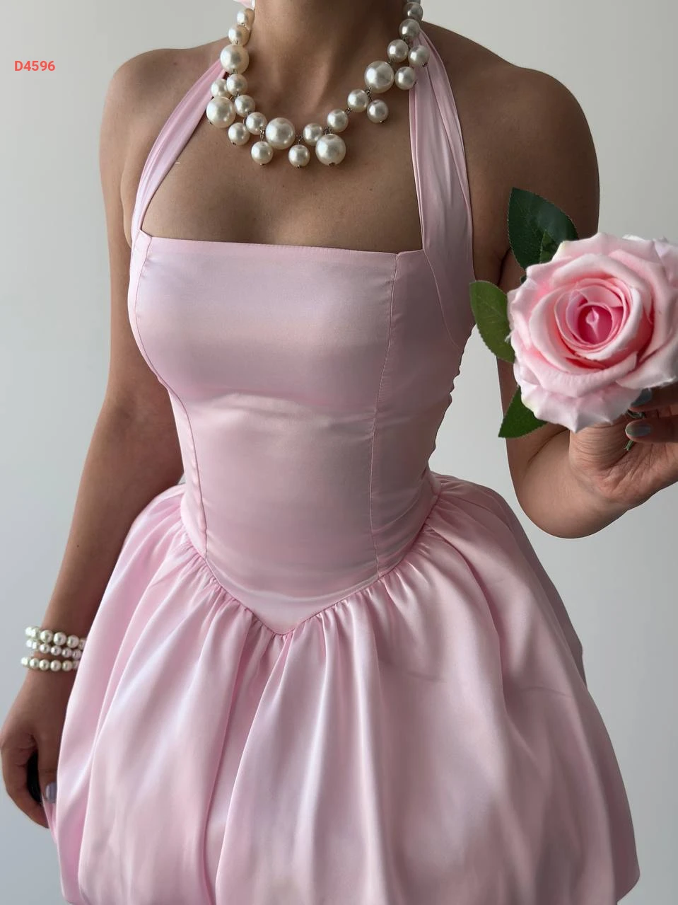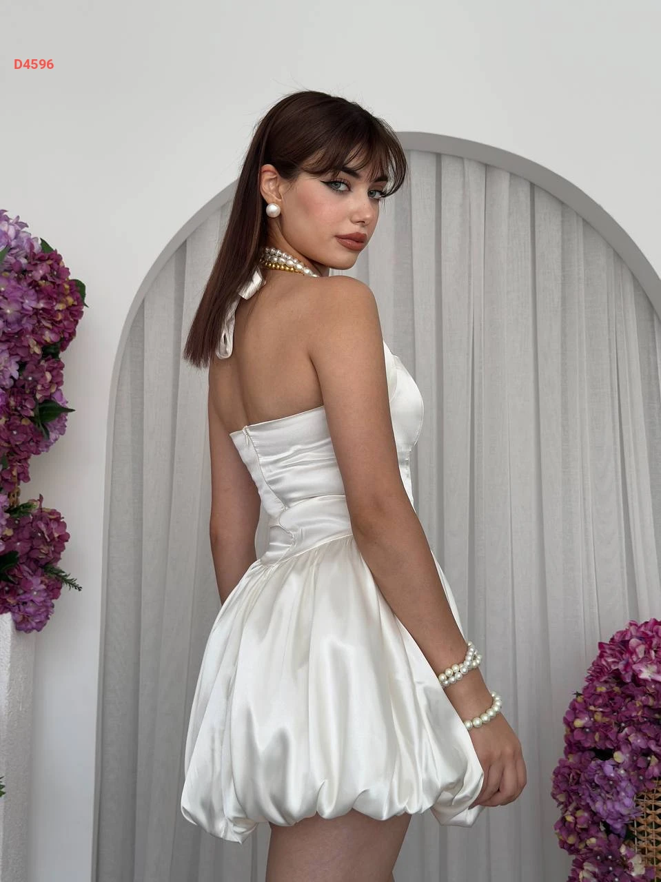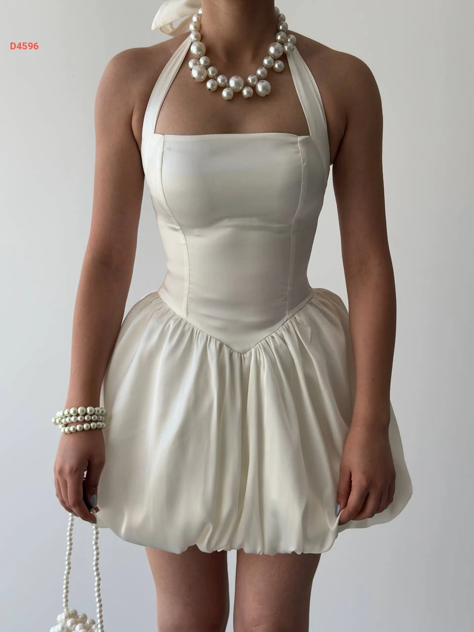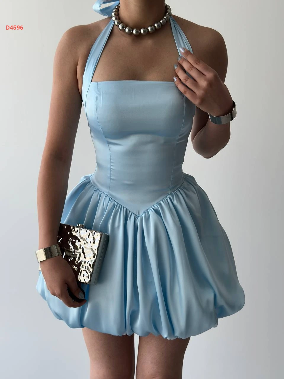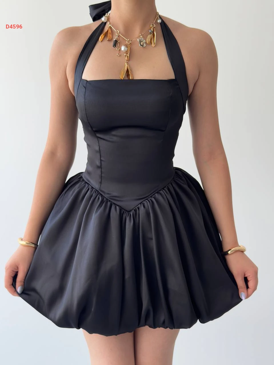 فستان قصير بالون بربطة خلفية عالرقبة
