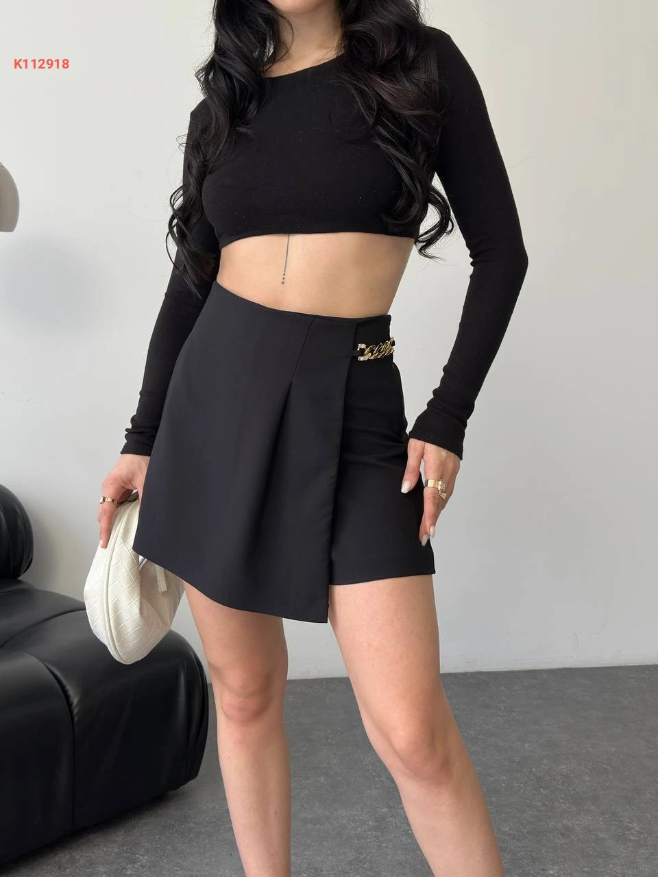 تنورة قصيرة بشورت وسلسلة دهبي عالخصر
