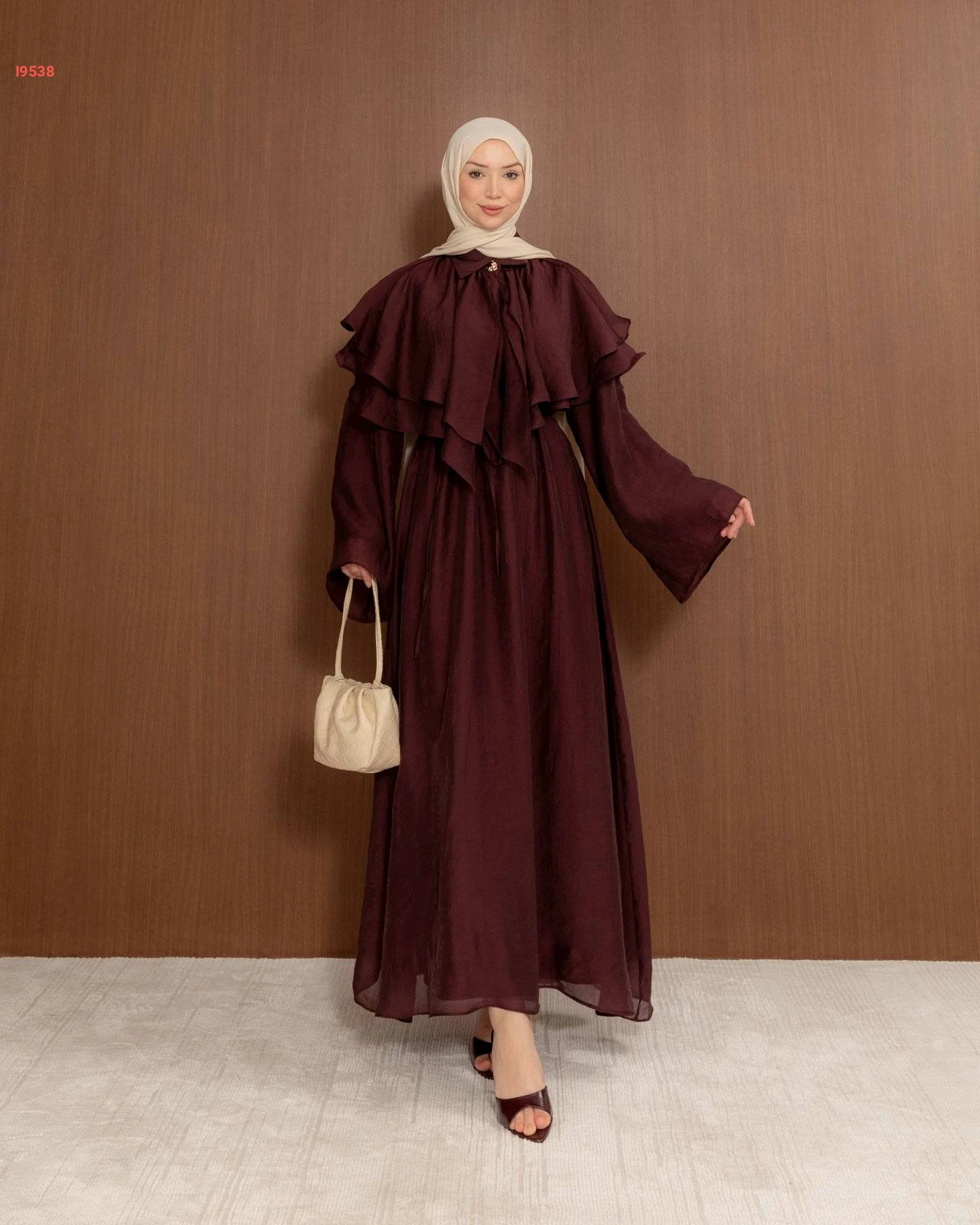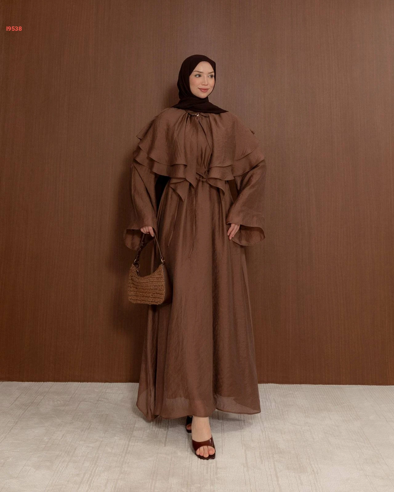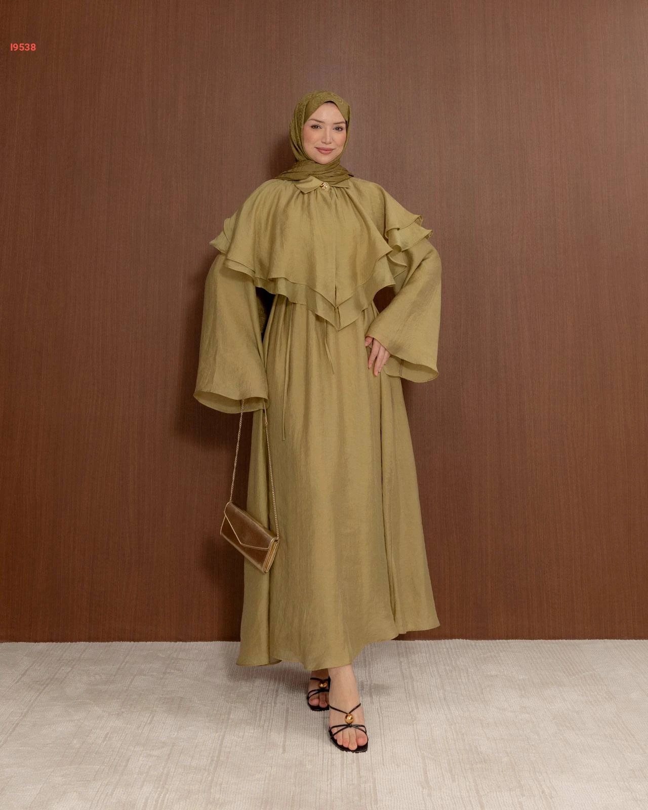 فستان ناعم بتصميم "الكيب" متعدد الطبقات وأكمام واسعة، يمنحكِ إطلالة أنثوية راقية