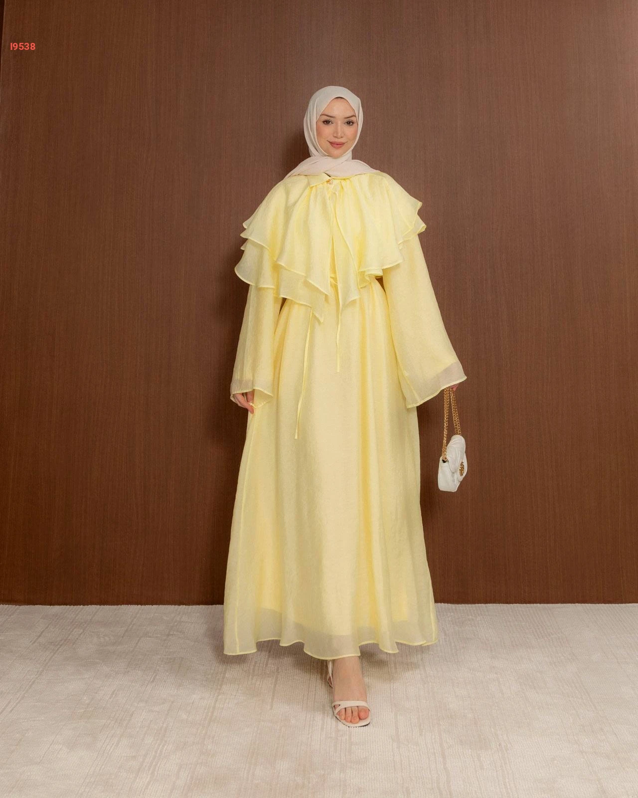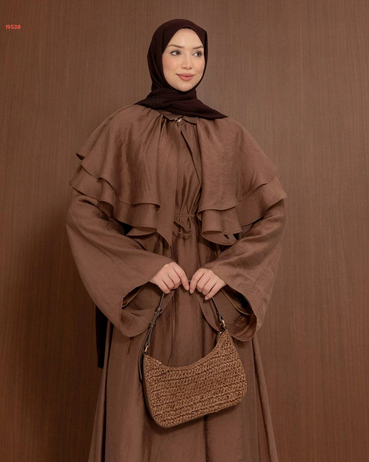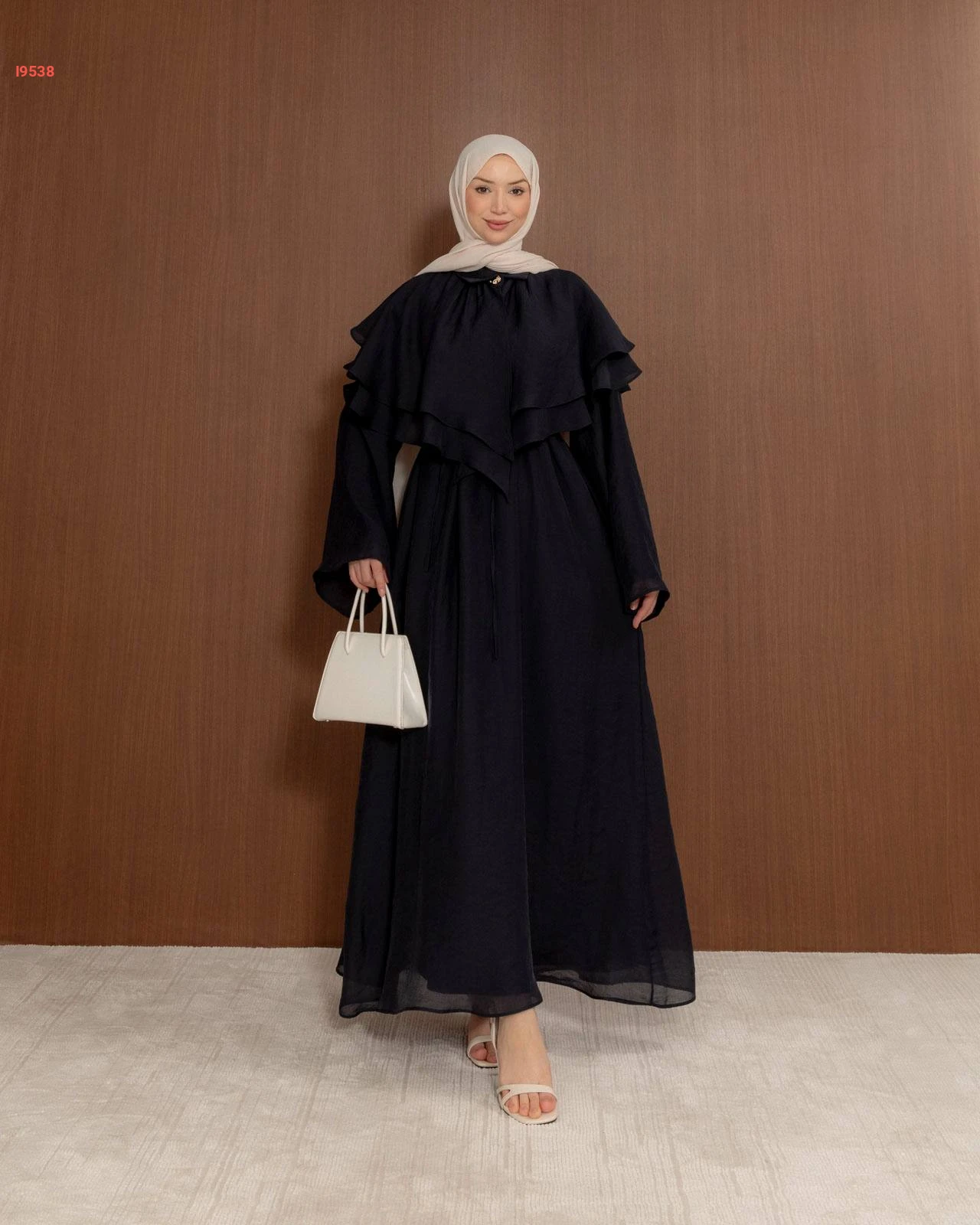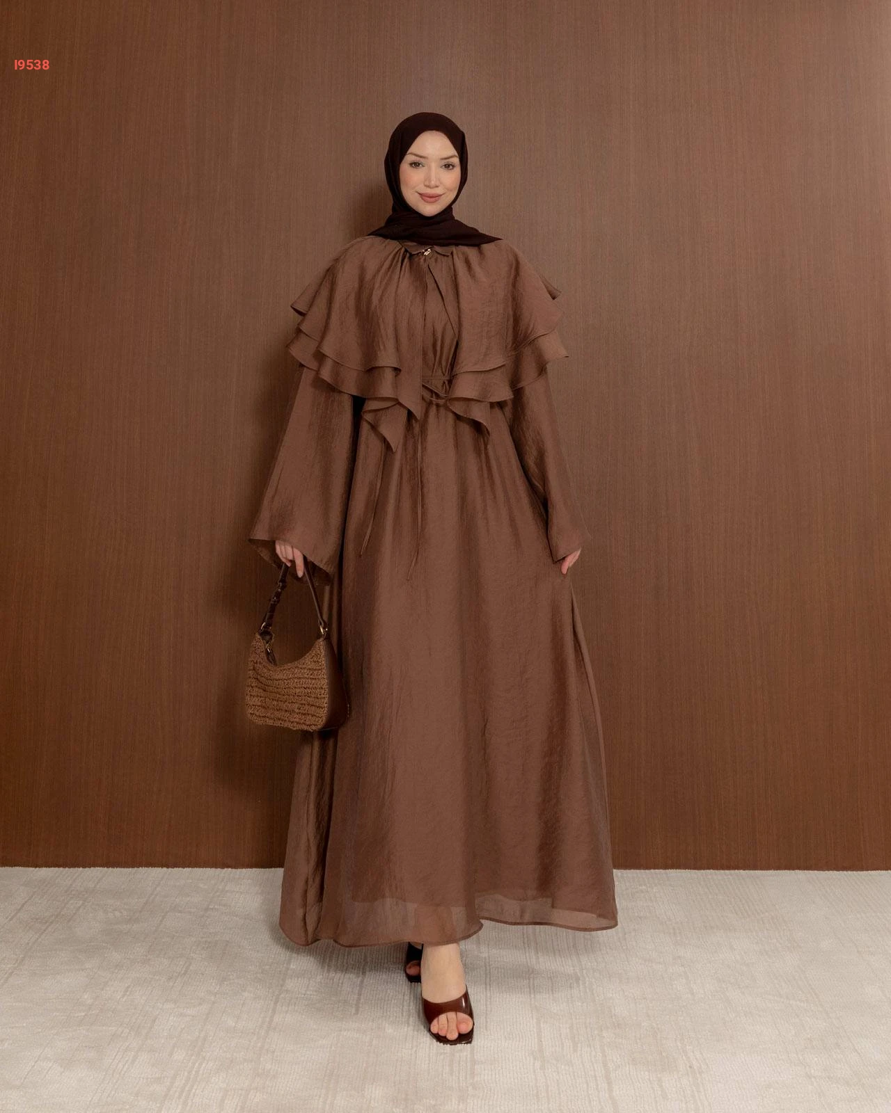 فستان ناعم بتصميم "الكيب" متعدد الطبقات وأكمام واسعة، يمنحكِ إطلالة أنثوية راقية