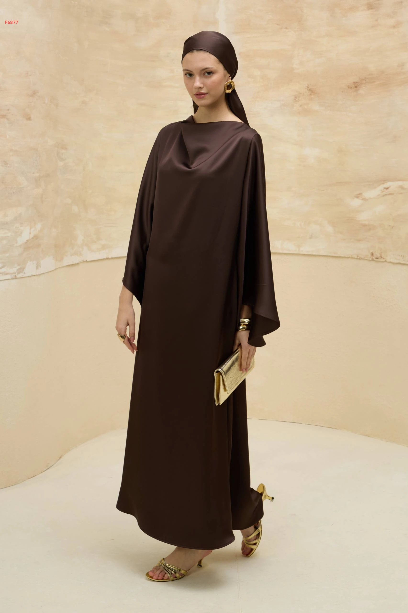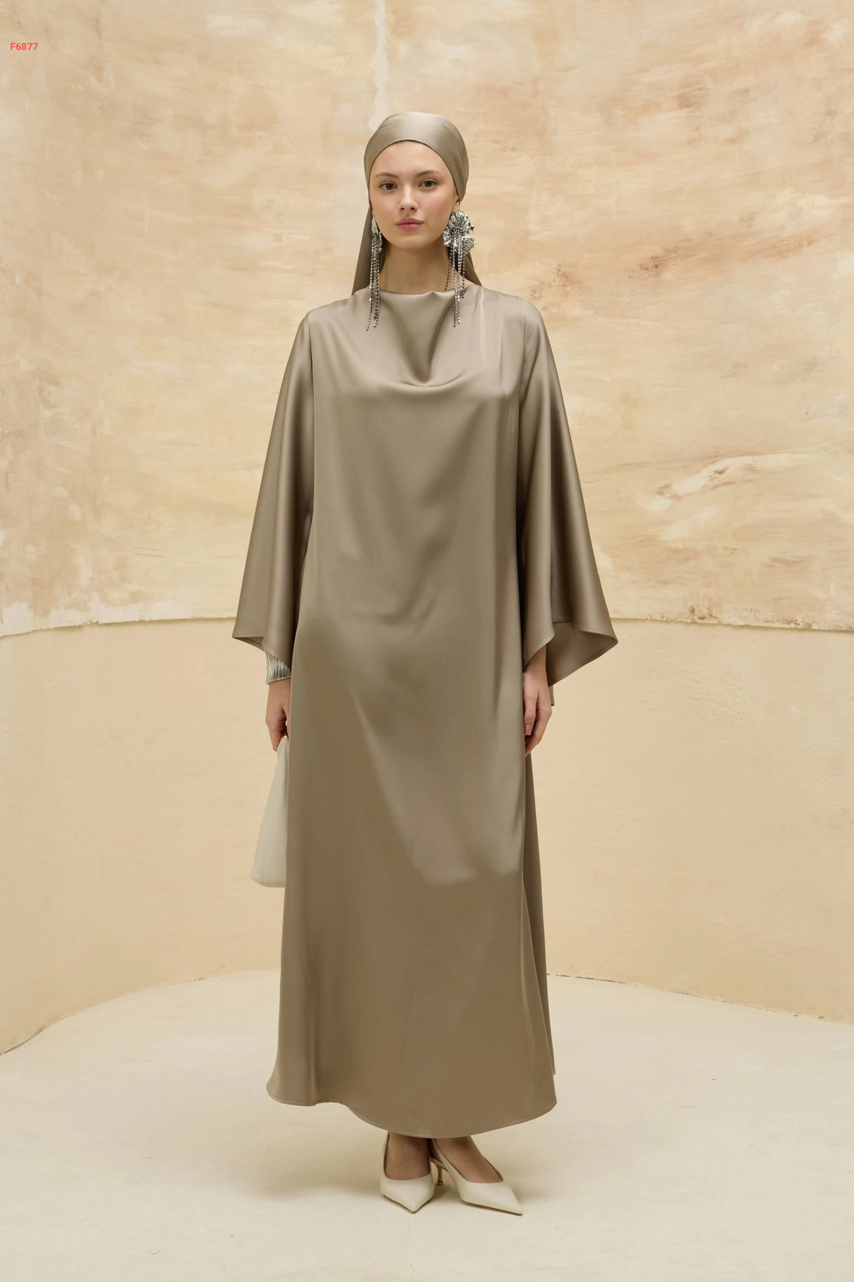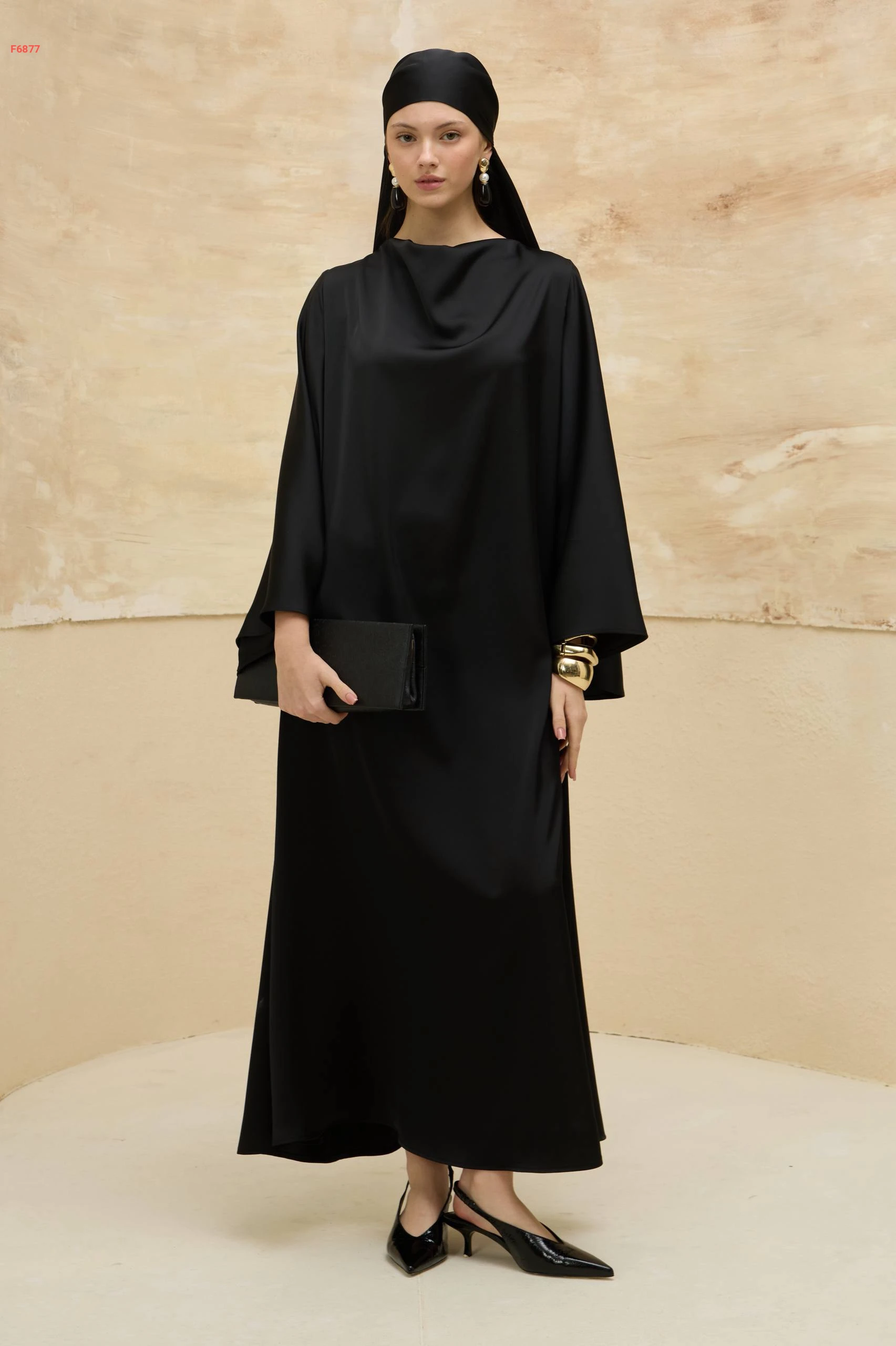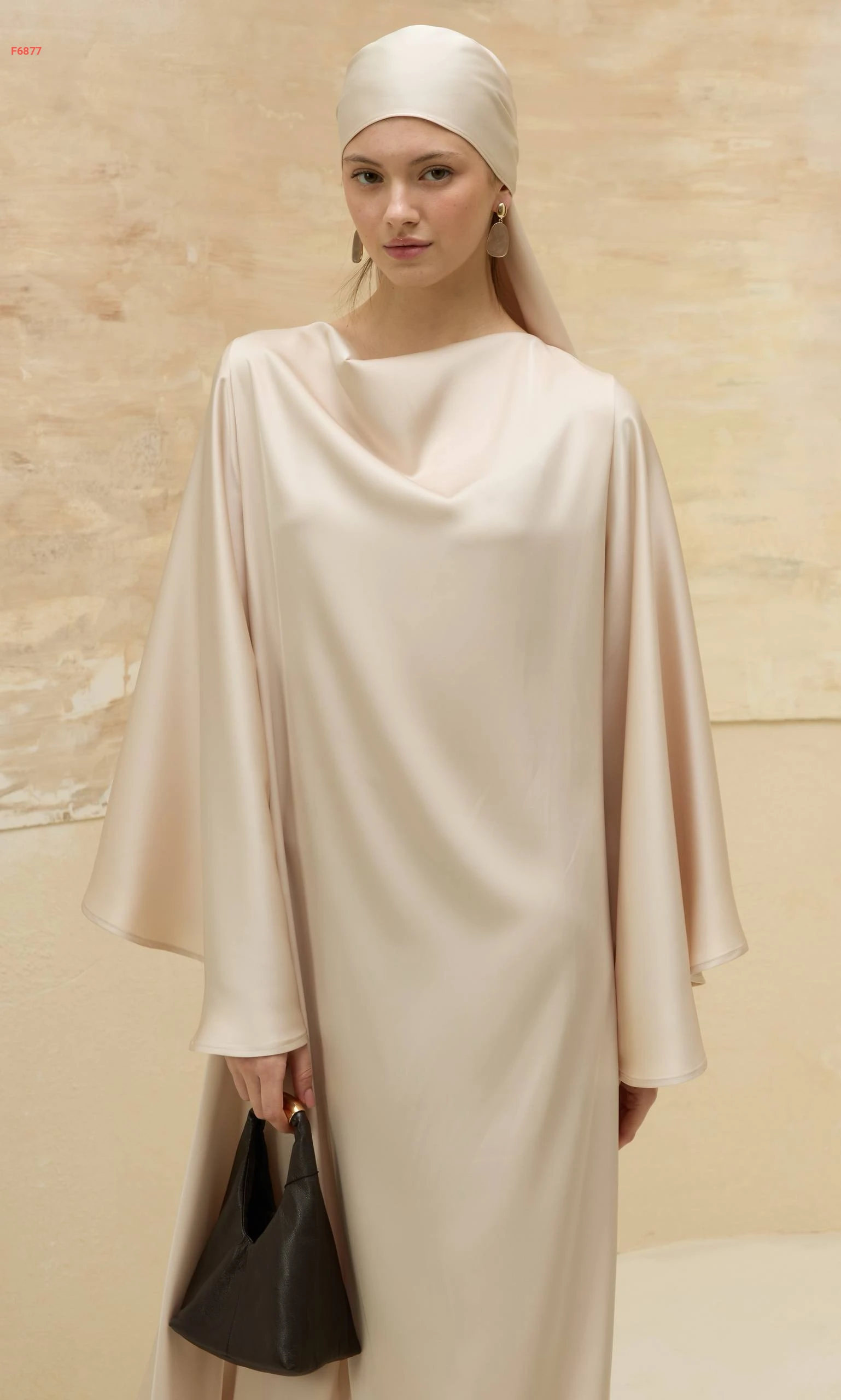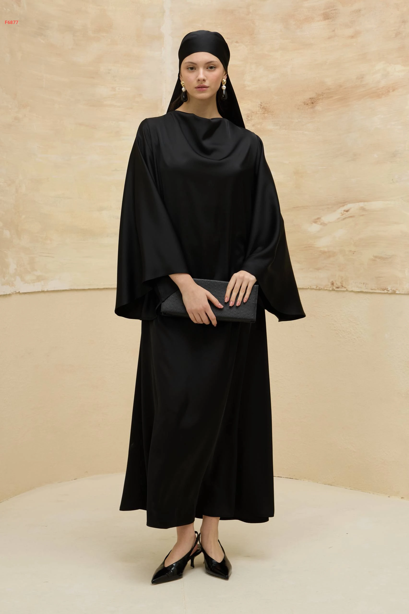 عباءة من قماش الساتان الناعم بتصميم "درابيه" انسيابي وأكمام واسعة،