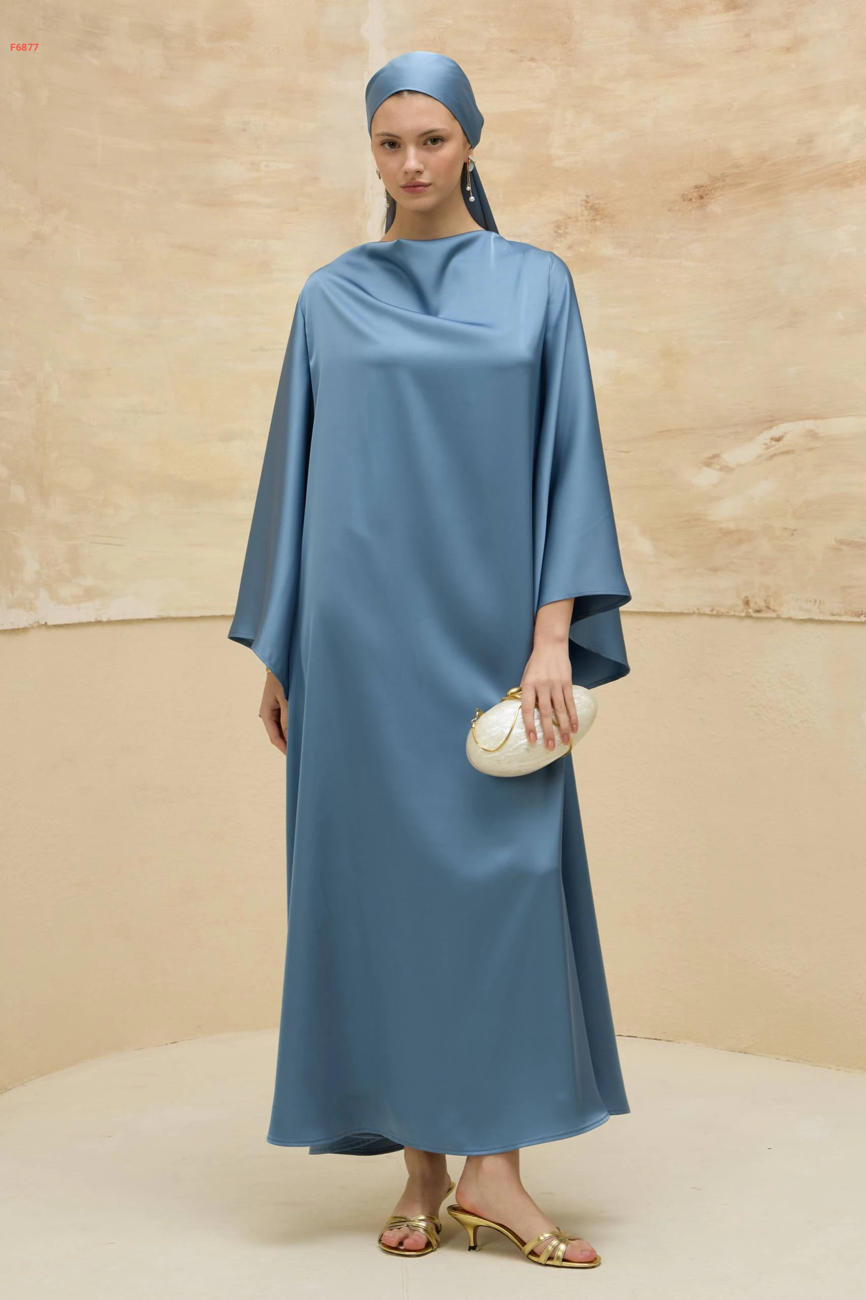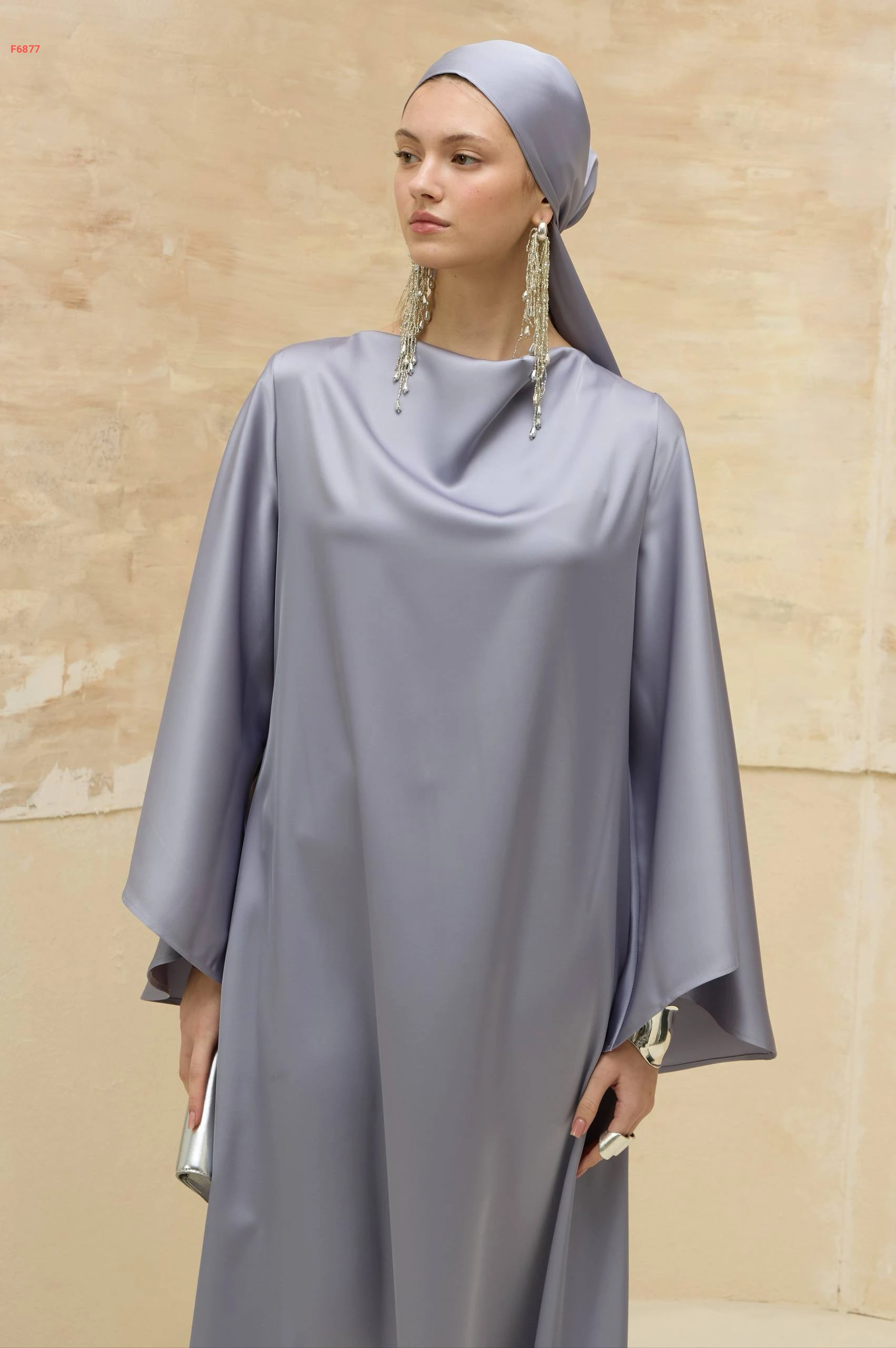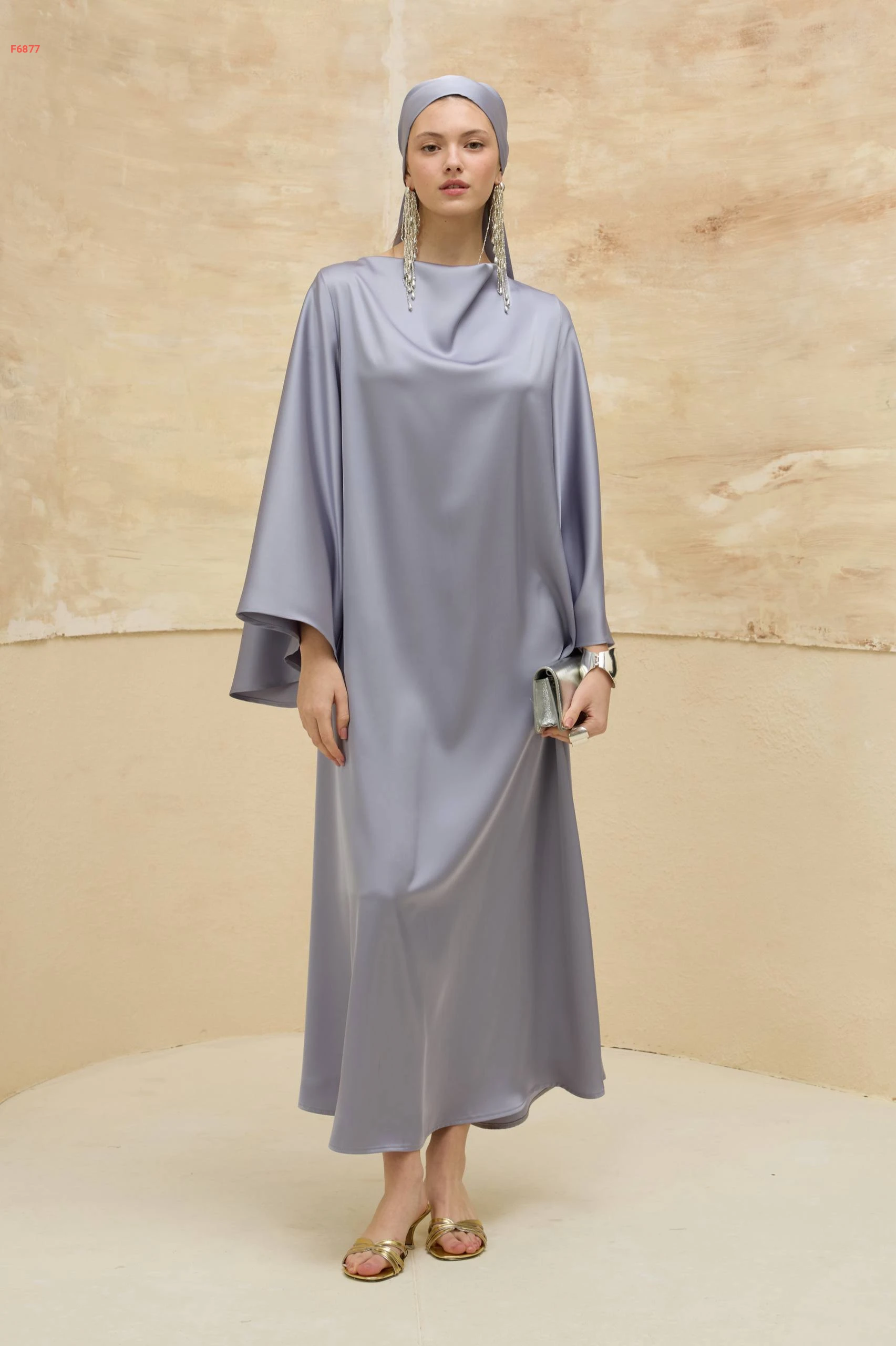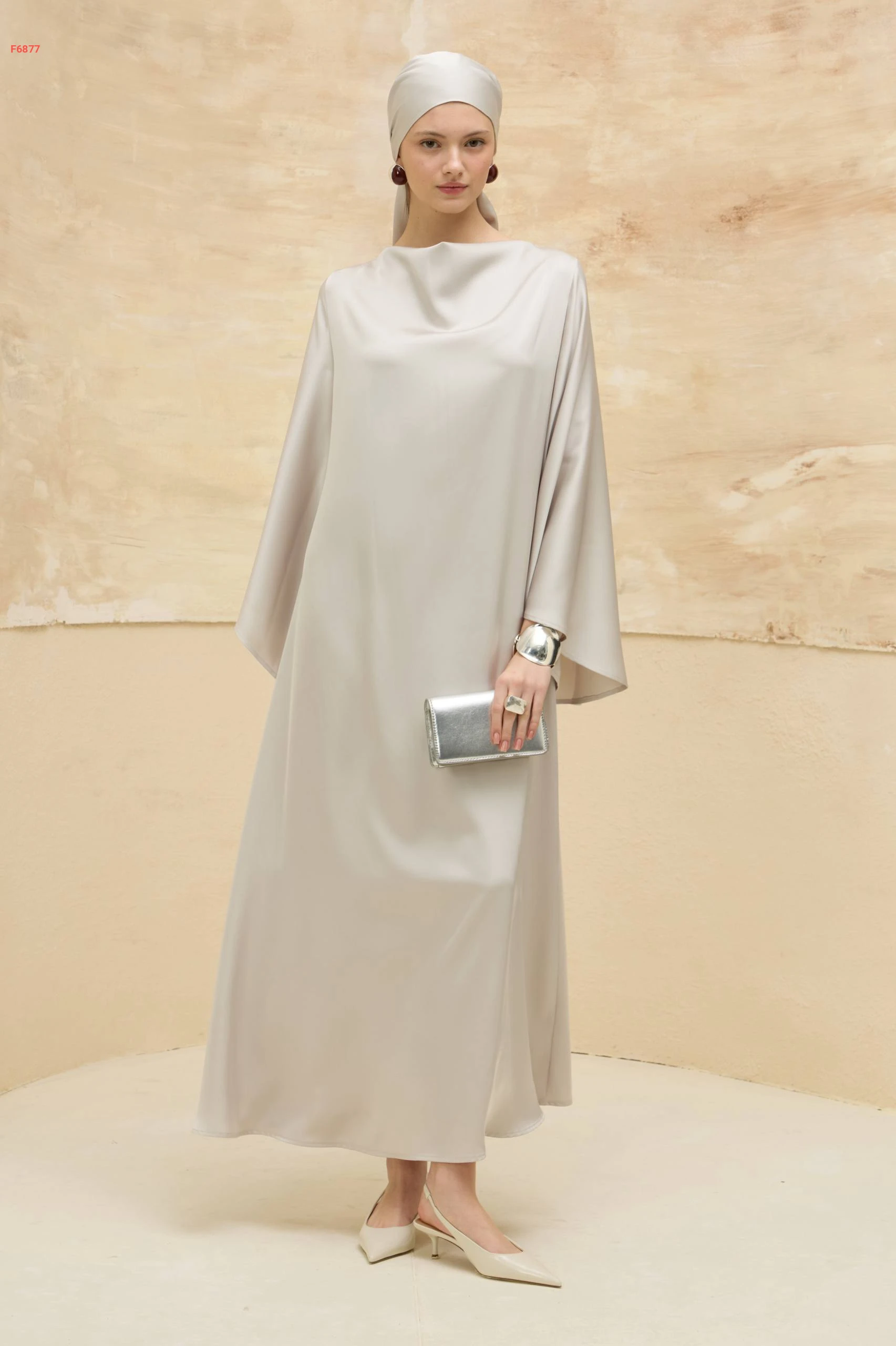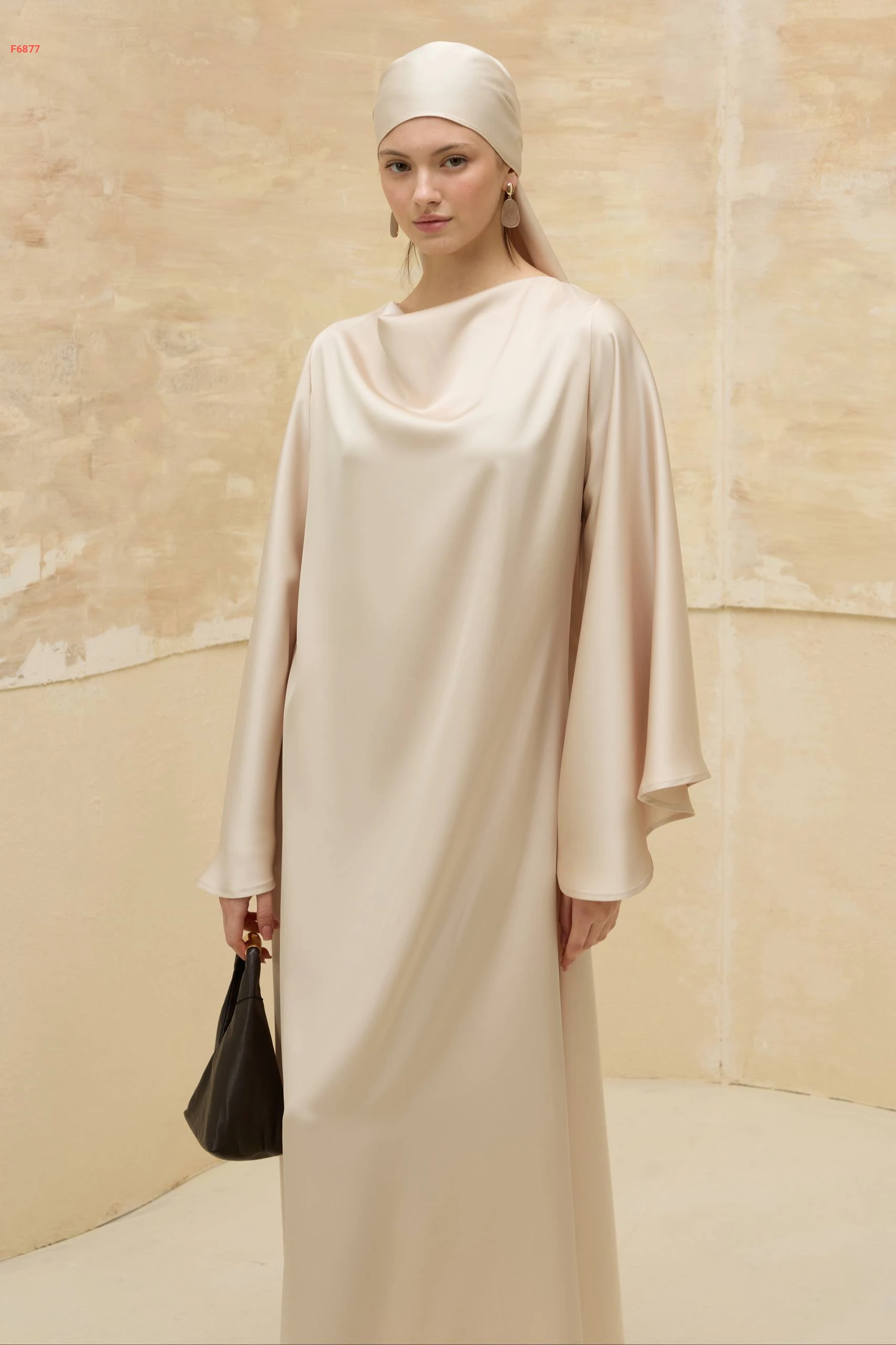 عباءة من قماش الساتان الناعم بتصميم "درابيه" انسيابي وأكمام واسعة،
