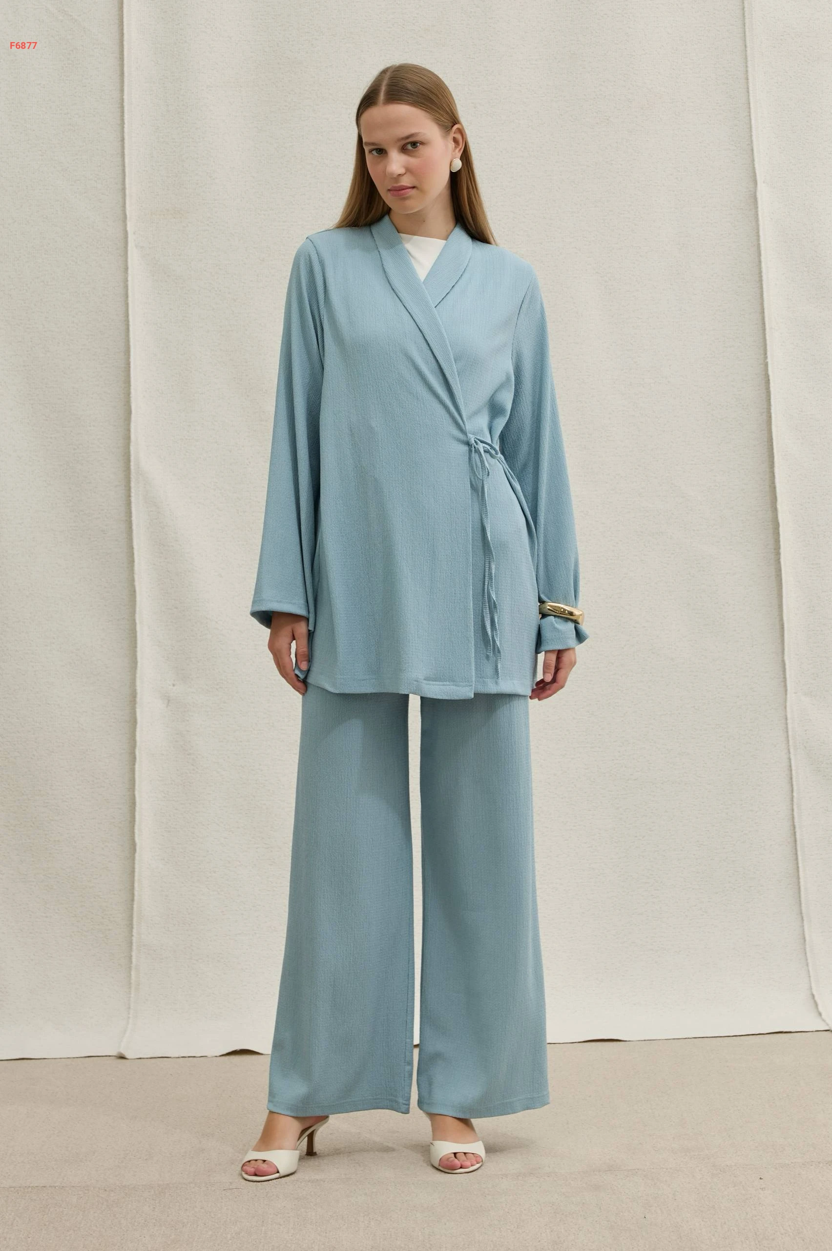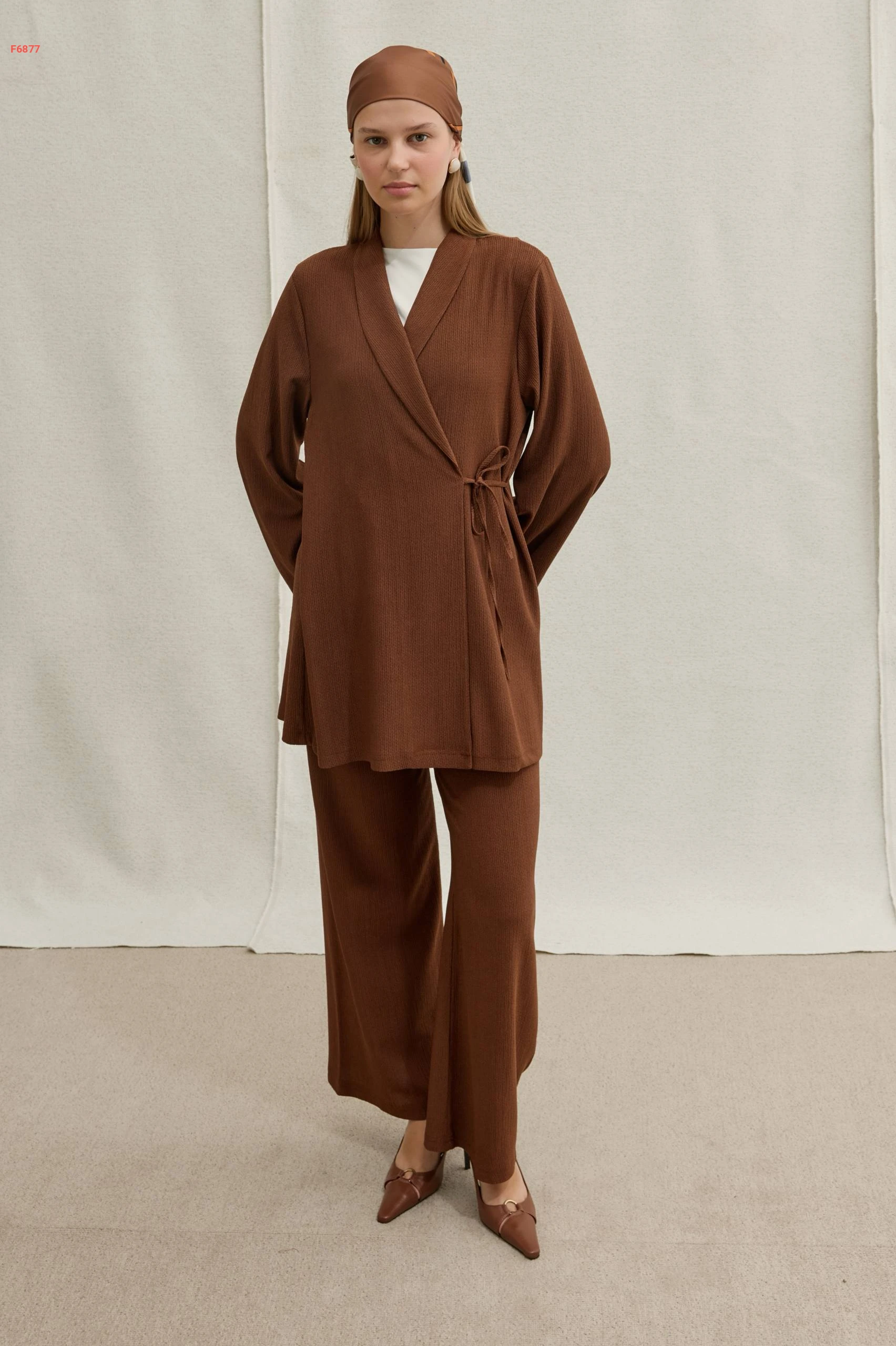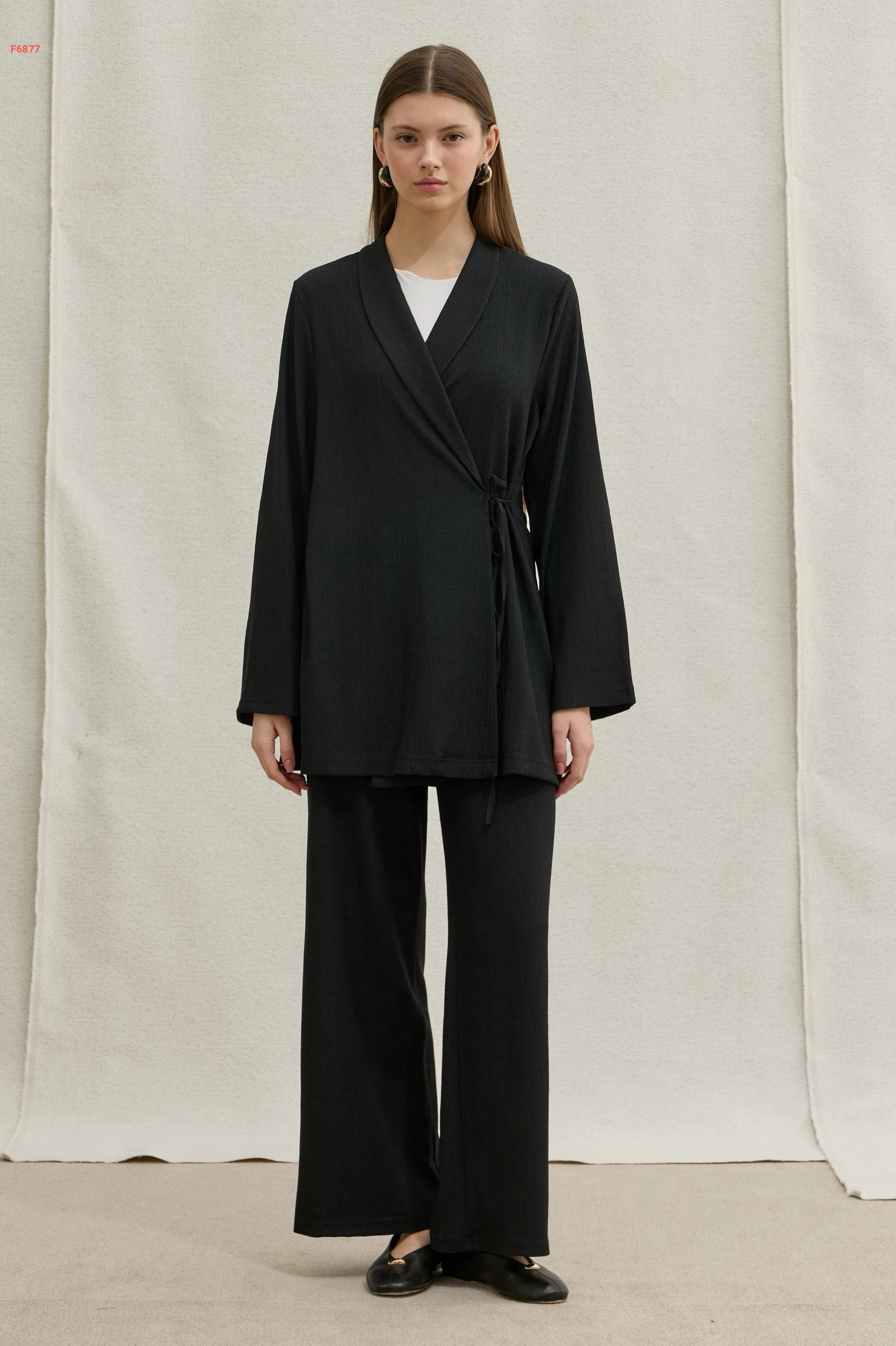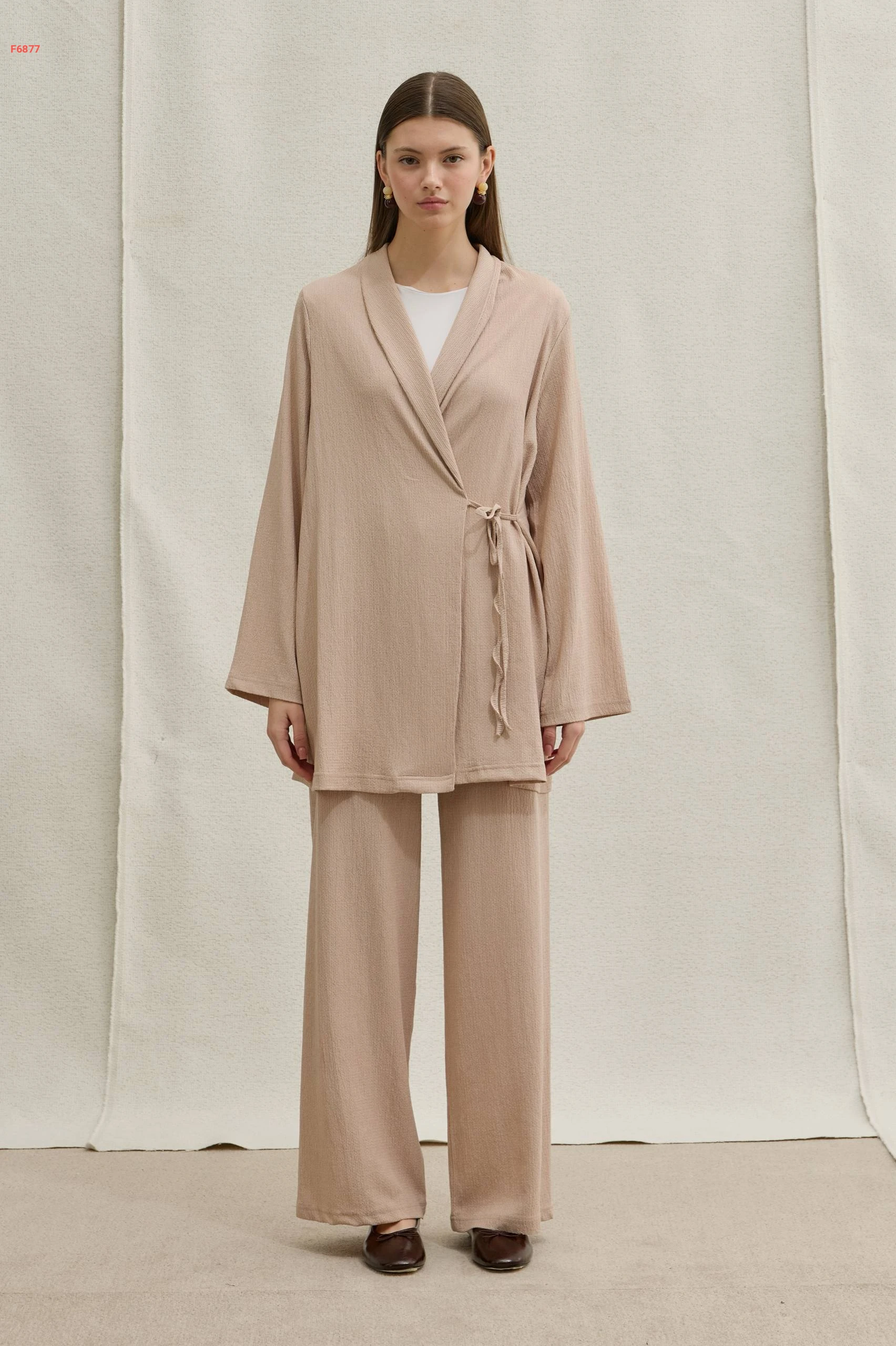 طقم قطعتين ناعم بتصميم "لف" وأرجل واسعة، يجمع بين الأناقة العصرية والراحة