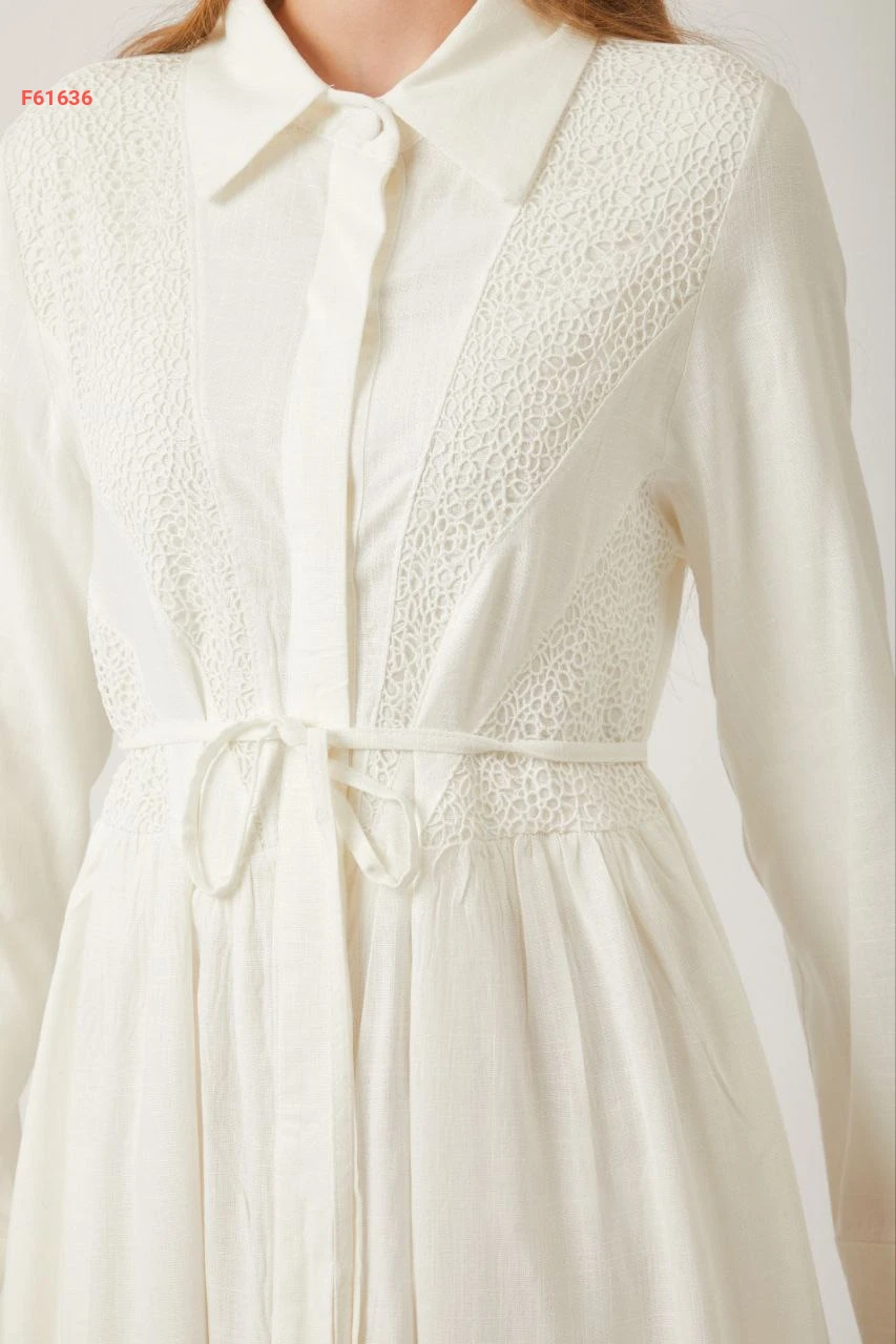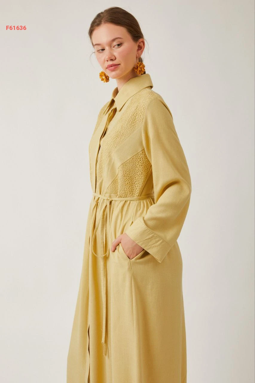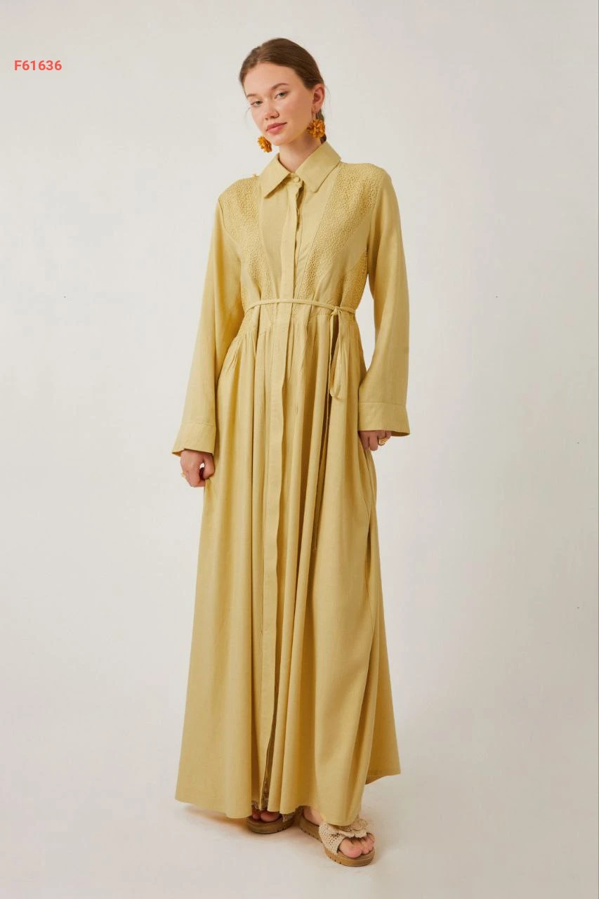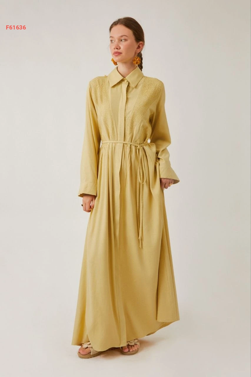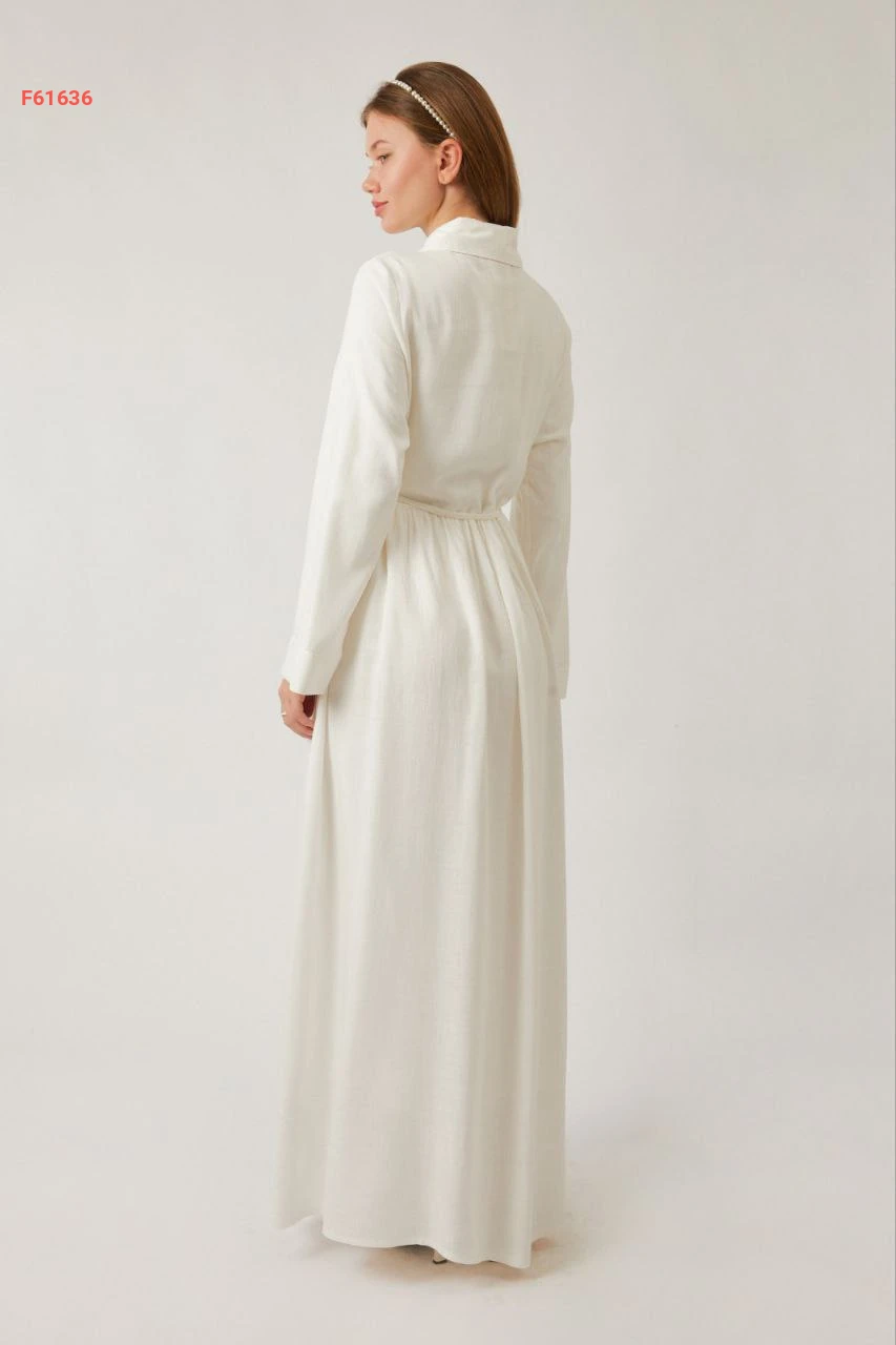 فستان سادة طويل بأزرار مخفية مع ربطة خصر وجيب