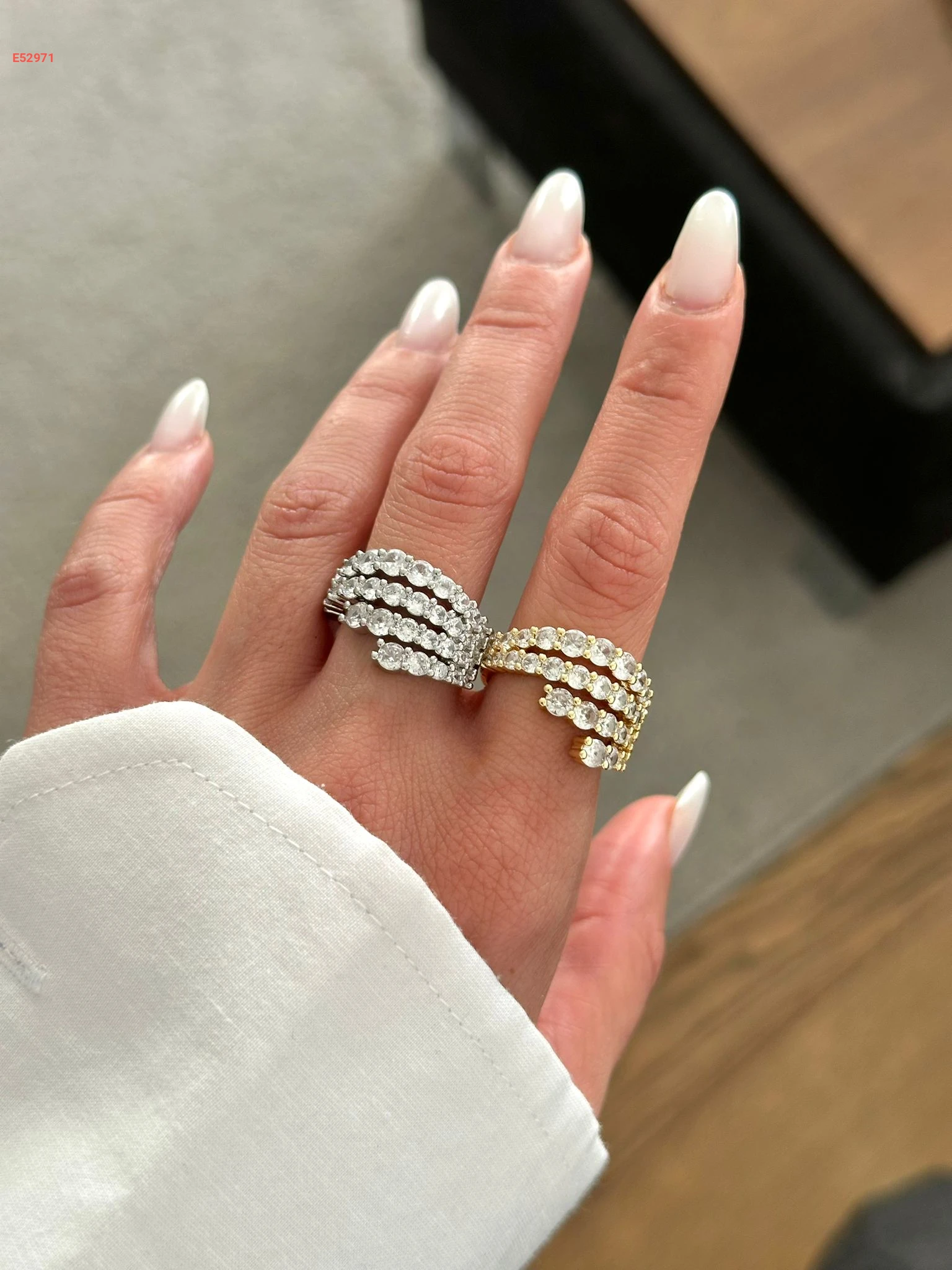 خاتم راديوم ستانلس ستيل مرصع بالألماس باللون الفضي والذهبي