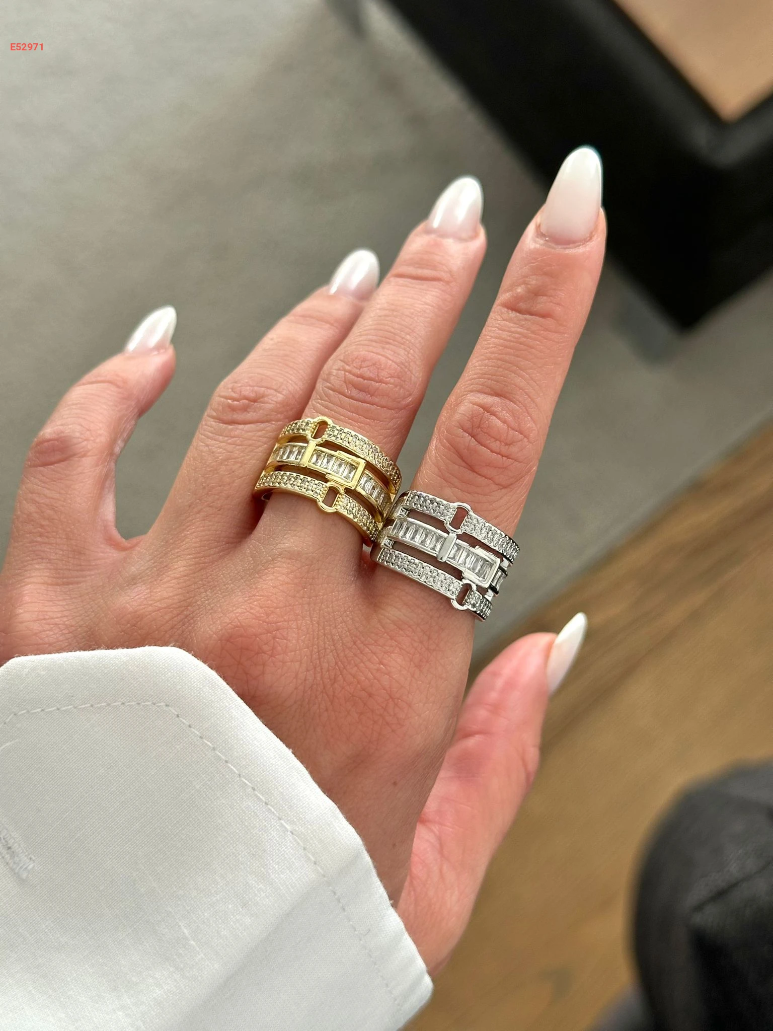 خاتم راديوم ستانلس ستيل مرصع بالألماس باللون الفضي والذهبي