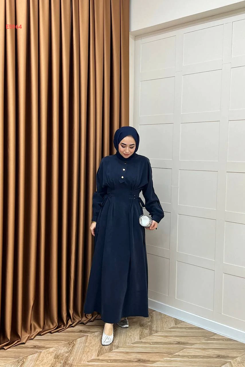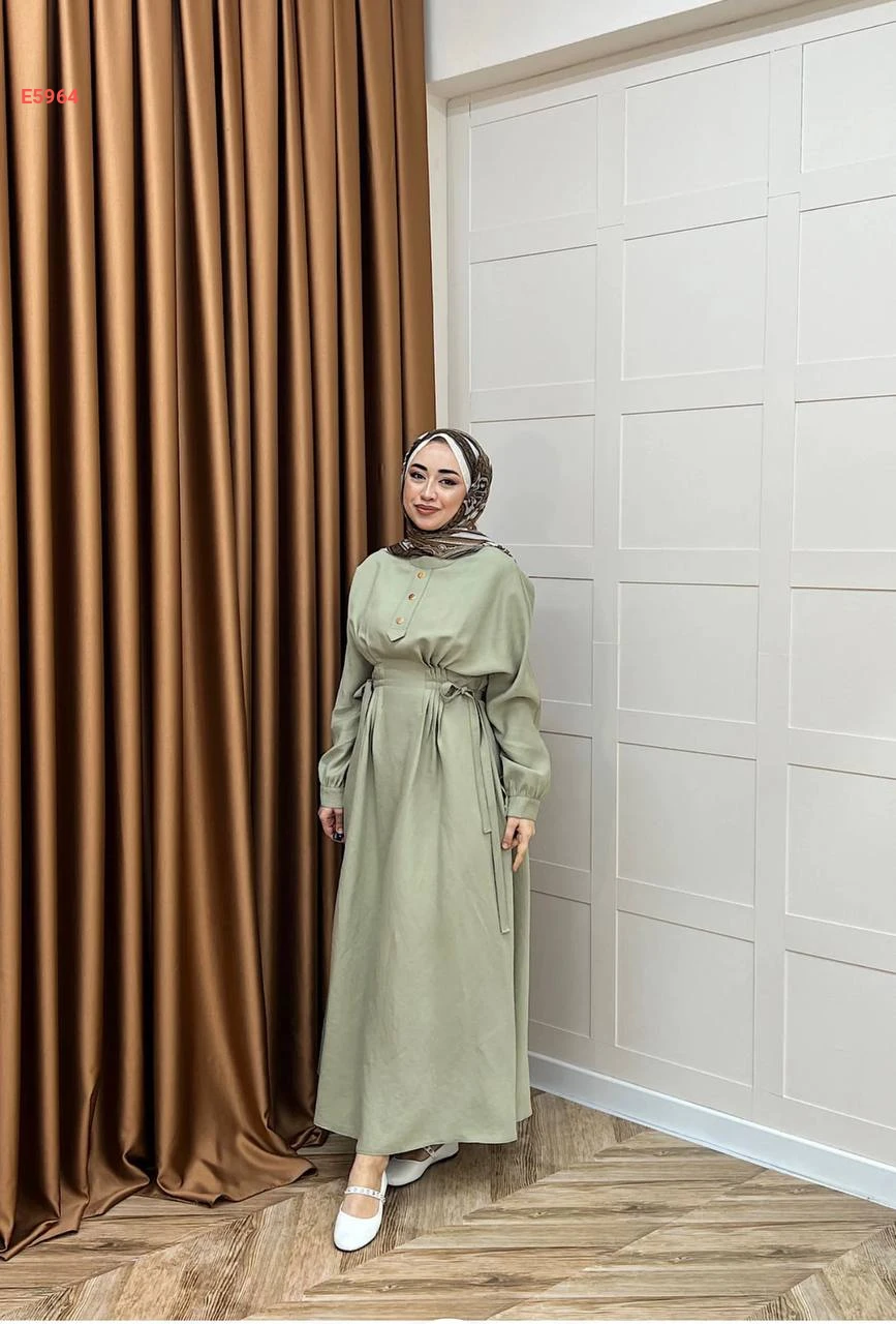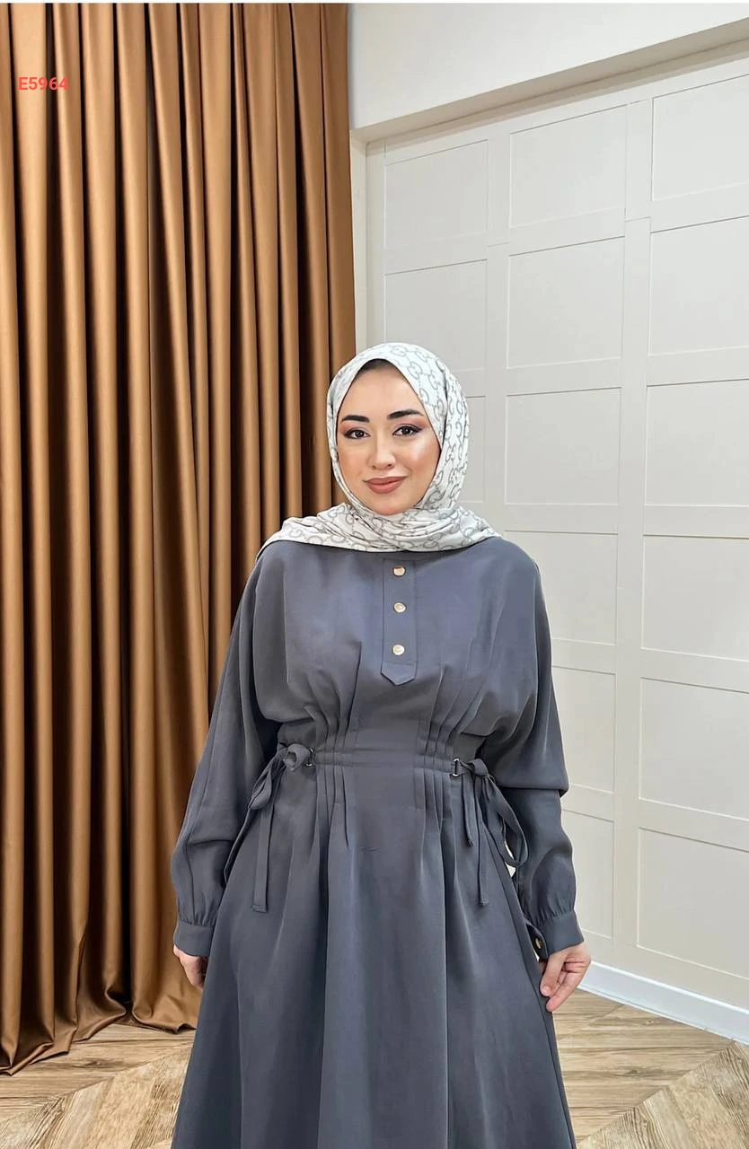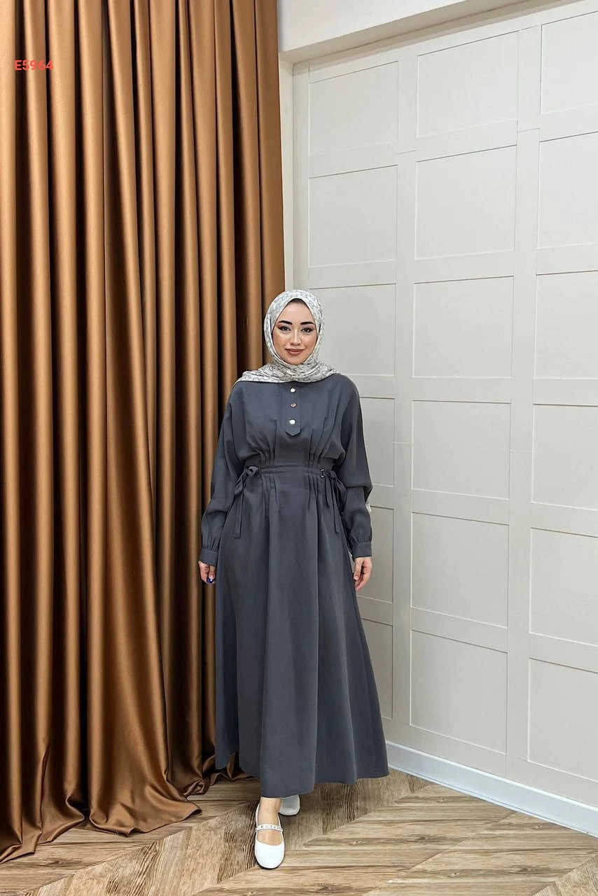 فستان محجبات مطاط من الخصر وأزرار نصفية