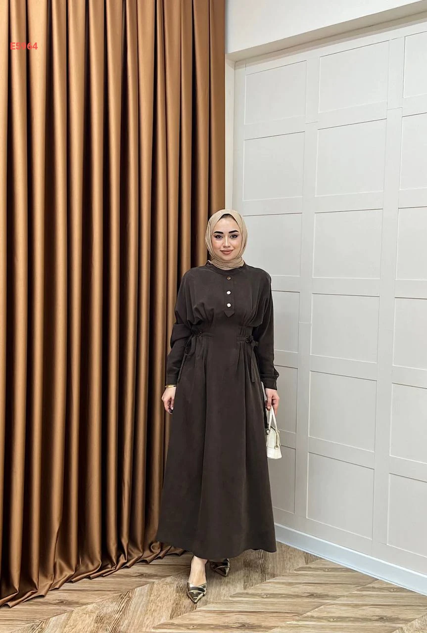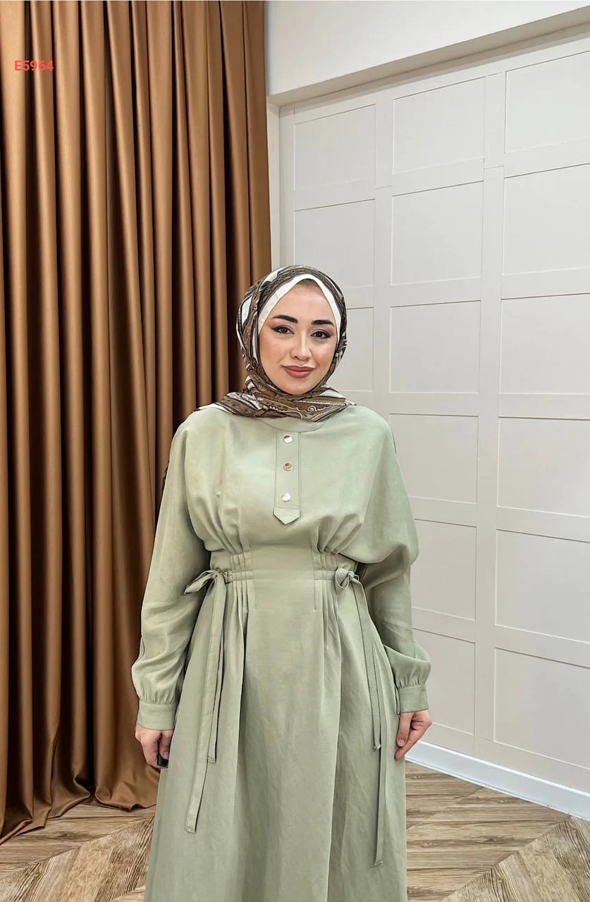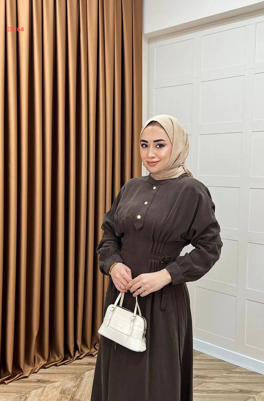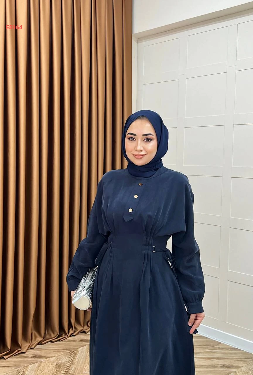 فستان محجبات مطاط من الخصر وأزرار نصفية
