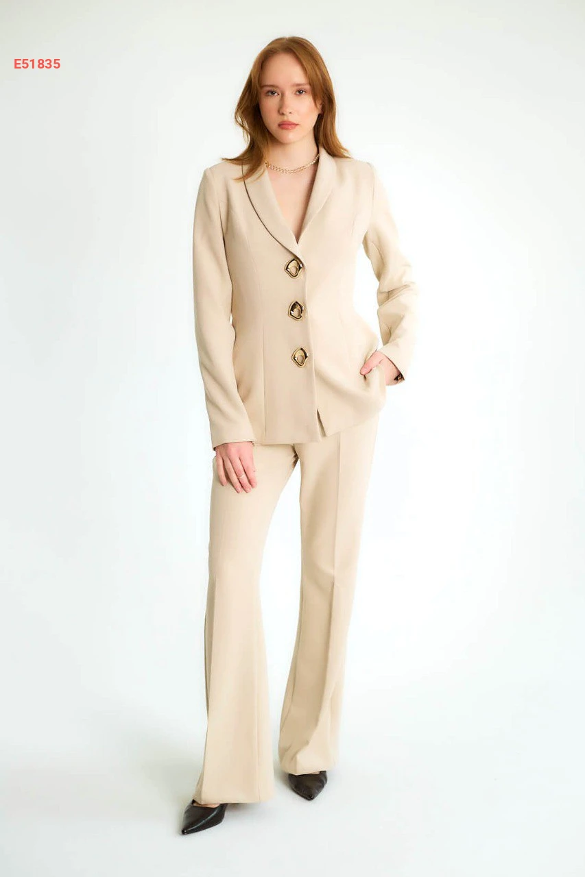 طقم بنطال وجاكيت بأزرار دهبي