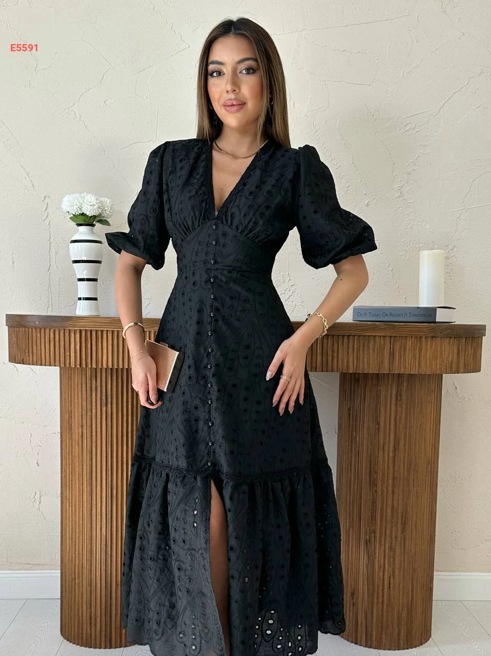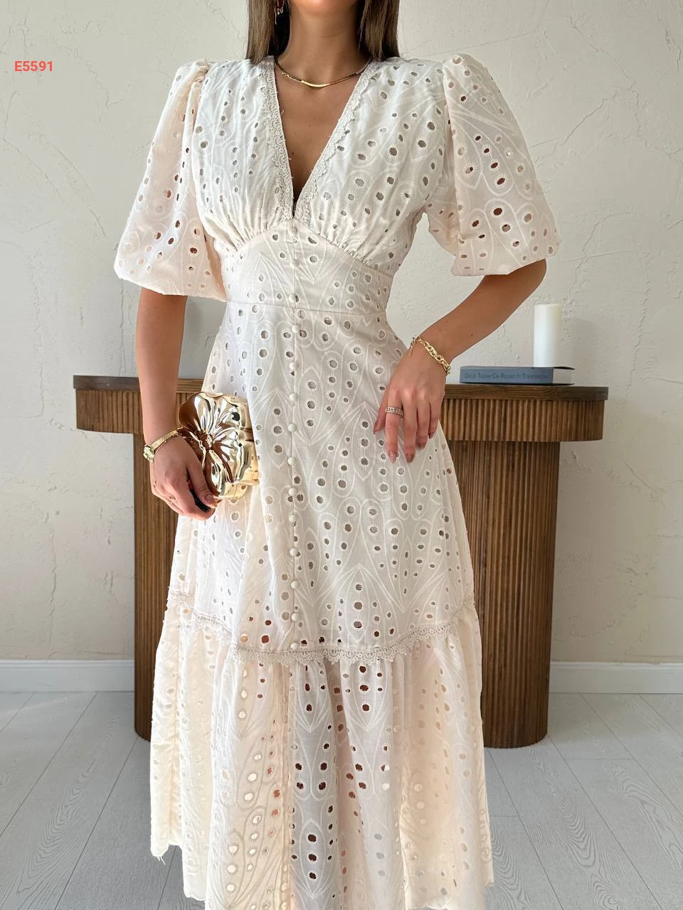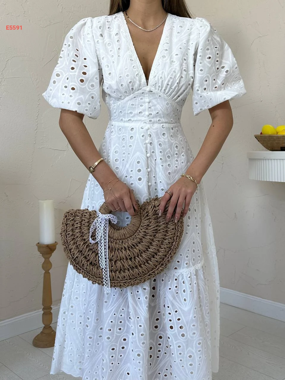 فستان صيفي بتفاصيل تطريز مفرغة