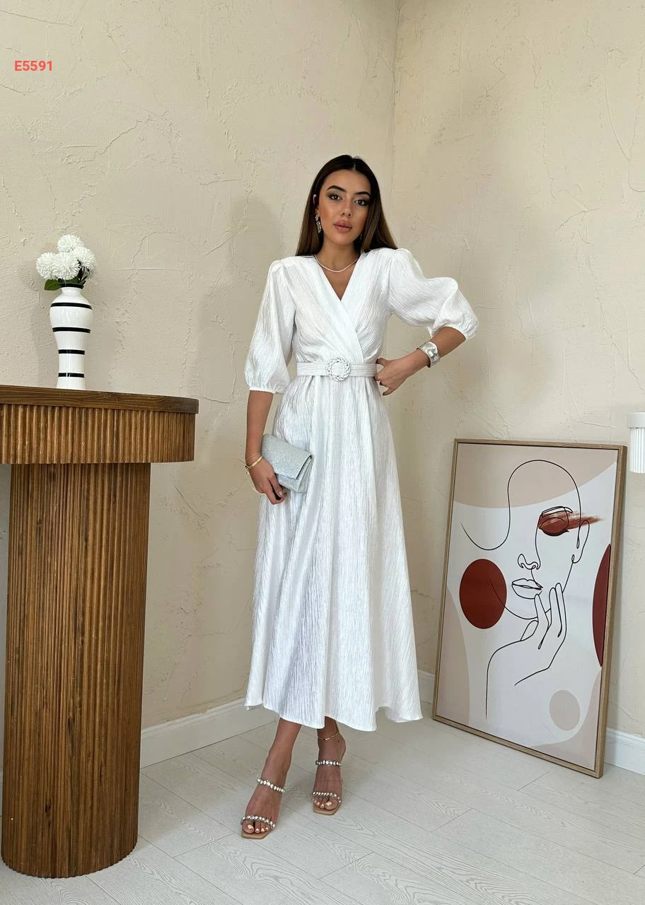 فستان صيفي بأكمام نفخ وحزام
