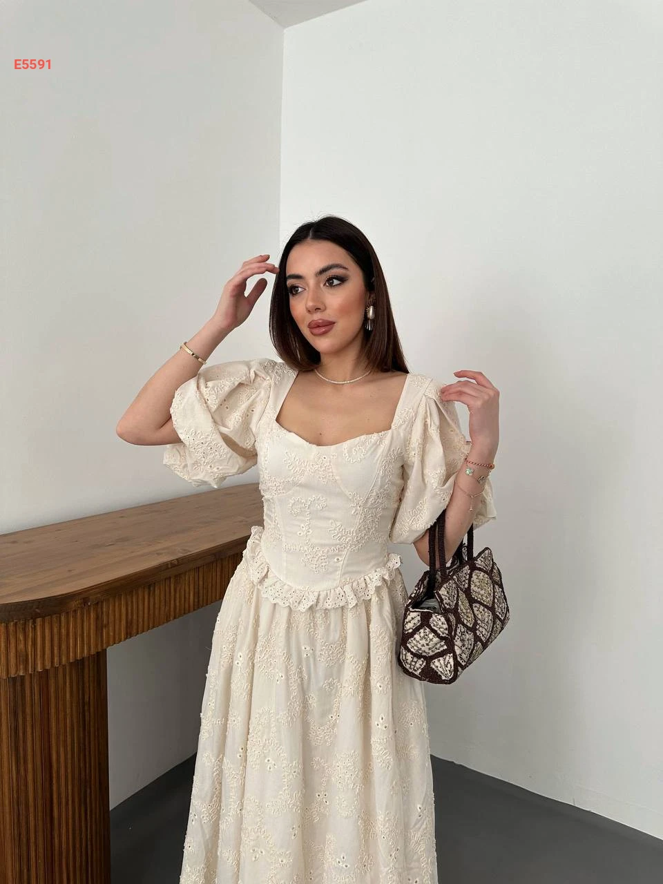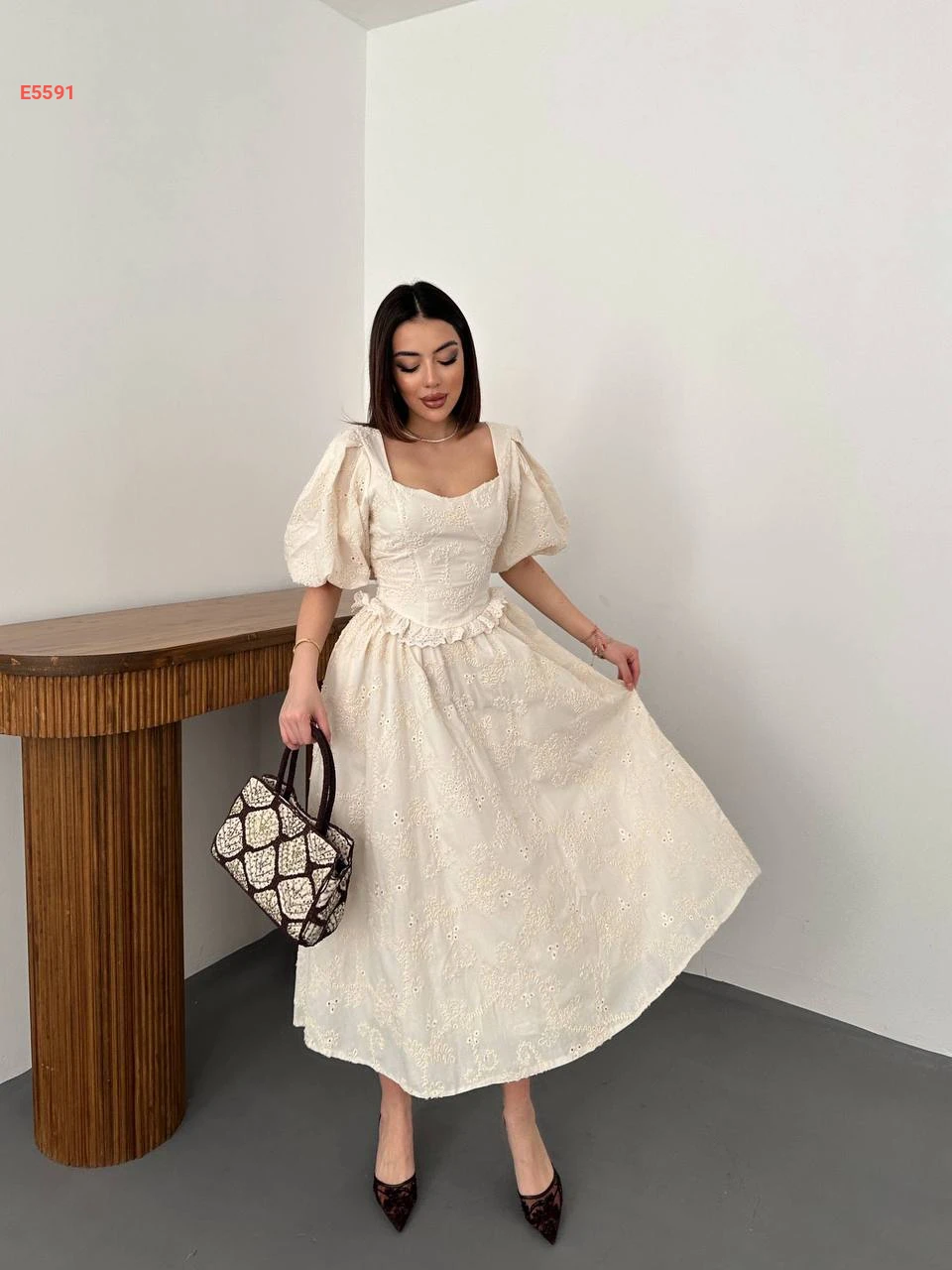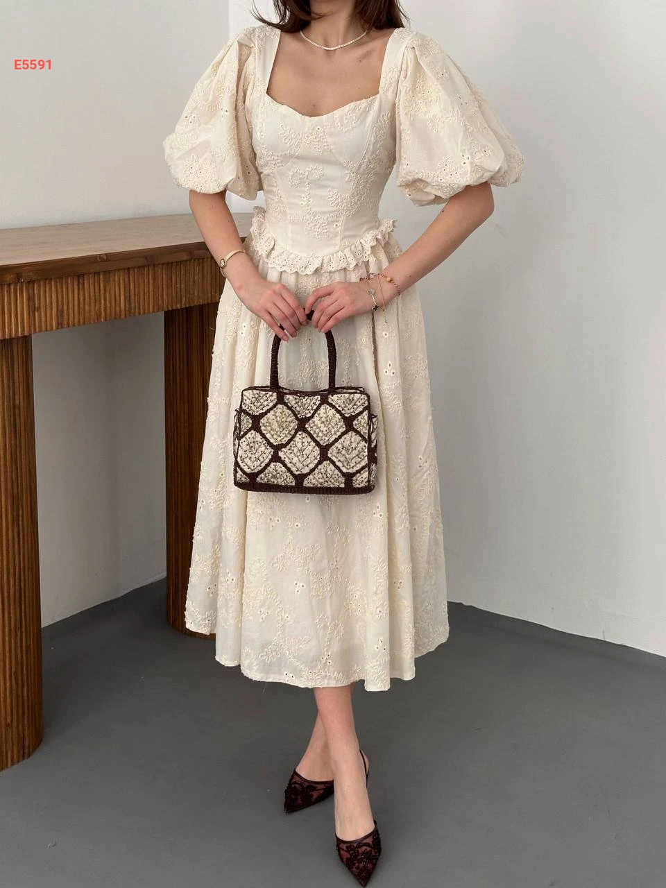 فستان صيفي مطرز بأكمام نفخ قصيرة