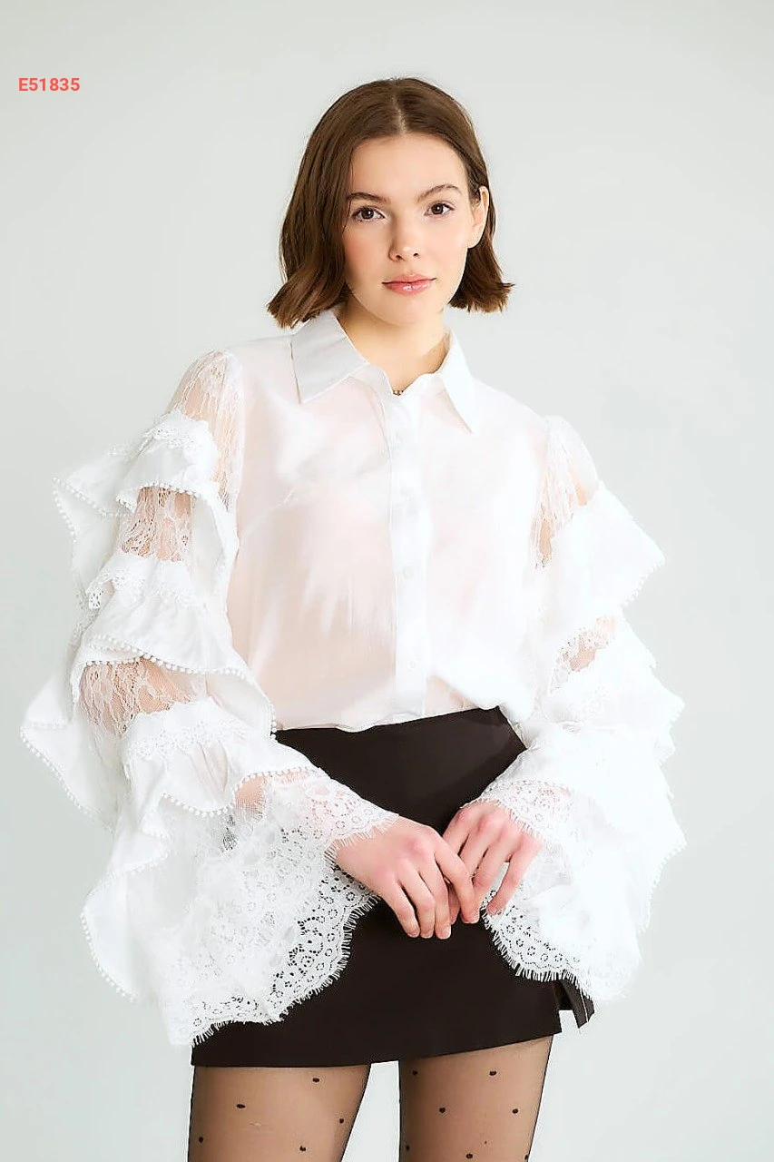 قميص صيفي بأكمام مكشكشة مع دانتيل