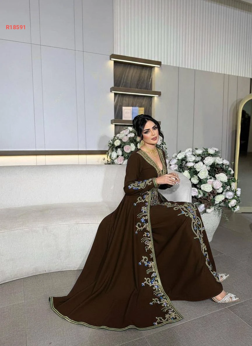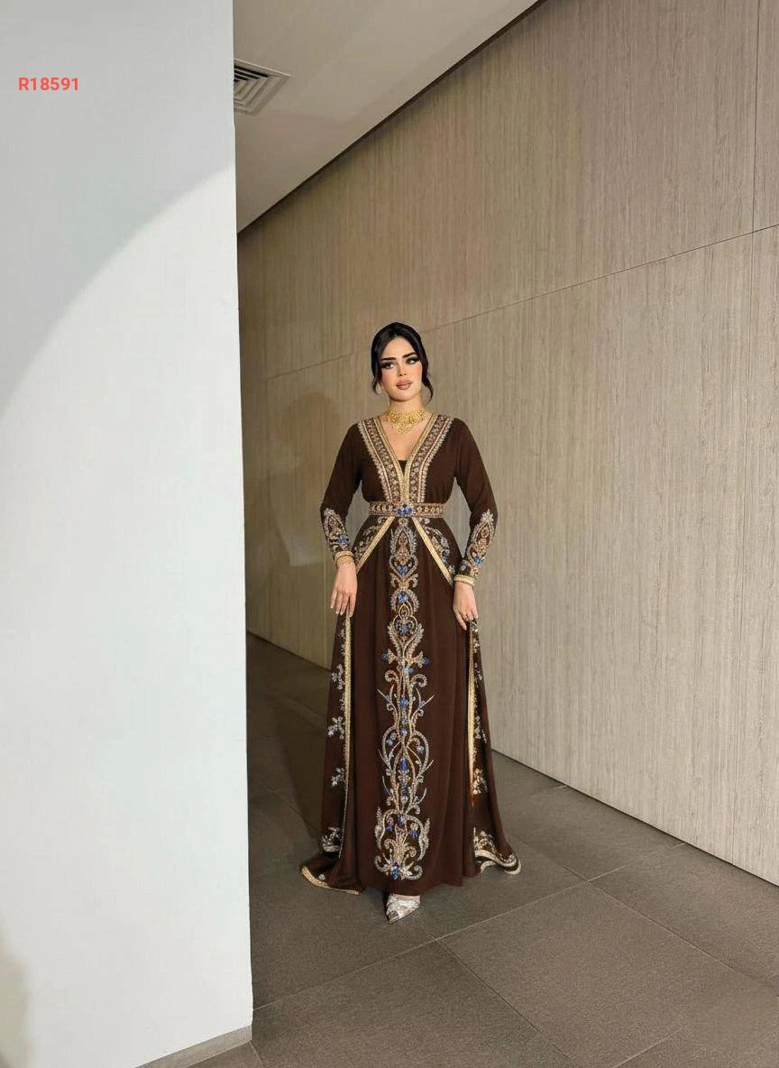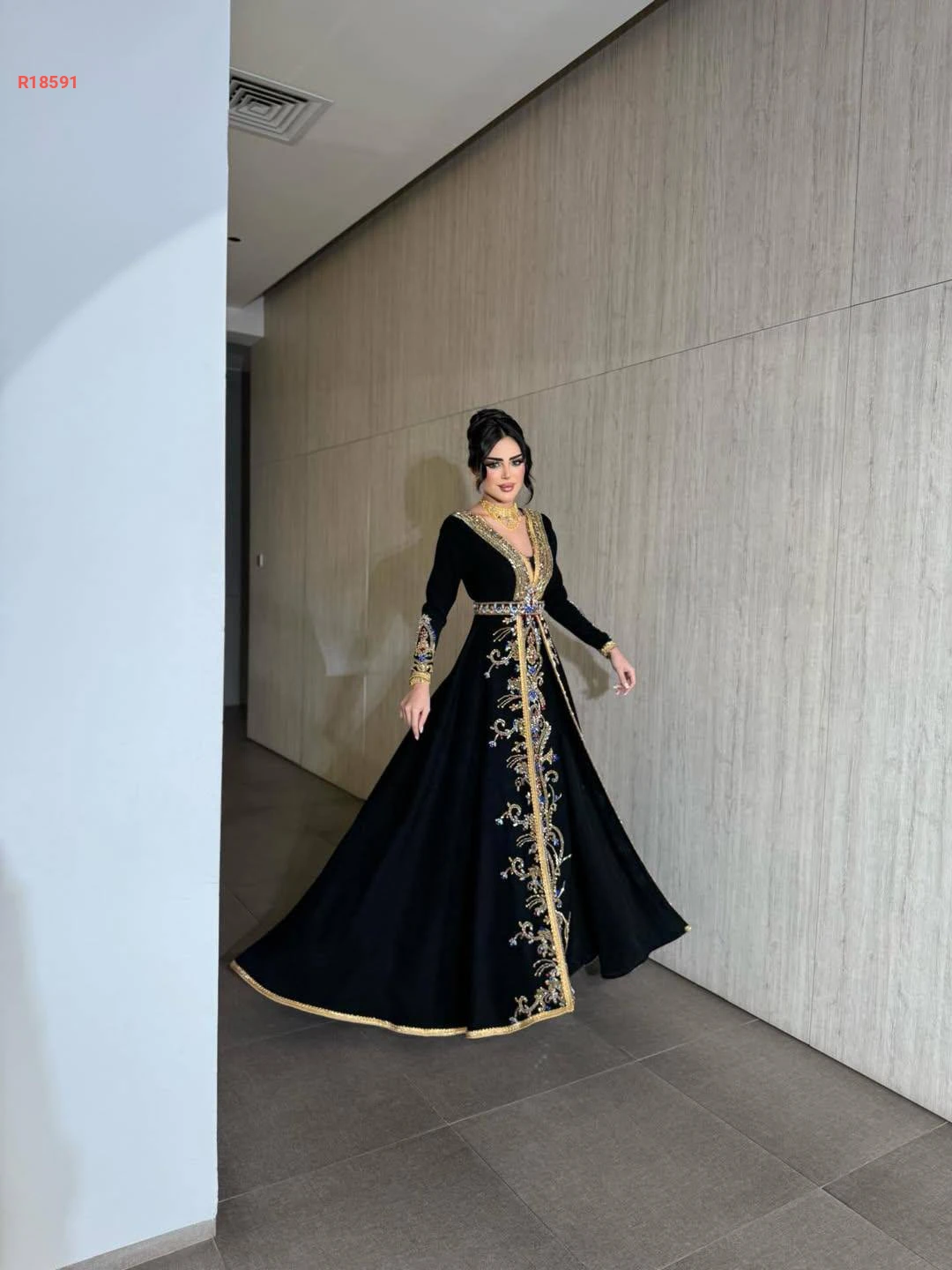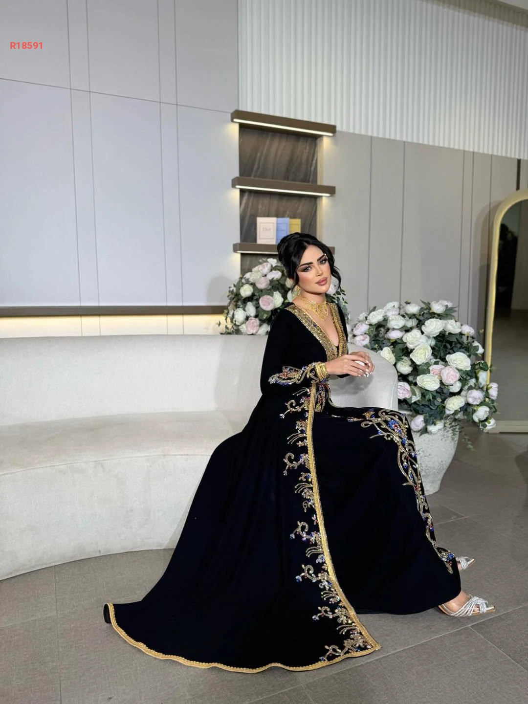 قفطان قطعتين بتطريز ذهبي مرصع بالشك مع حزام