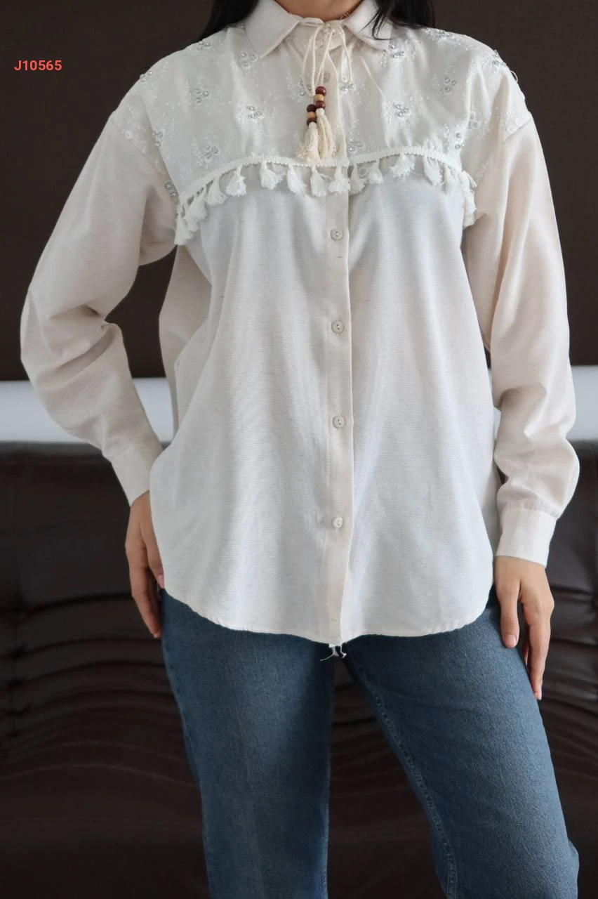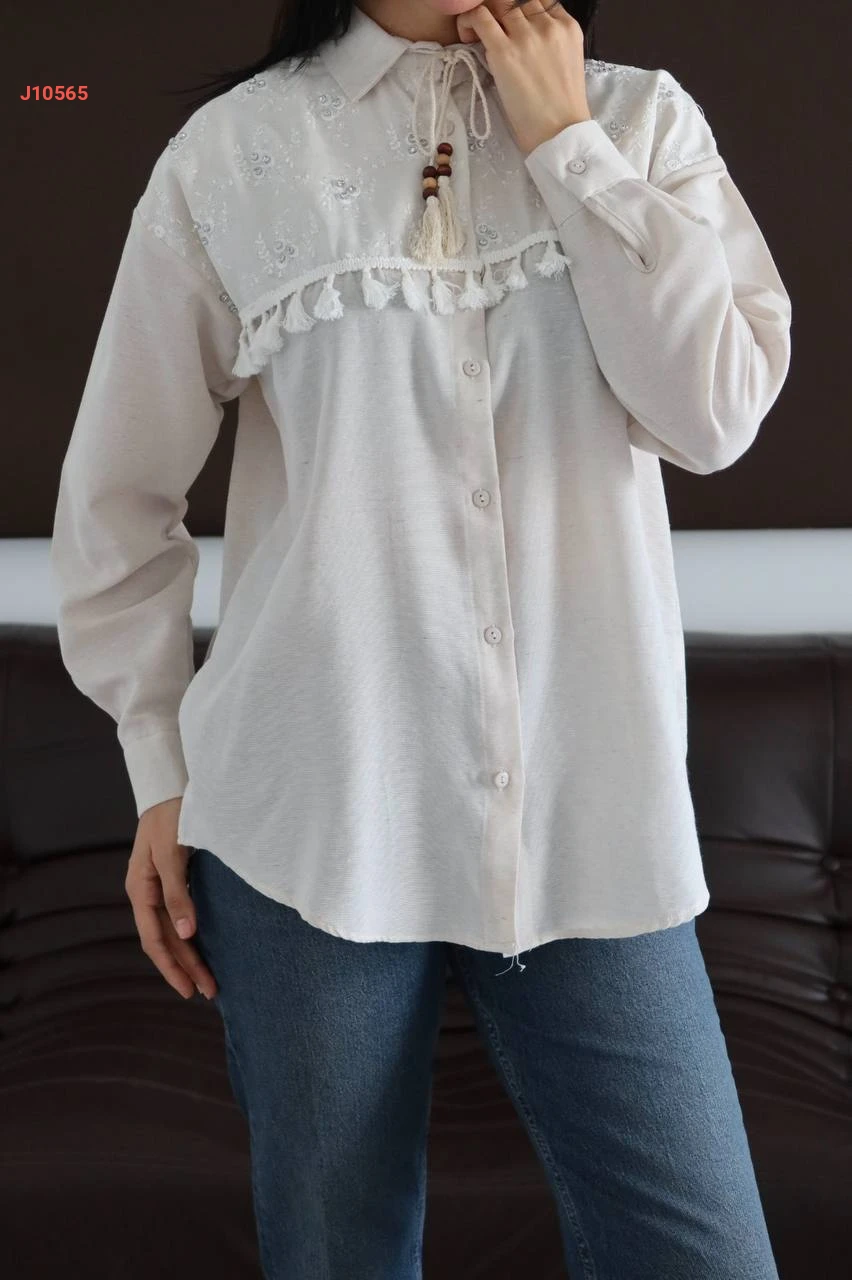 قميص أبيض مطرز بربطة عالقبة