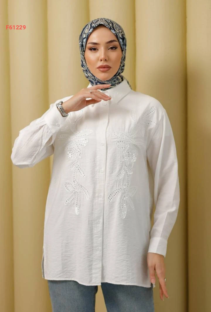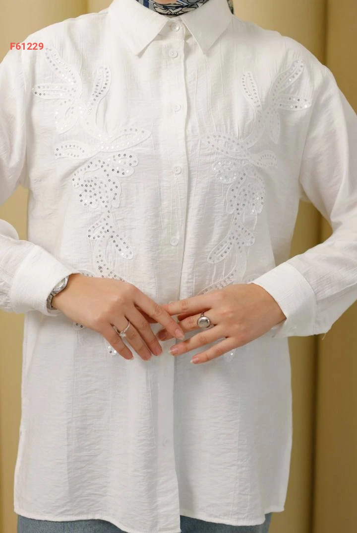 قميص أبيض مطرز بالترتر