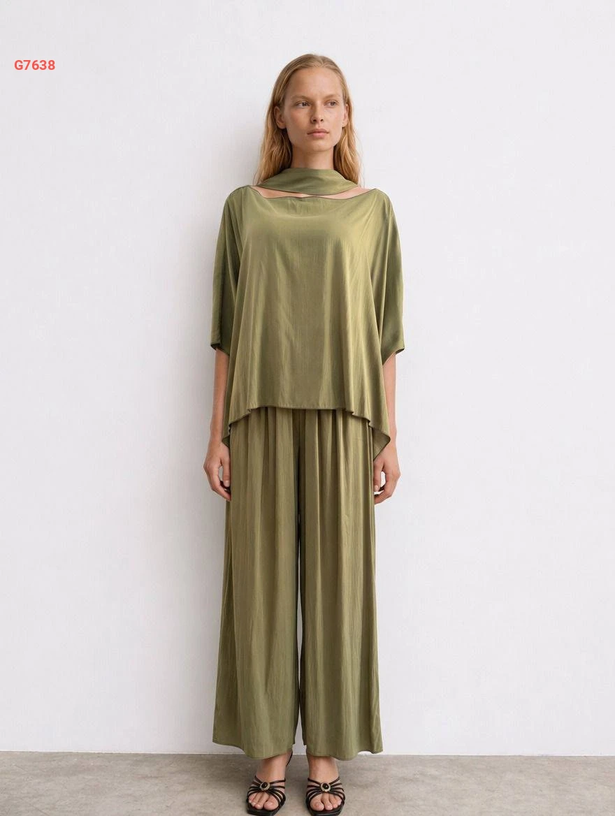 طقم بنطال واسع مع بلوزة