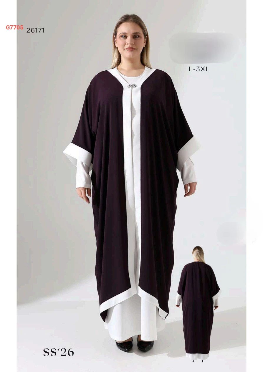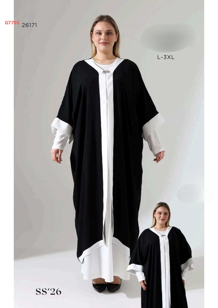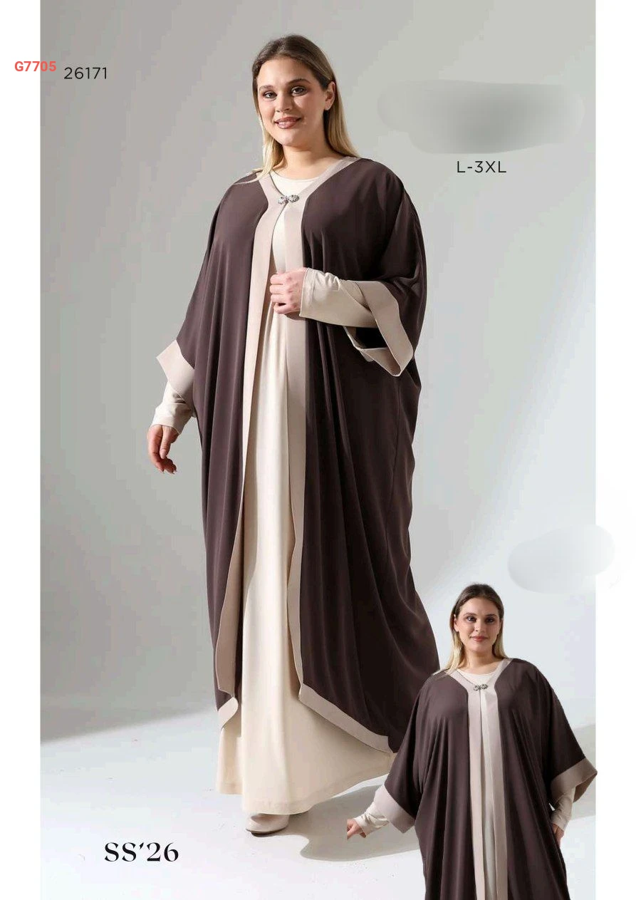 طقم عباية مع فستان سادة مع دبوس مقاسات كبيرة
