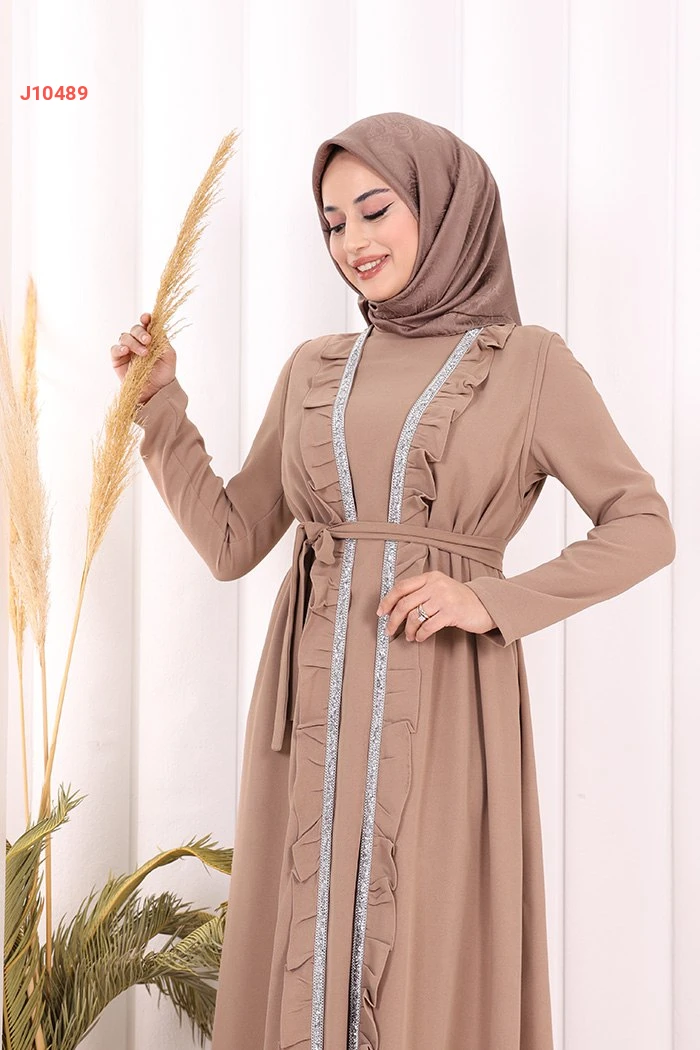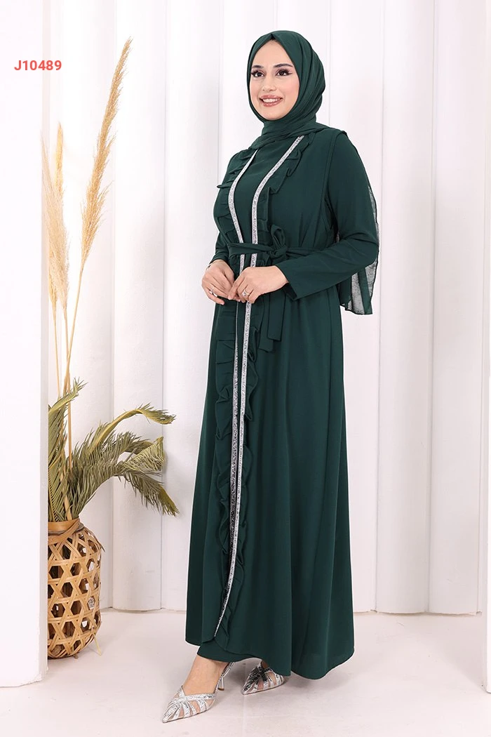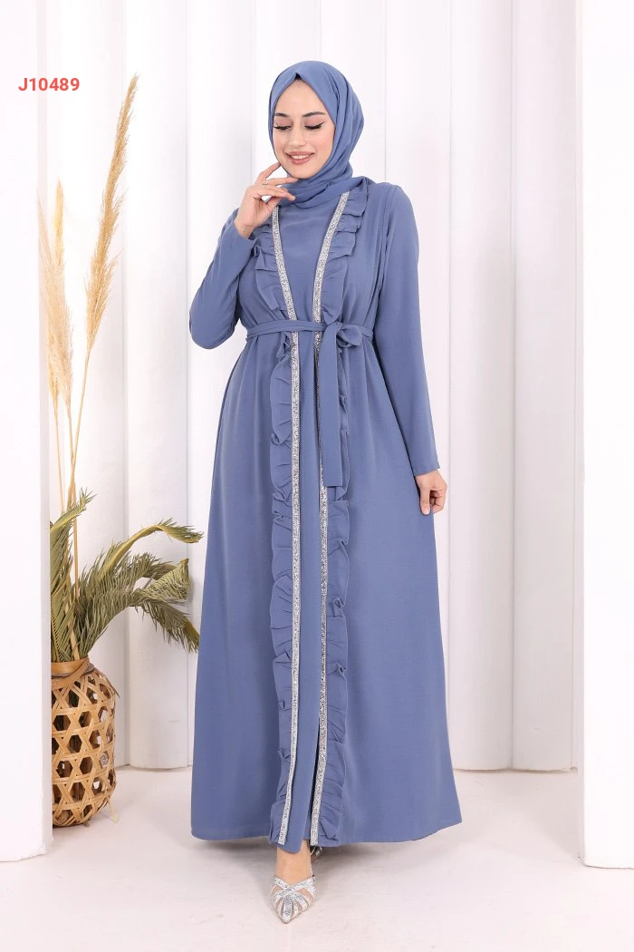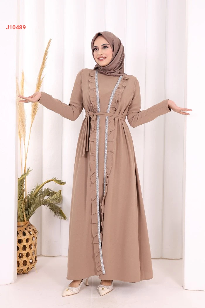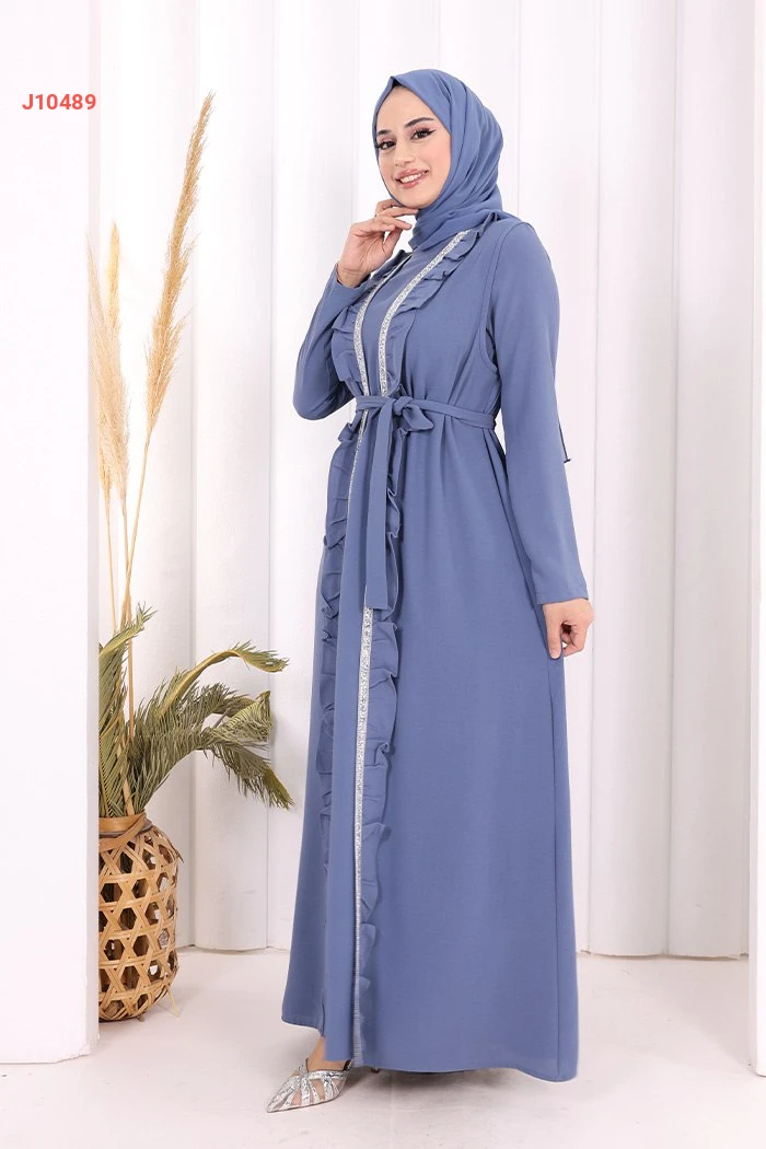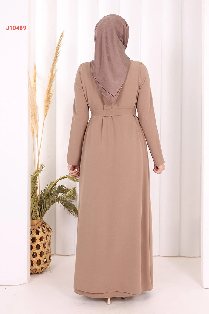 طقم عباية مع فستان سادة وحزام