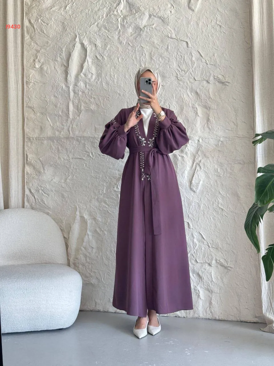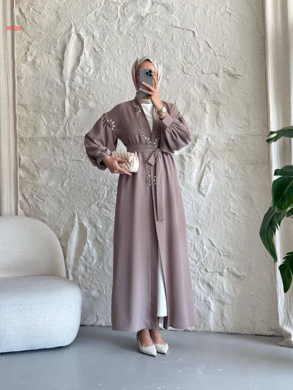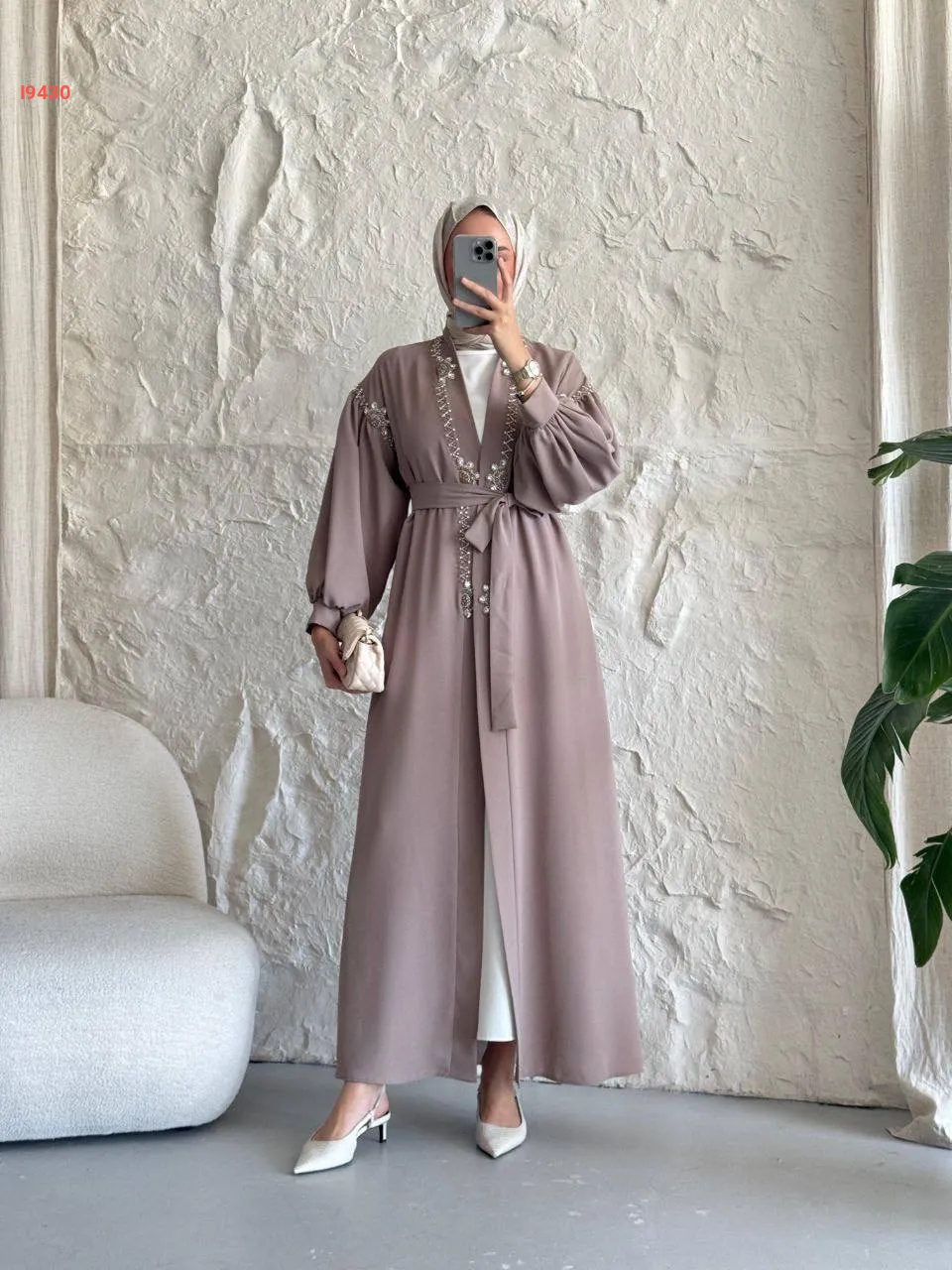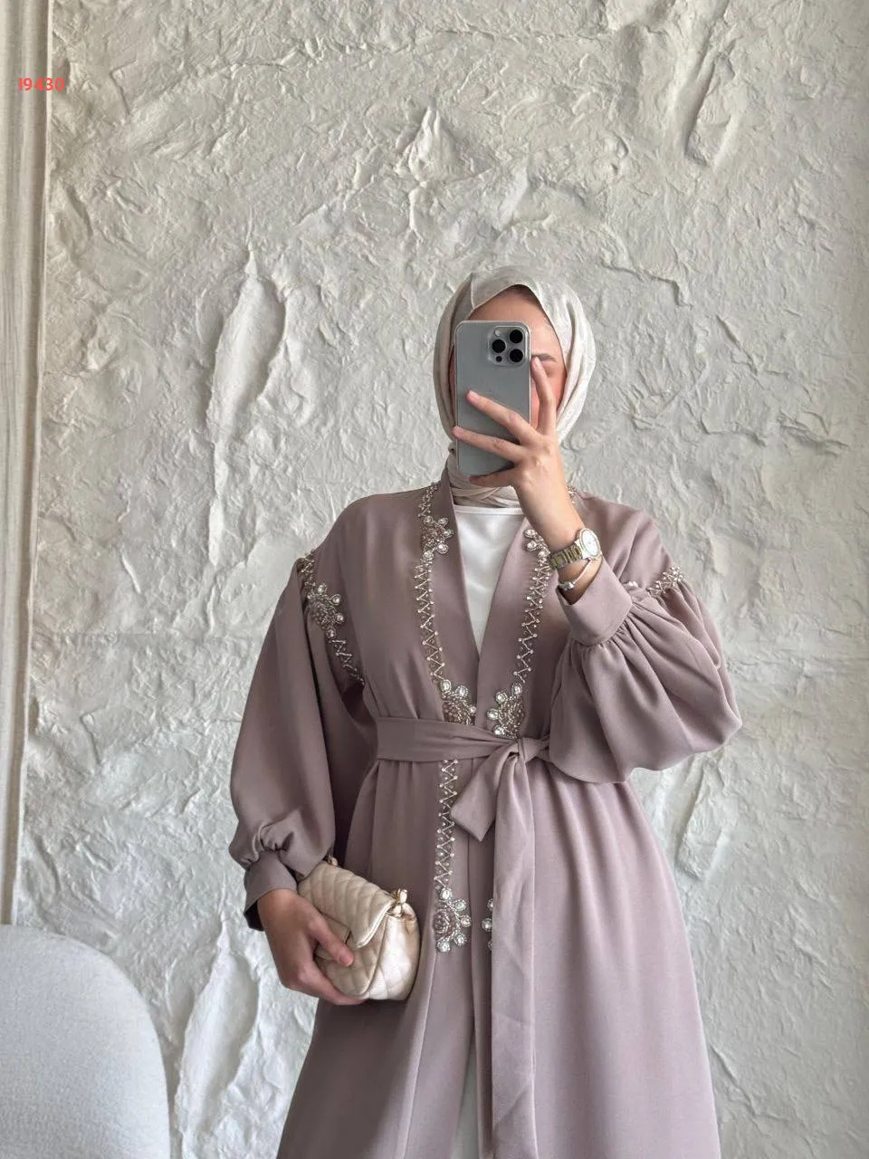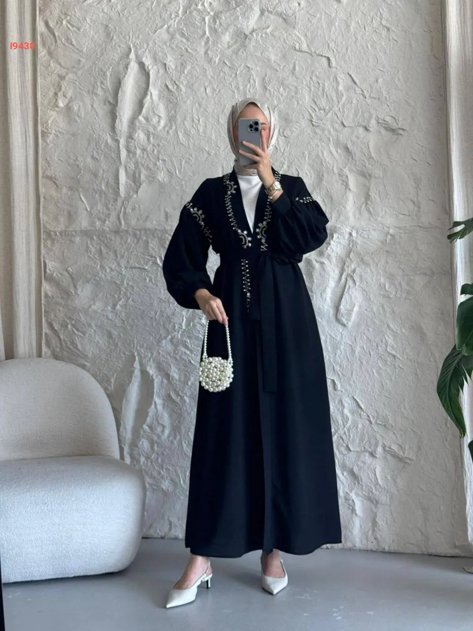 عباية مع حزام مزينة بتطريز شك ذهبي