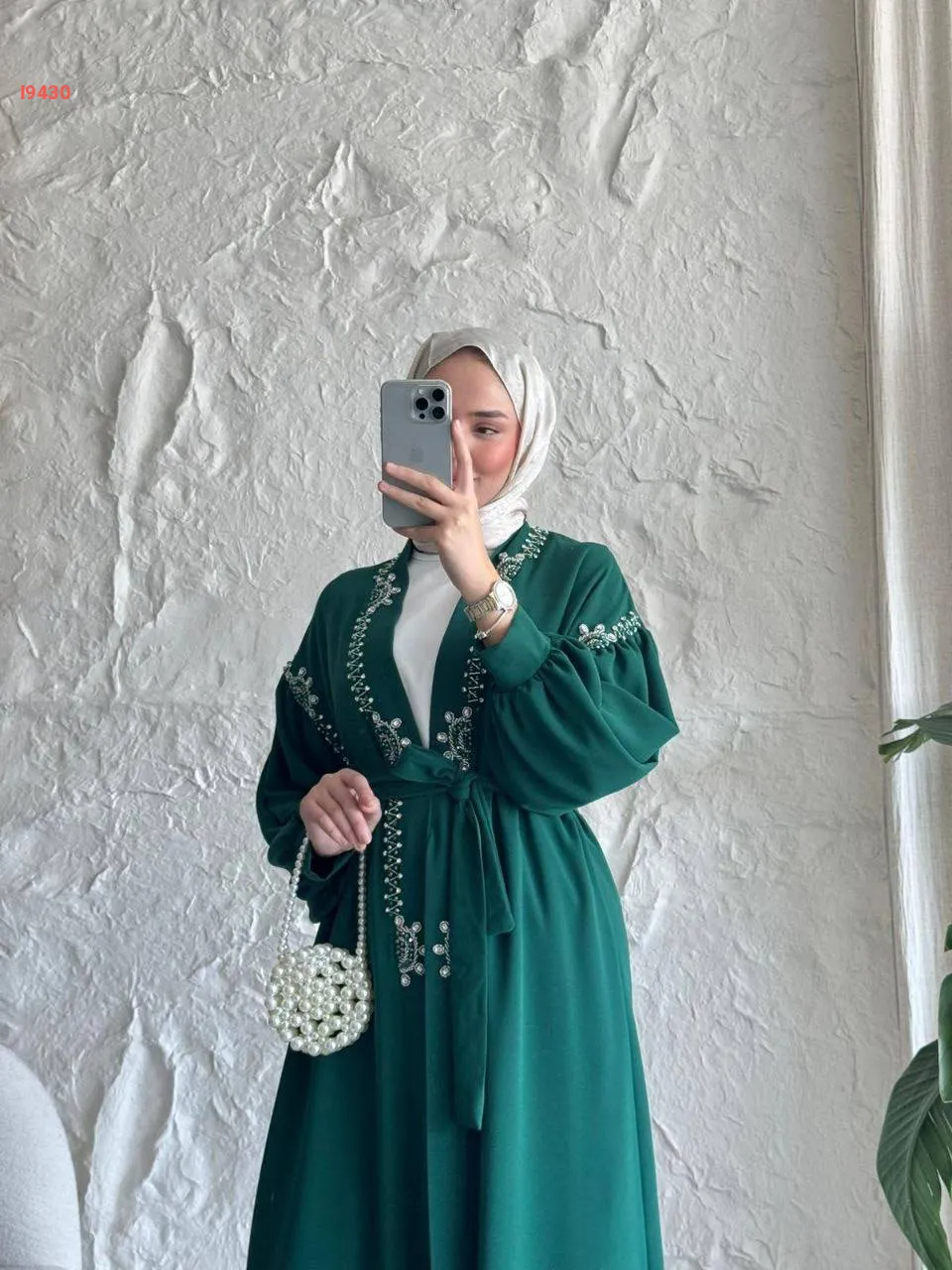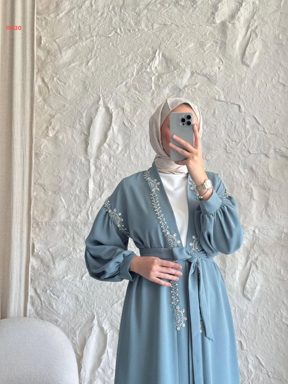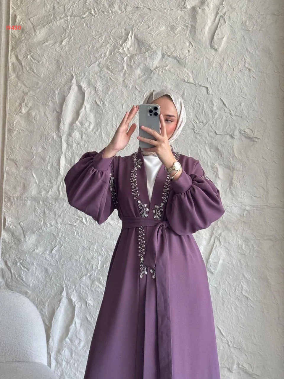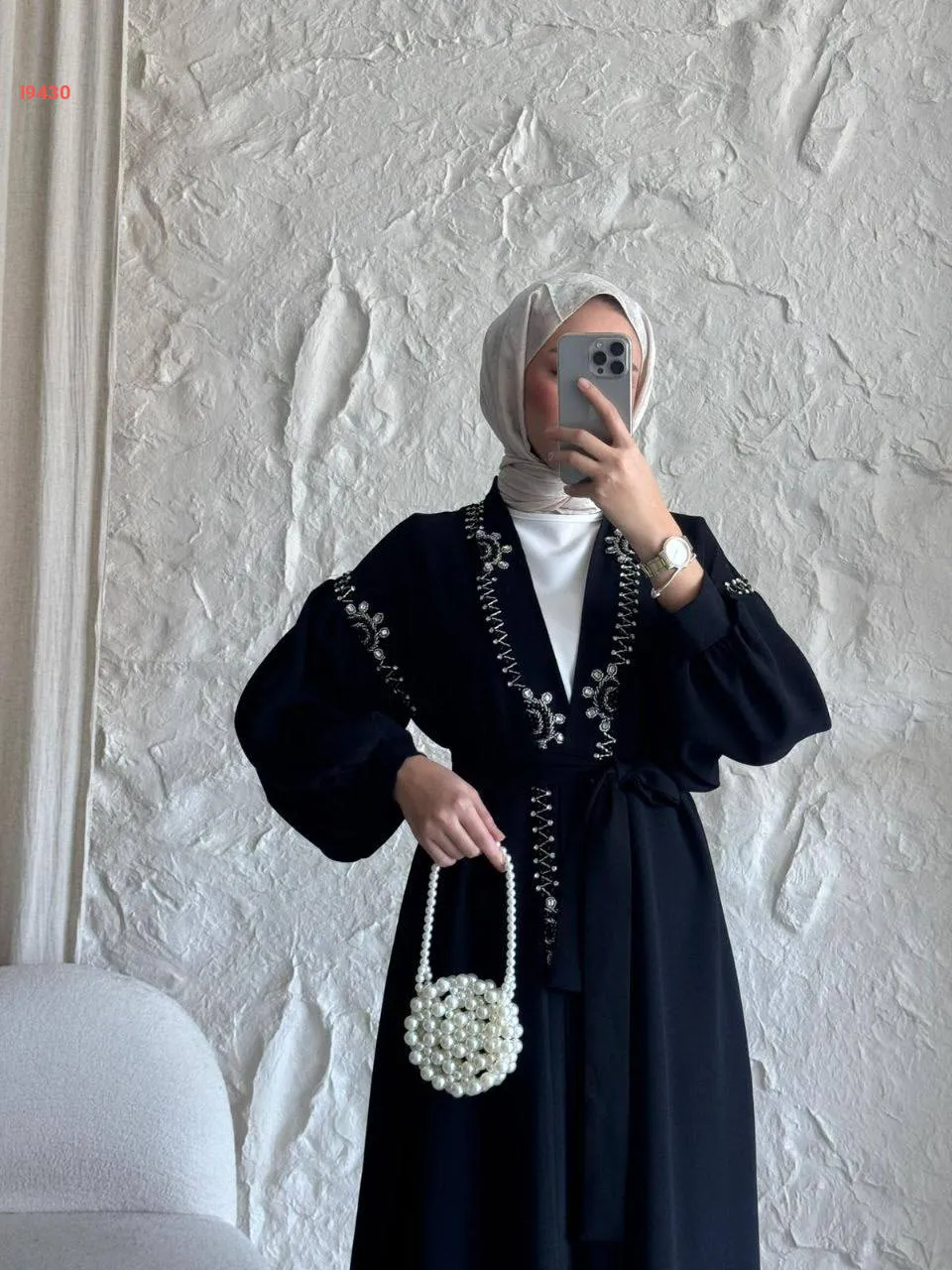 عباية مع حزام مزينة بتطريز شك ذهبي