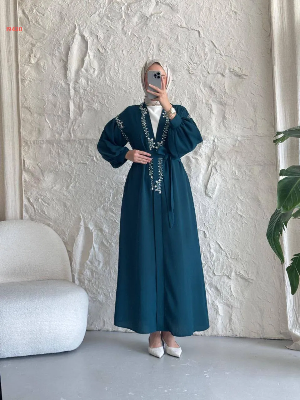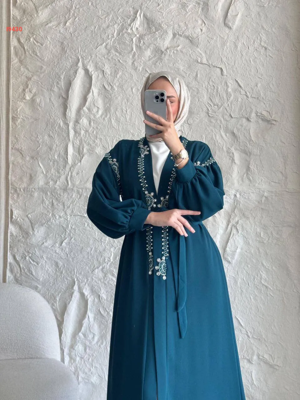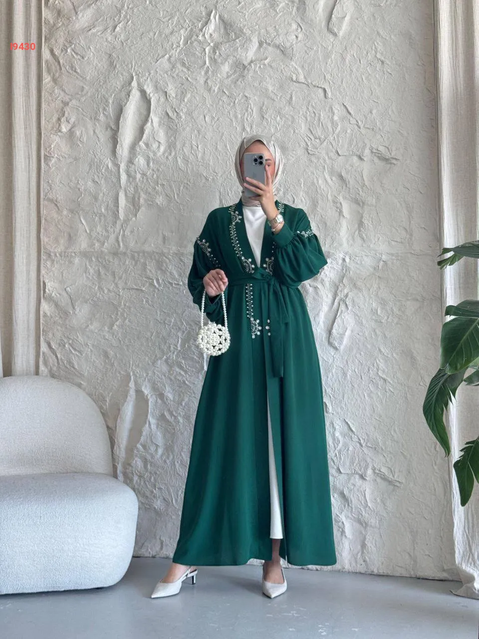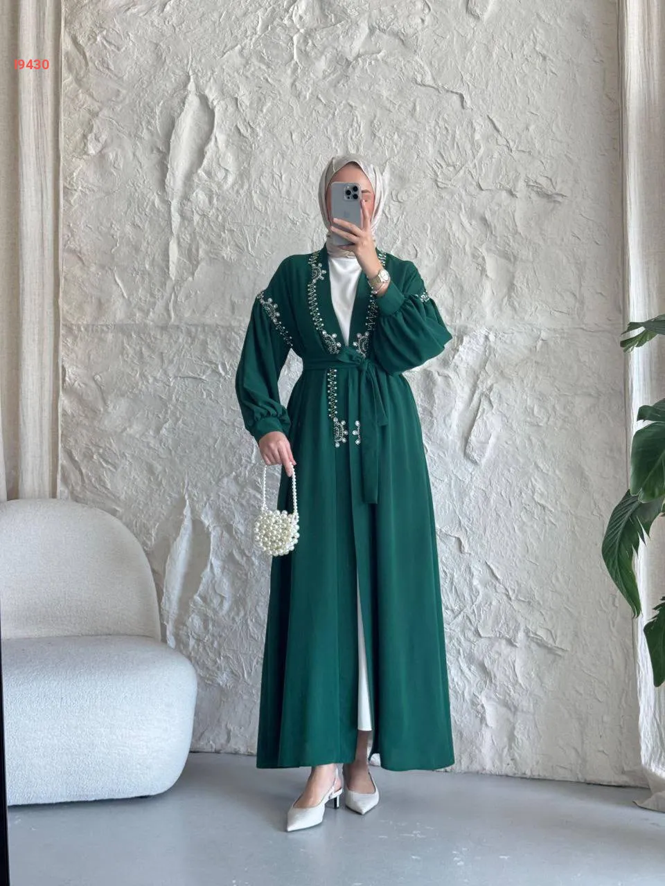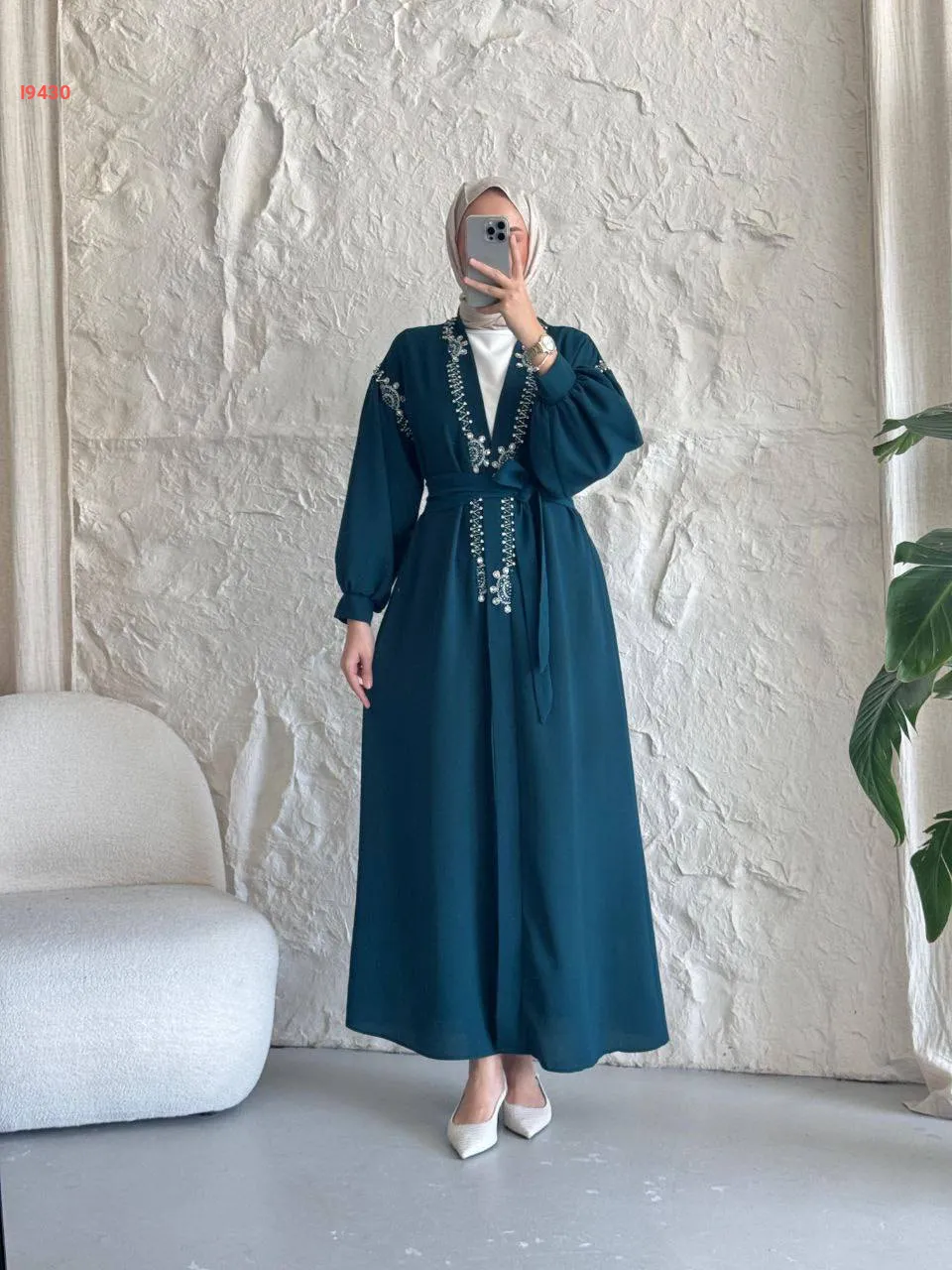 عباية مع حزام مزينة بتطريز شك ذهبي