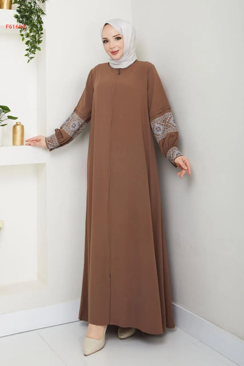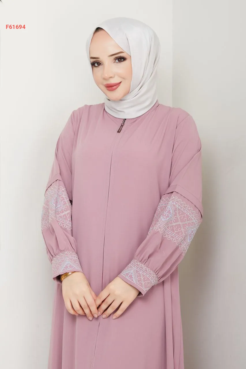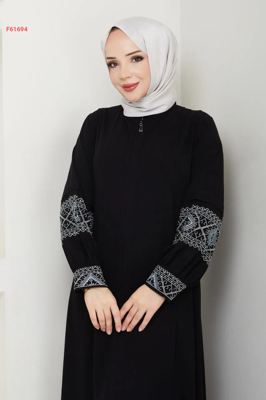 عباية بسحاب سادة بأكمام مطرزة