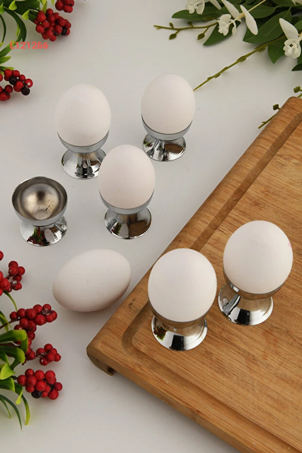 عالم الاكسسوارات: طقم فطور ست قطع مع حوامل بيض من الفولاذ المقاوم للصدأ الفاخر
