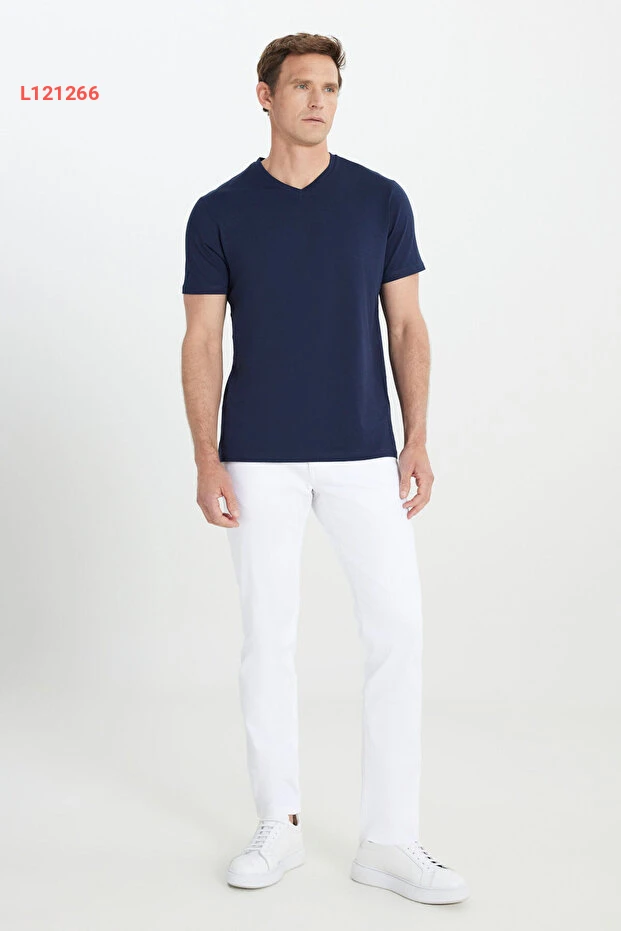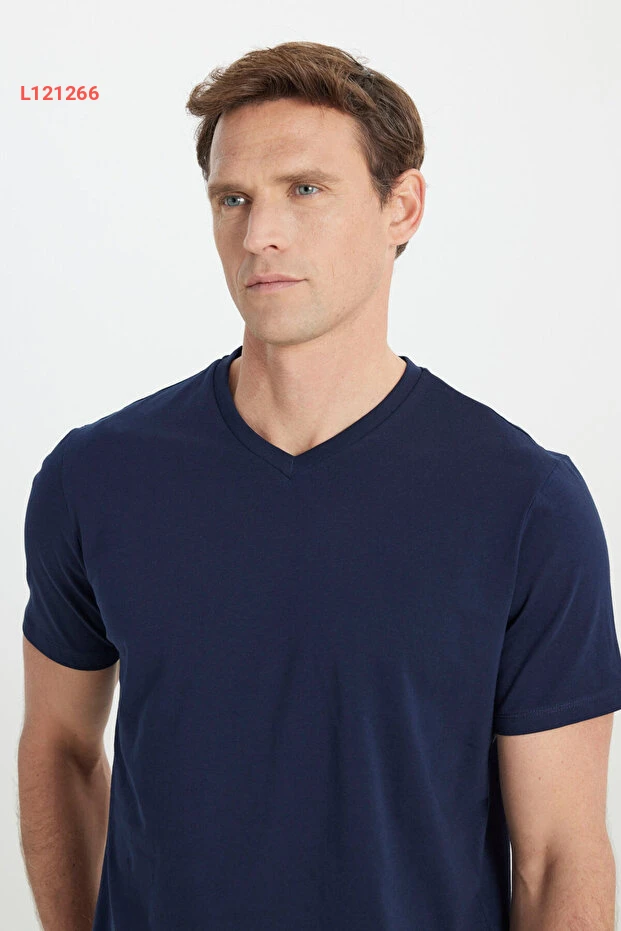 تي شيرت كلاسيس للرجال من ألتينييلديز، 100% قطن، لون أزرق غامق، بقصة ضيقة V-neck