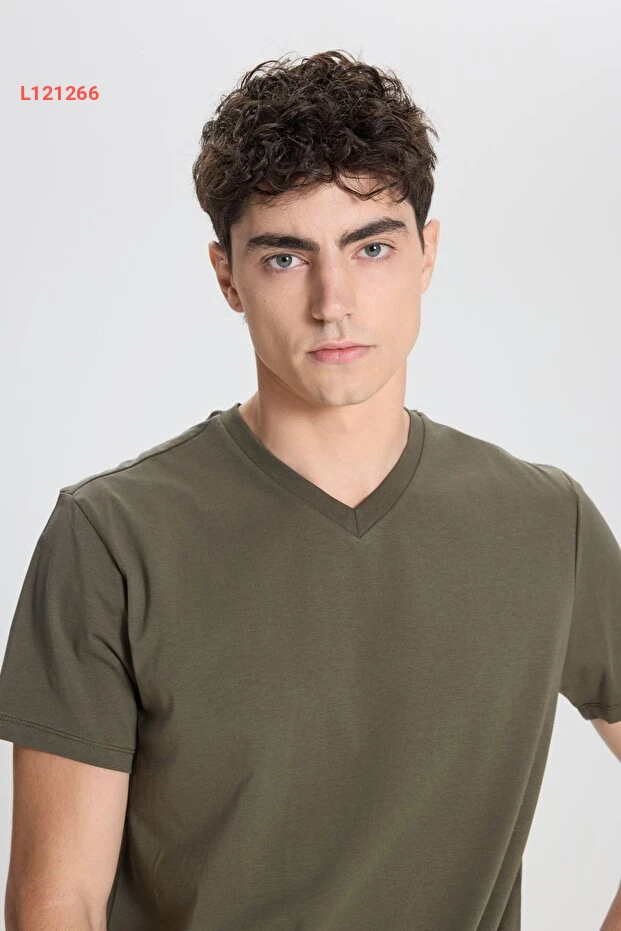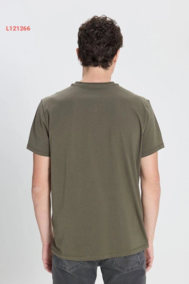 تي شيرت رجالي هكذا Slim Fit من ألتينيالدز كلاسيكس بكتف V من قماش مخمل 100% قطن بلون الكاكي