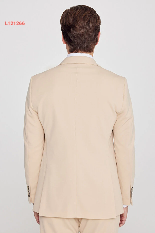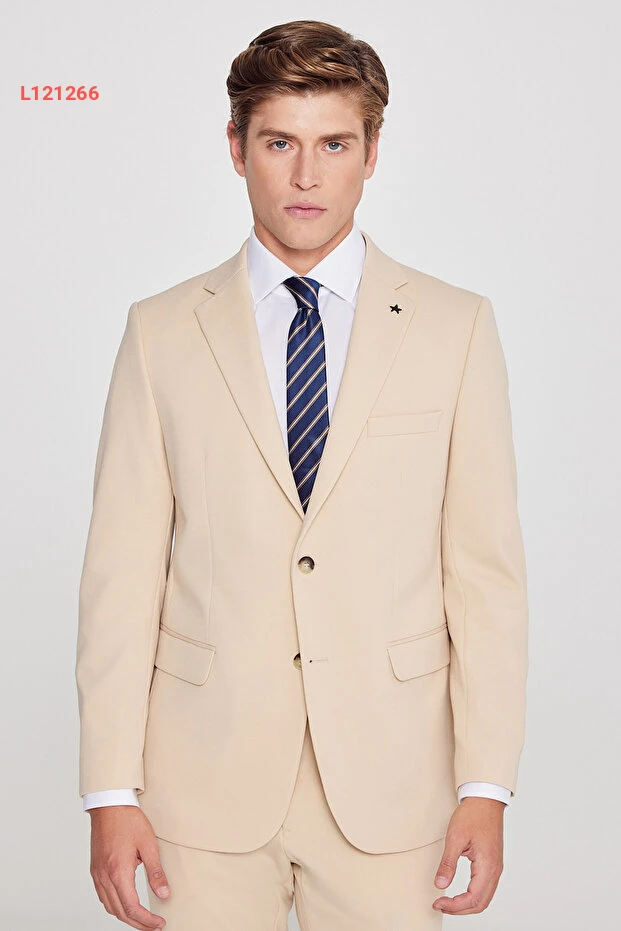 بدلة رجال بيج ضيقة القصة بقفل أمامي وحزام من Altınyıldız Classics