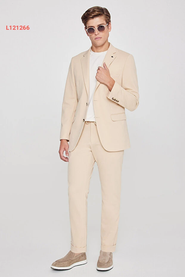 استمتع بالأناقة الكلاسيكية مع بدلة AC&Co / Altınyıldız Classics للرجال بلون البيج الأنيق. تتميز بقصّة slim fit العصرية وبياقة مونو التي تضفي لمسة من الرقي، بالإضافة إلى حزام الخصر الذي يوفر لك الراحة وحرية الحركة. مع تفاصيل الجيب العملية، تعتبر هذه البدلة الخيار المثالي لكل المناسبات الرسمية!