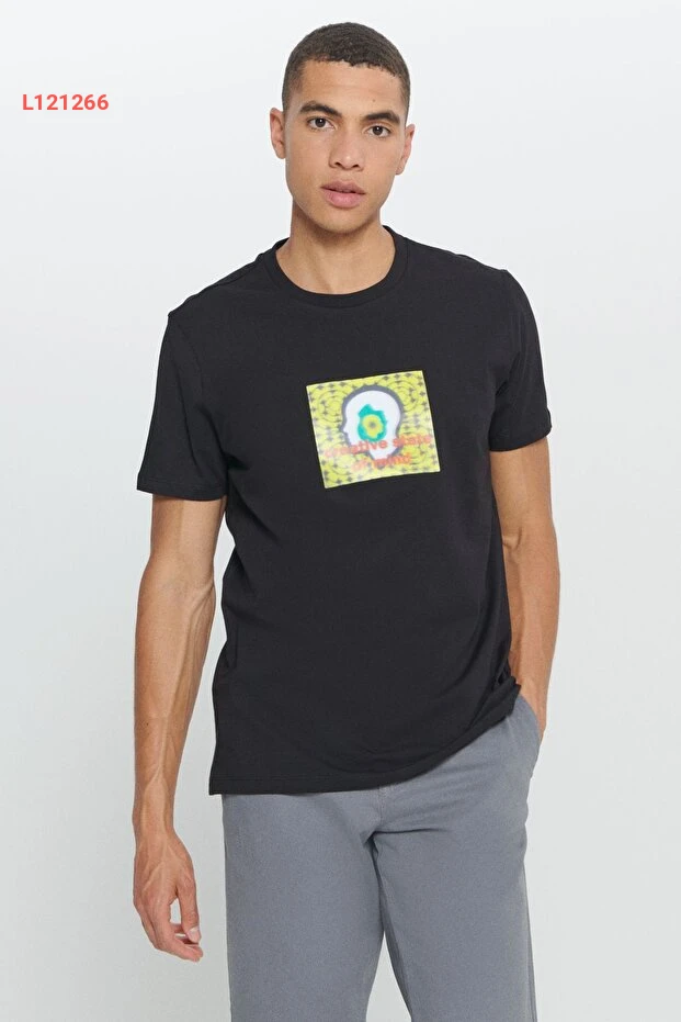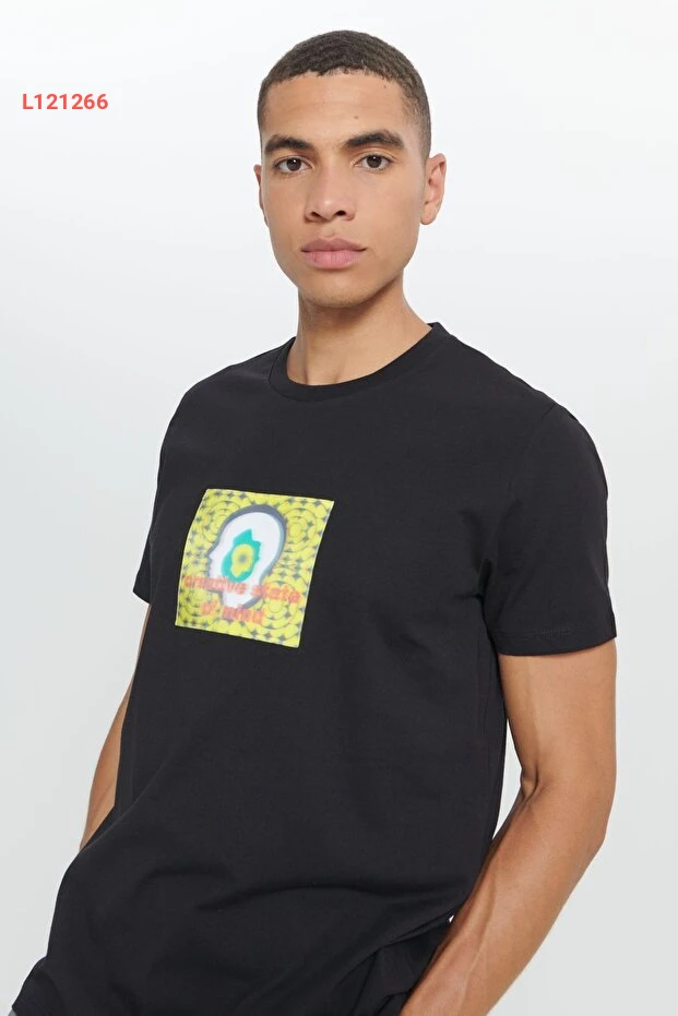 تيشرت بيزك رجالي أسود بقصة عادية من قطن 100% بتصميم مبتكر من ألتيينيليدز كلاسيكس