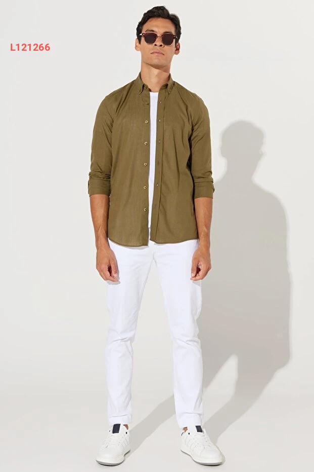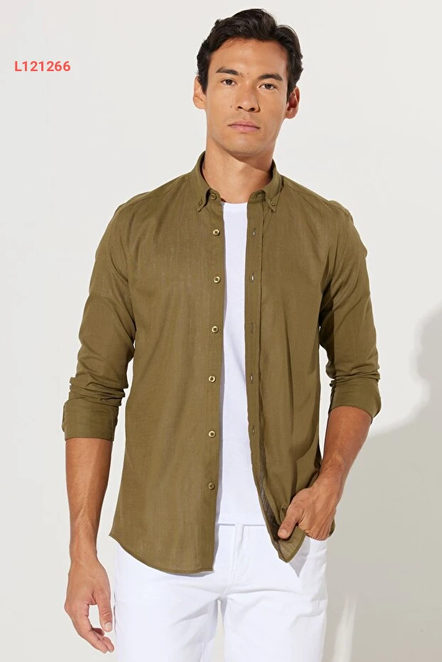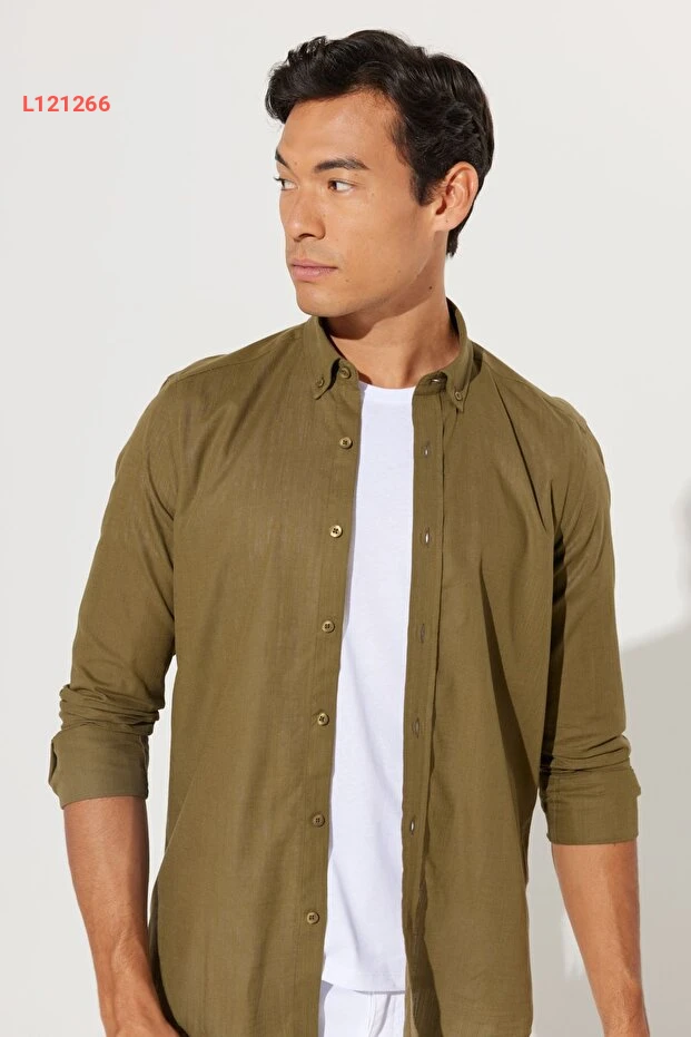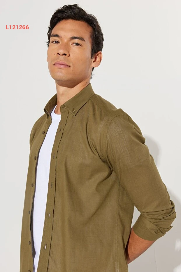 قميص رجالي سليم فيت 100% قطن سهل الكي ونفّاذ للهواء من ألتينيليدز كلاسيكس - كاكي