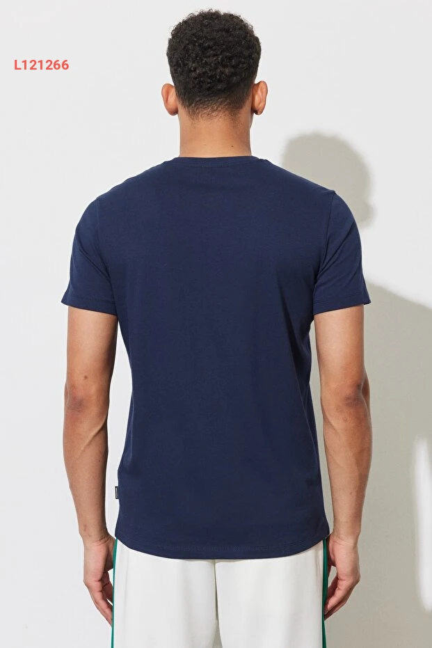 تي شيرت كلاسيكي بألوان الإنديجو للرجال بقصة ضيقة وعُنق دائري من قطن نقي 100%