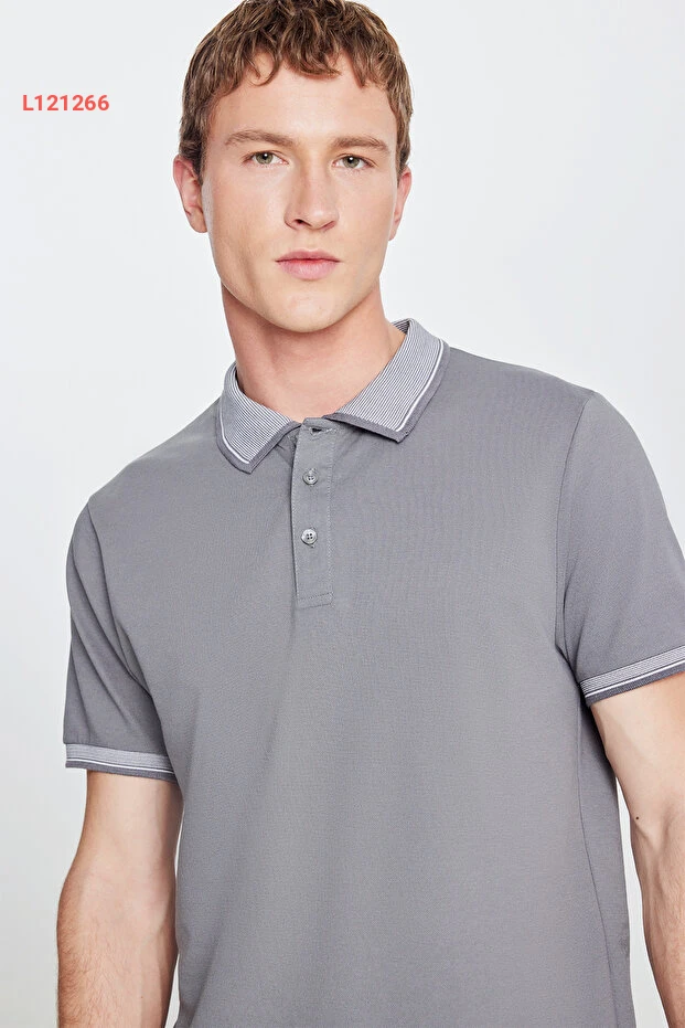 تي شيرت بولو رمادي قصير بأكمام ضيقة من قماش قطني عالي الجودة - الرجال - من ألتي نولداز كلاسيكس