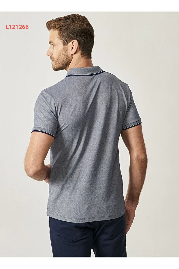 تيشيرت بولو ضيق قصير من القطن الأزرق الداكن للرجال من التقاليد الأنيقة