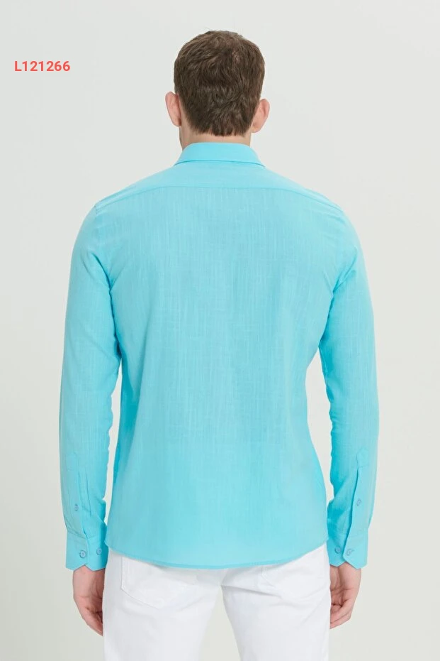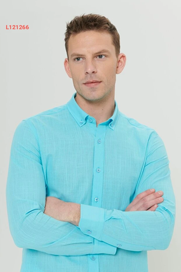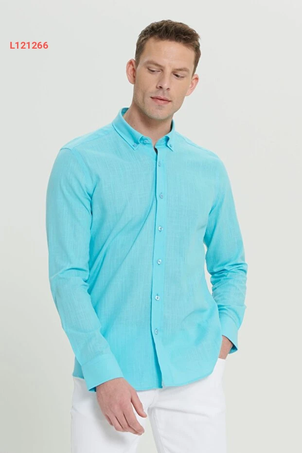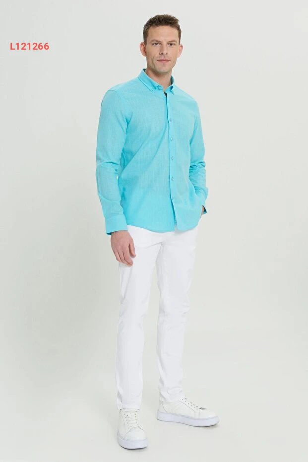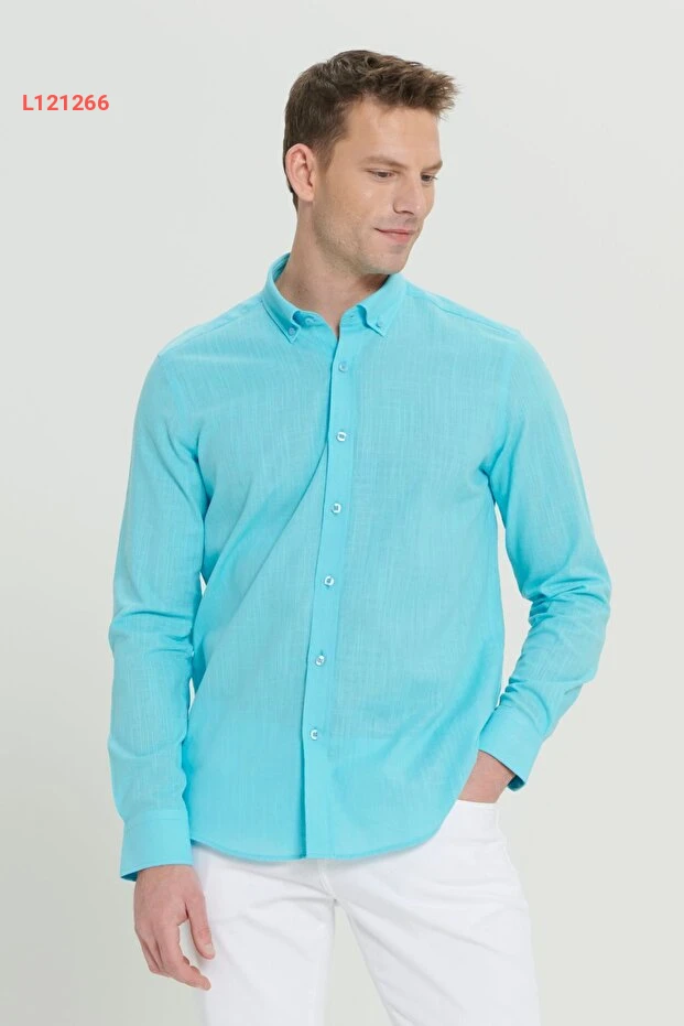 قميص فلاني بصف أمامي بأزرار للرجال من التوركواز بنسبة 100% قطن، بملائمة ضيقة من ألتينييلديز كلاسيك