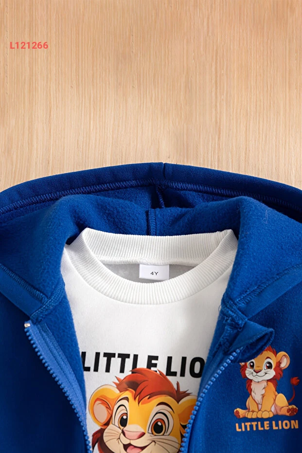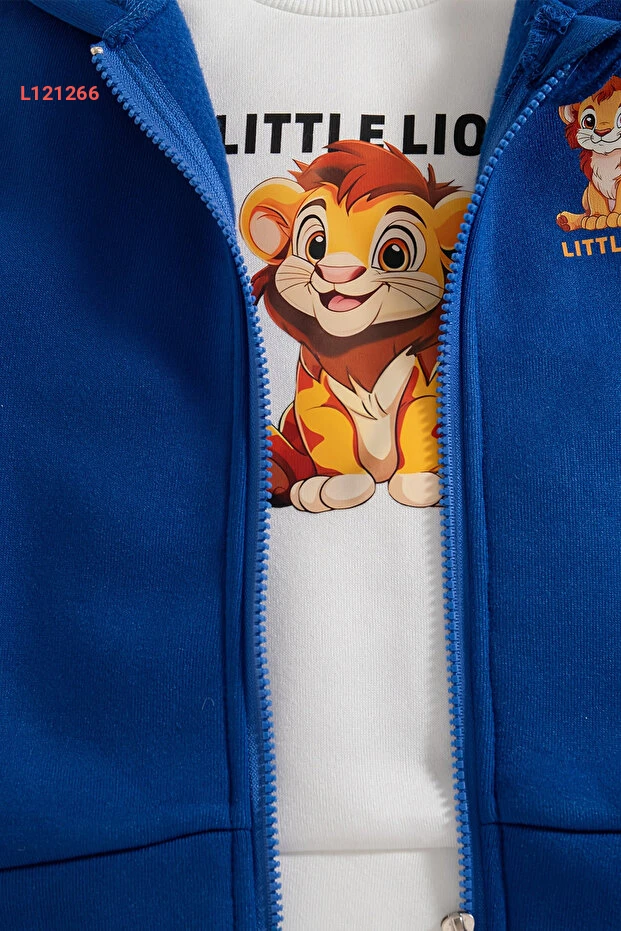 طقم أطفال مكون من 3 قطع مع سترة مزخرفة بأسد صغير من آداببيك