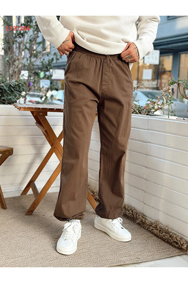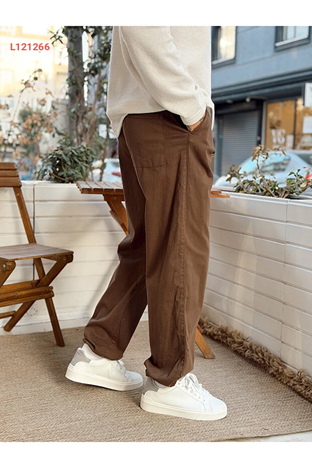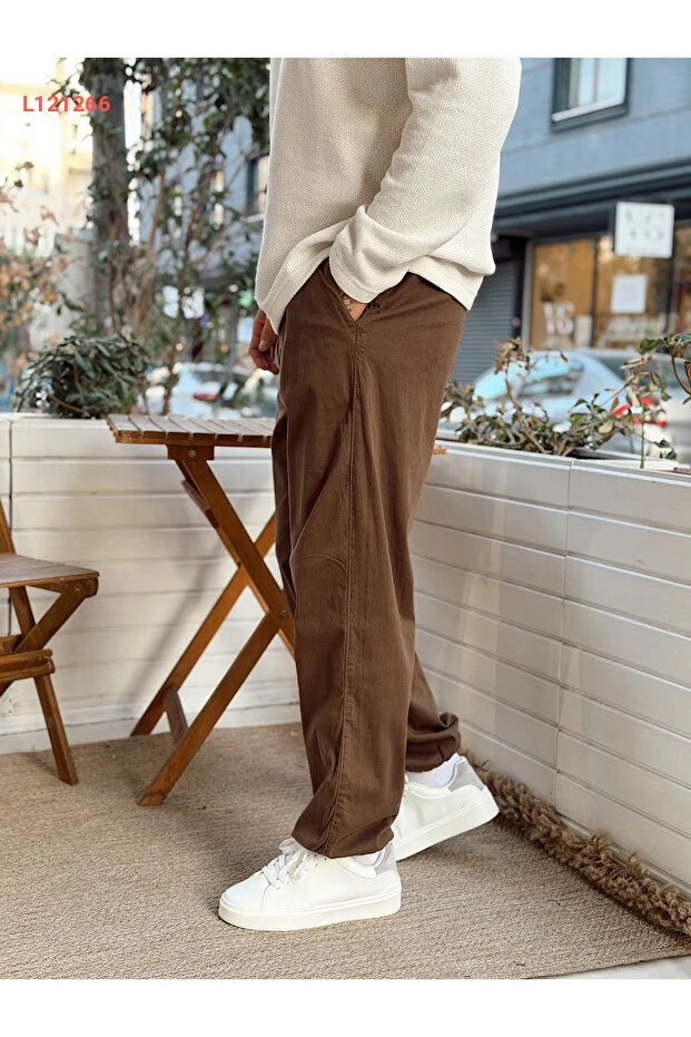 بنطلون جاباردين بني مع حواف قابلة للتعديل من مجموعة مانش