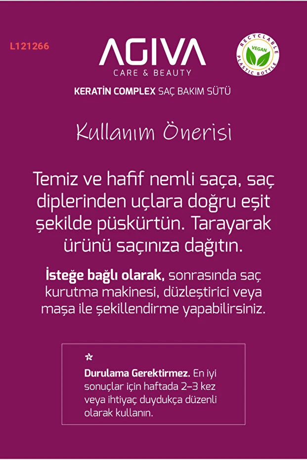 استمتع بشعر صحي وجميل مع حليب العناية بالشعر بالكيراتين من Agiva. بتركيبته المميزة، يساعد على تعزيز نمو الشعر بسرعة ويمنحه لمعانًا وحيوية لا تقاوم. احمي شعرك من التضرر واستمتعي بمظهر شعر رائع بفضل هذا الحل المثالي للعناية اليومية.