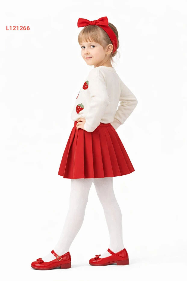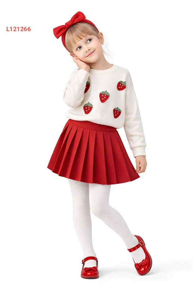 ارتدي ألوان المرح مع مجموعة AHENGİM للبنات، التي تتضمن بلوزة بتصميم الفراولة الجذاب وتنورة بليسيه أنيقة. تجمع هذه المجموعة بين الراحة والأناقة، مما يجعلها مثالية للمناسبات اليومية أو الإطلالات المميزة. اجعلي صغيرتك تتألق بأناقتها الفريدة وتستمتع بحريتها في الحركة!