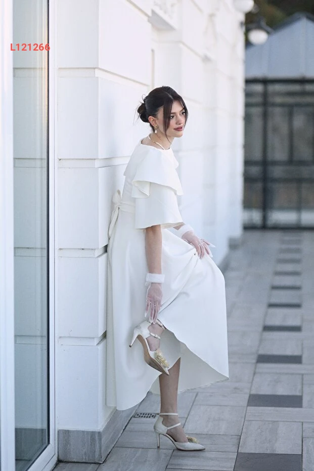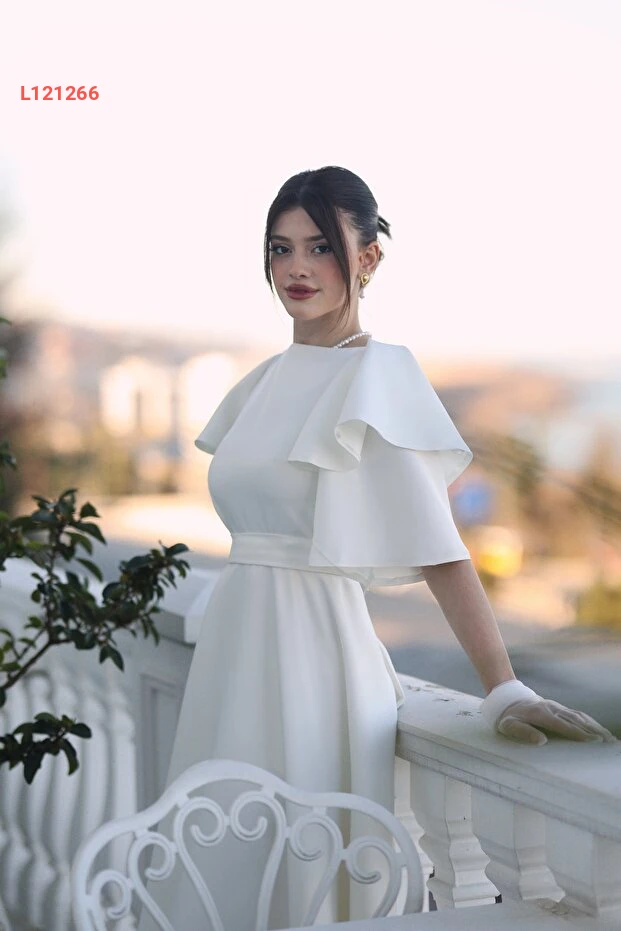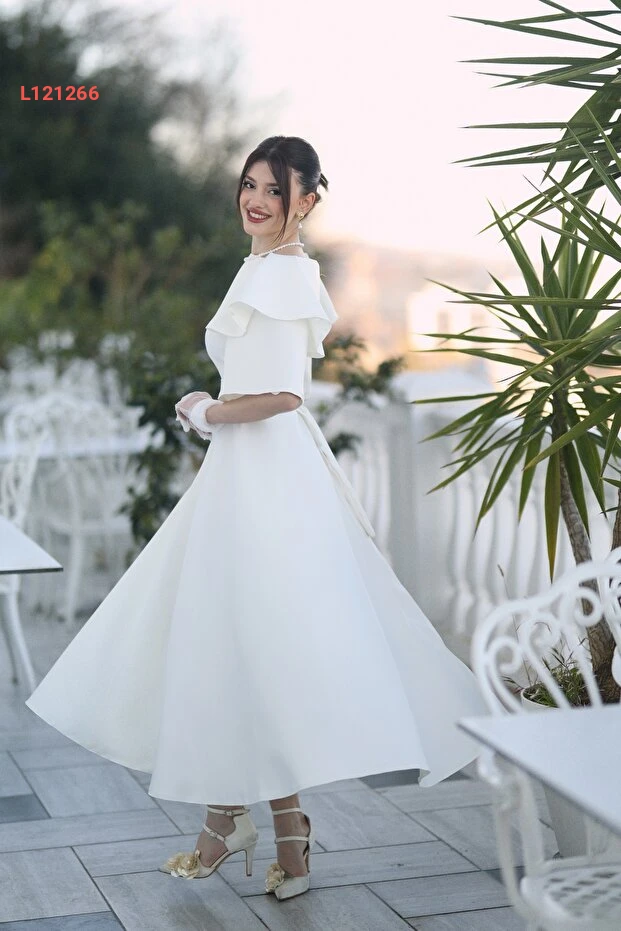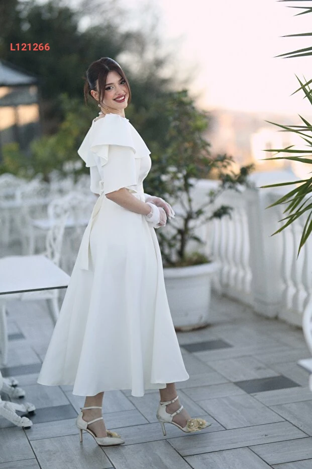 فستان سهرة midi بياقة قارب أبيض للنساء من أيشة ياماشلي