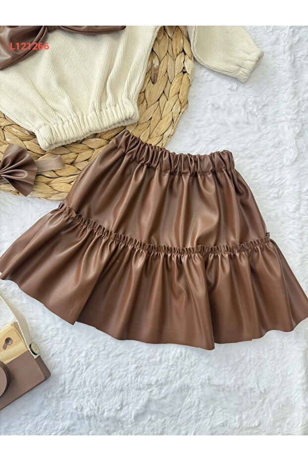 طقم فتيات وأطفال صغار من أكيف - تنورة جلدية مع بادي وف علام كاب إلى الجانب
