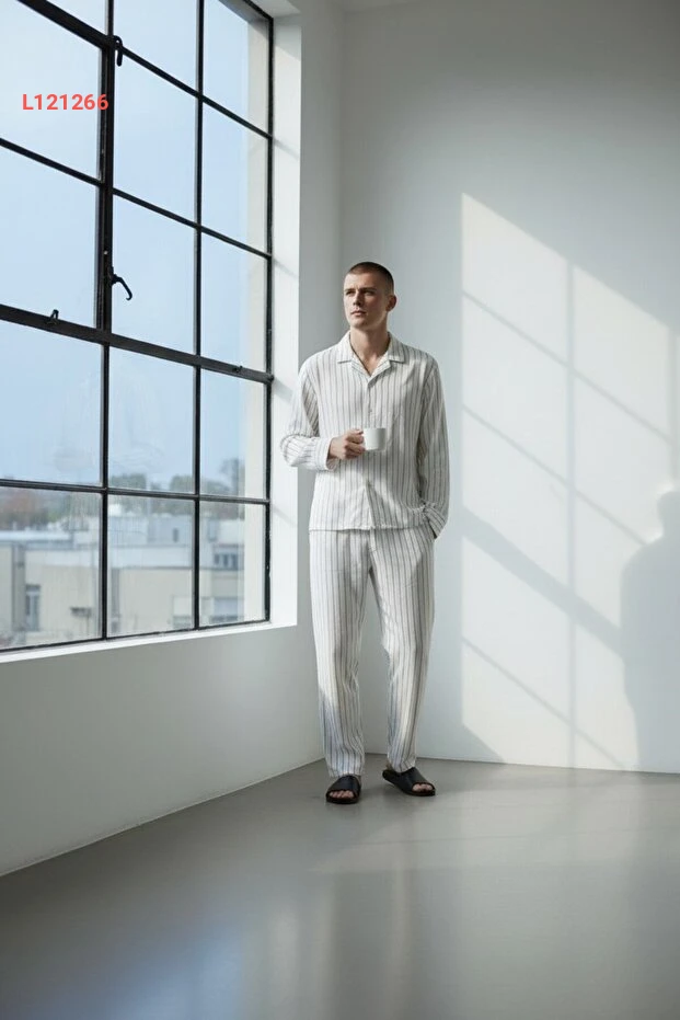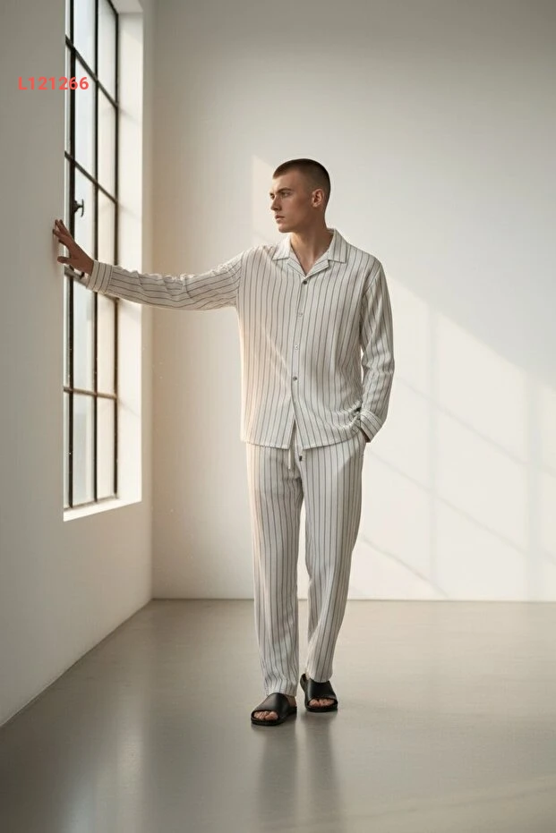 قميص أوفرسايز أبيض مخطط للرجال من التاميرا - طقم سفلي