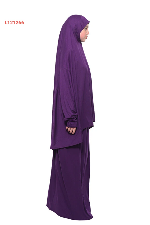 عباءة تسبيح عضوية بكمين باترون وغطاء رأس - لون بنفسجي