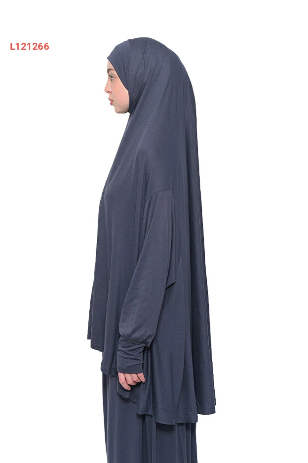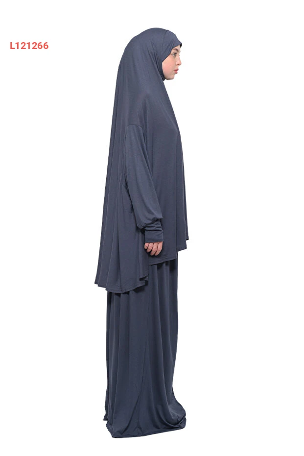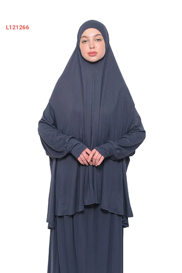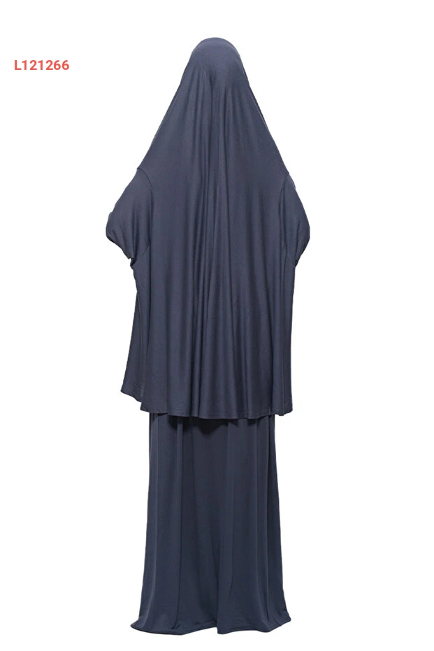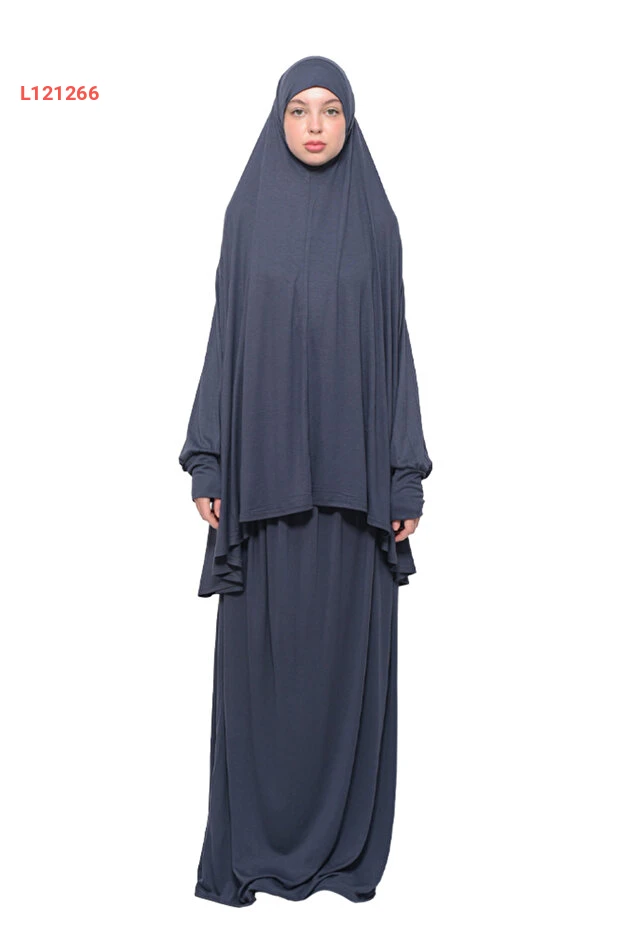 فستان الصلاة العضوي ذو الكمين الوارسين قطني بغطاء رأس - رمادي