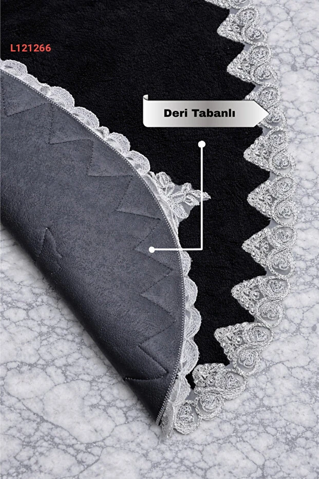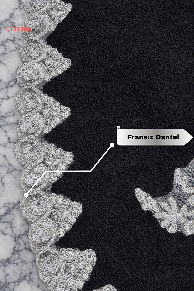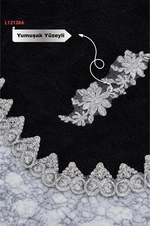 بستكار سجادة الحمام الفرنسية ذات الدانتيل الأسود - مجموعة من قطعتين بسطح ناعم وقاعدة غير منزلق